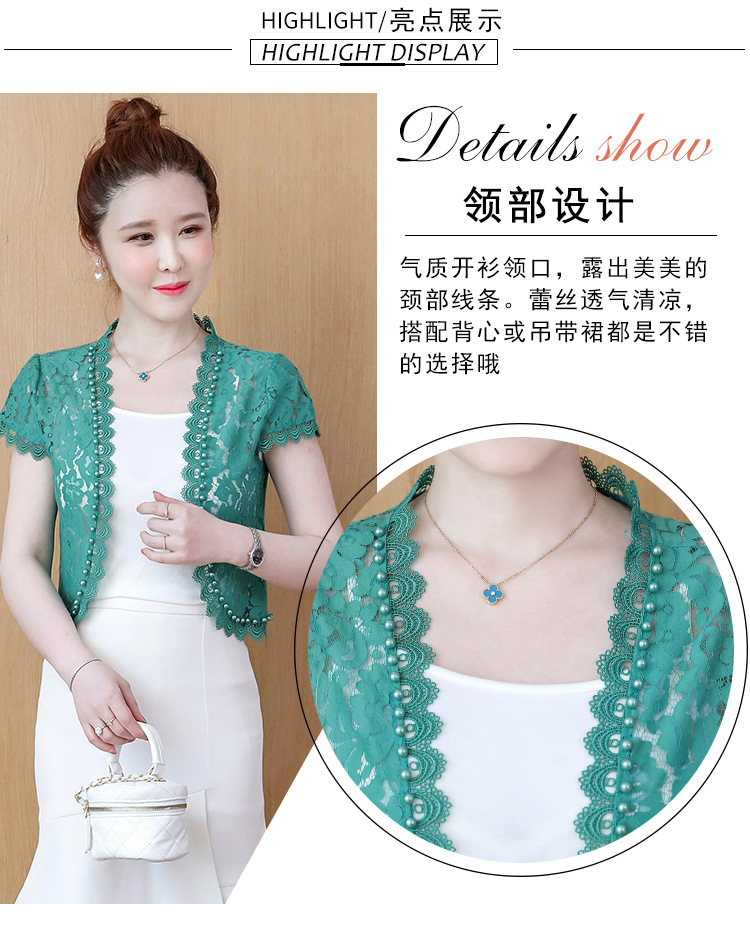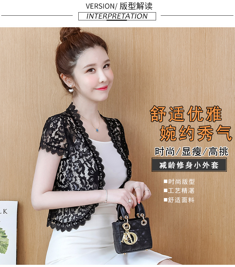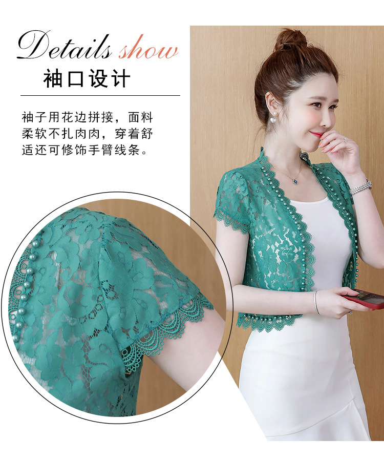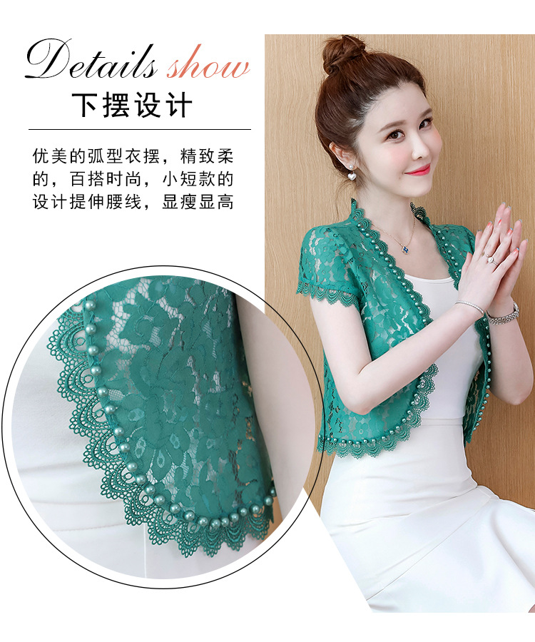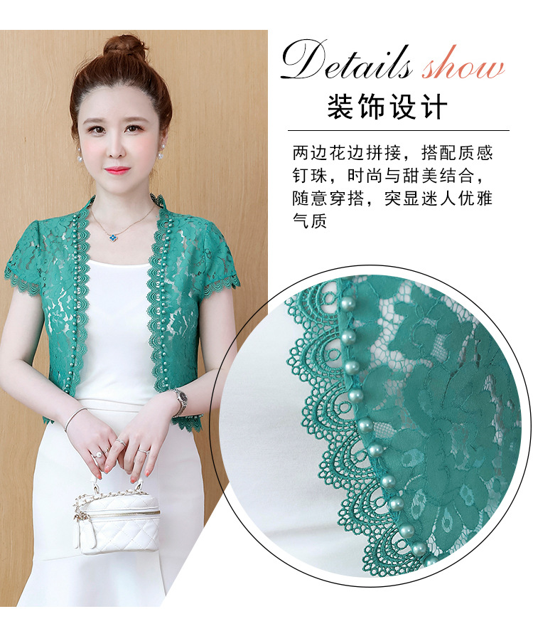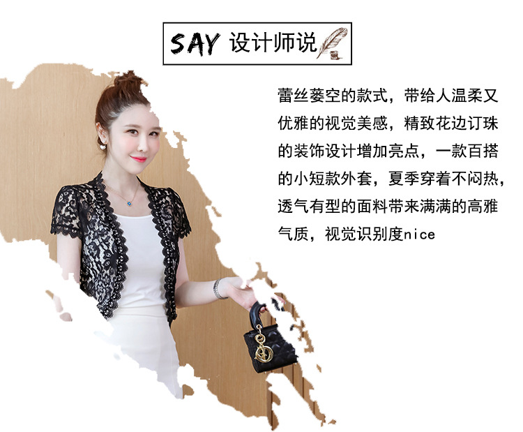 新款蕾丝短袖外套,旗袍伴侣重工钉珠时尚百搭短外套KQL-3580