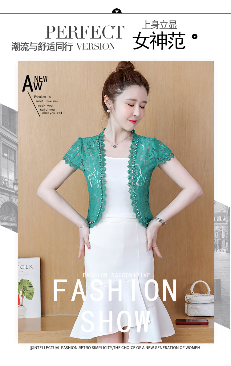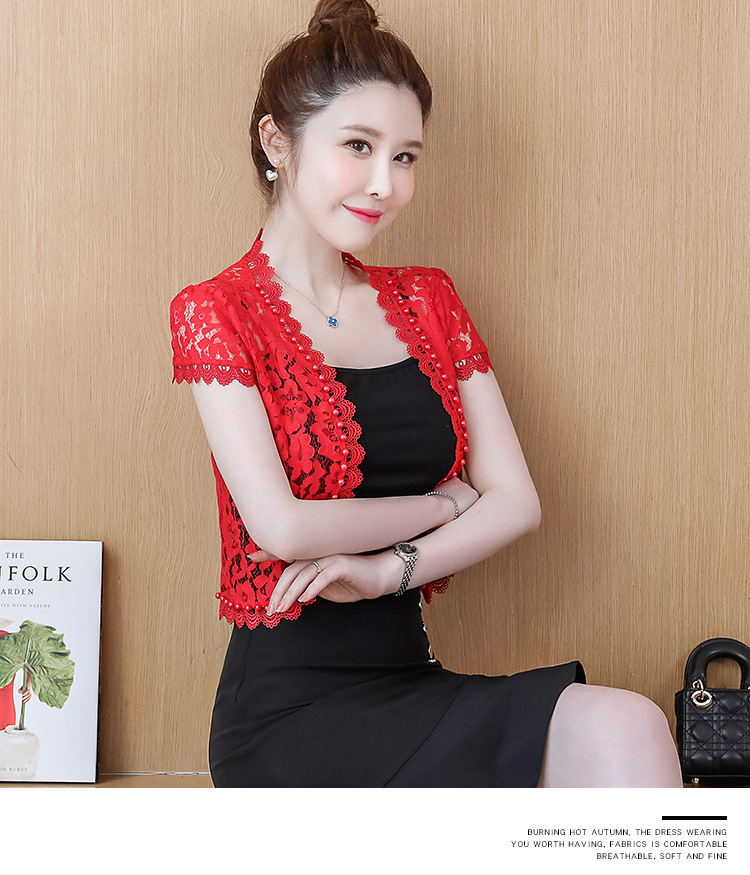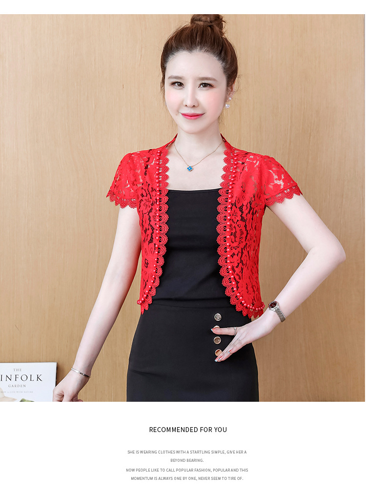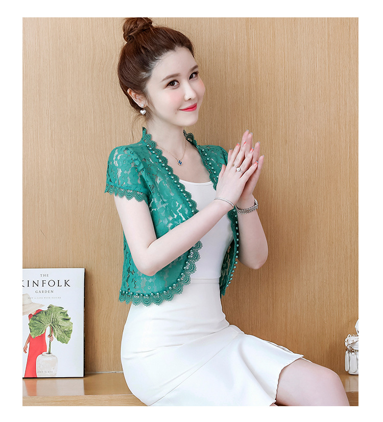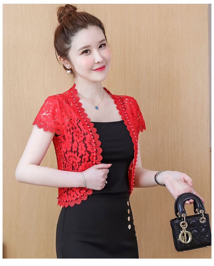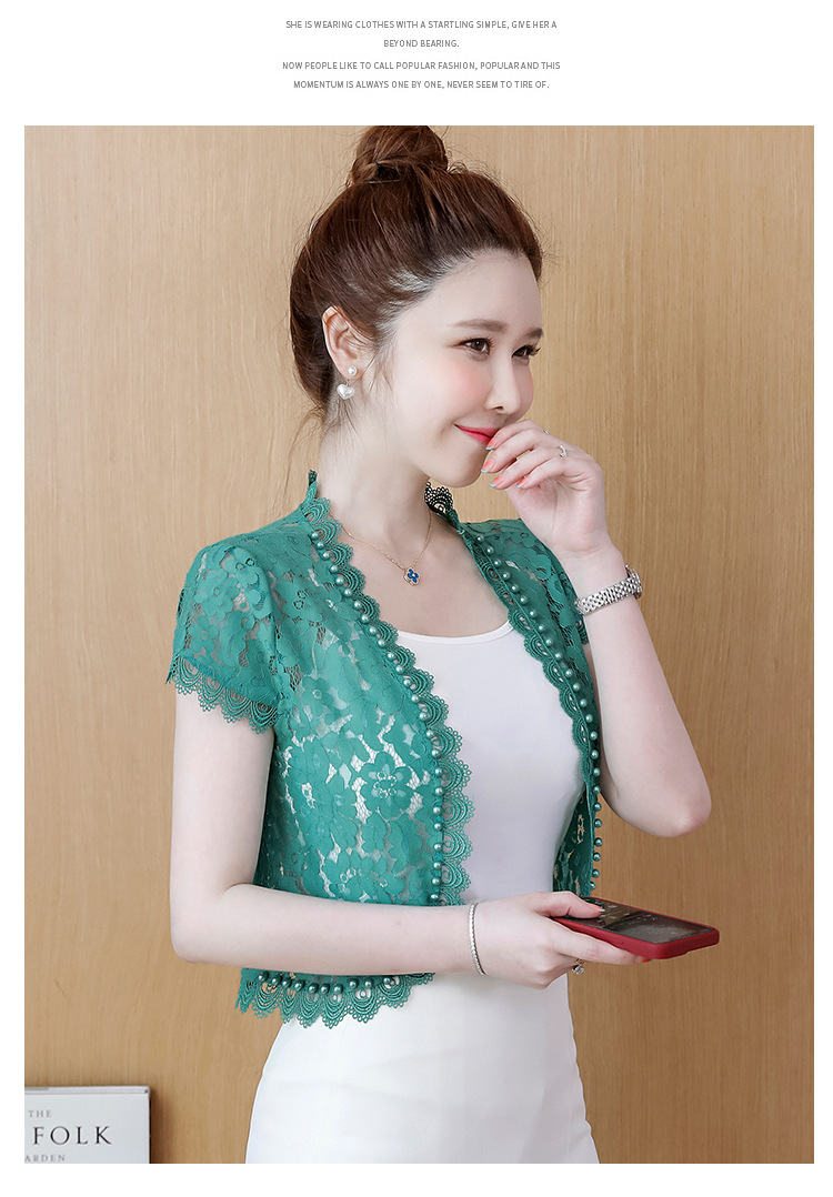 新款蕾丝短袖外套,旗袍伴侣重工钉珠时尚百搭短外套KQL-3580