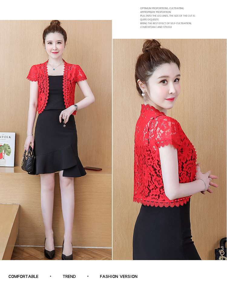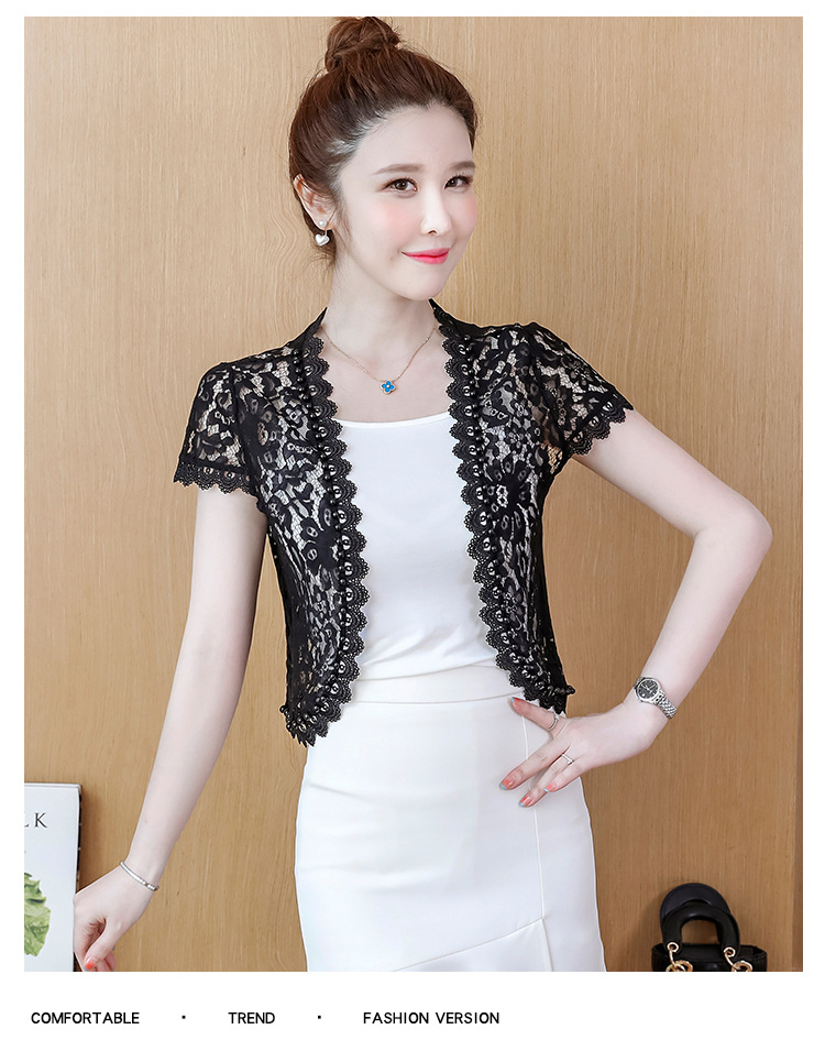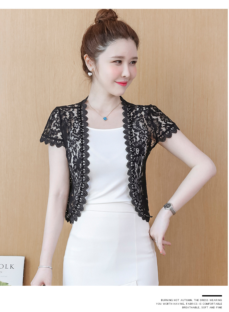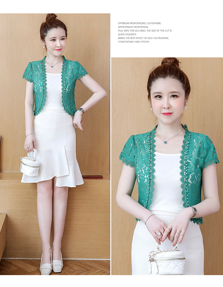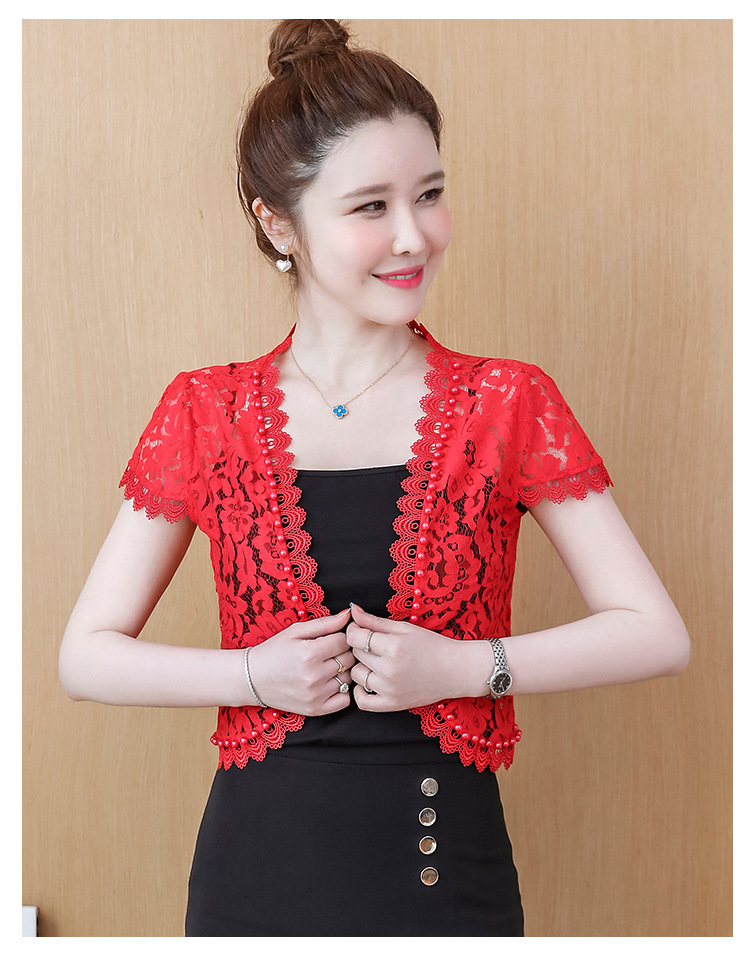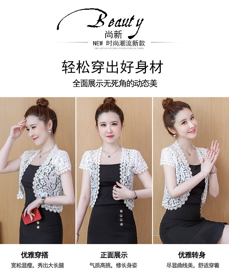 新款蕾丝短袖外套,旗袍伴侣重工钉珠时尚百搭短外套KQL-3580