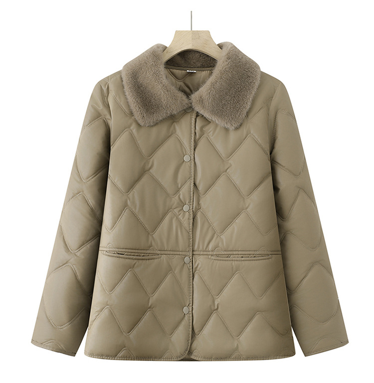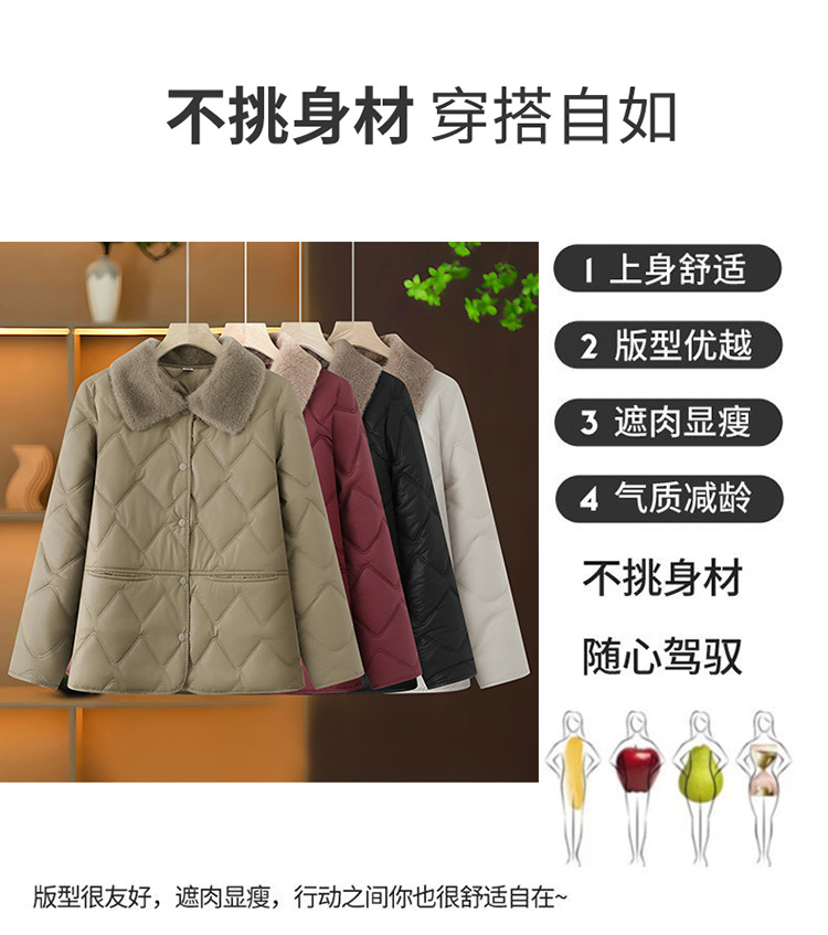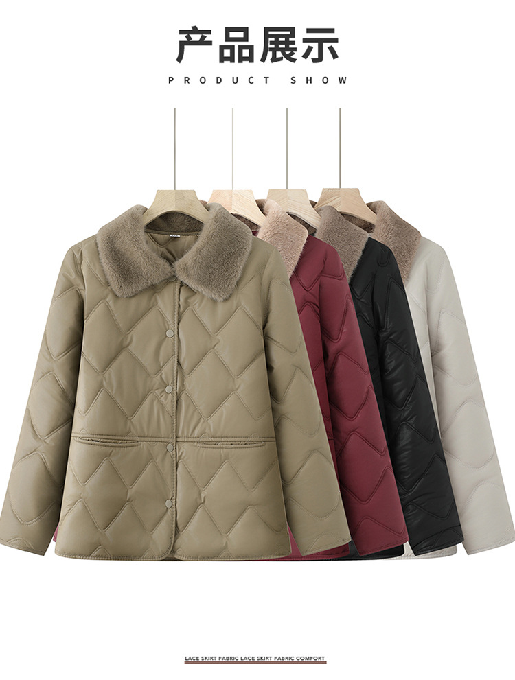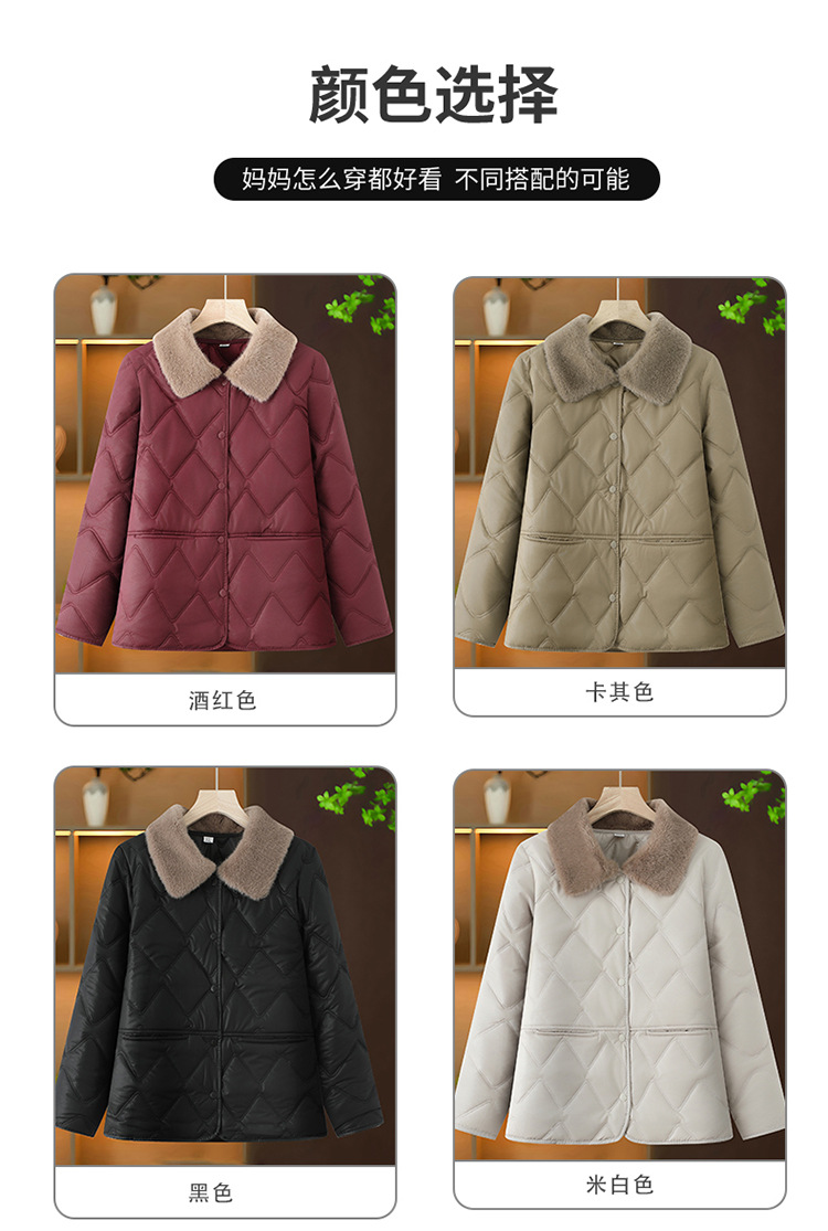 冬季【妈妈装轻薄水洗皮衣棉服】中老年女装大码 宽松毛领上衣保暖小棉衣