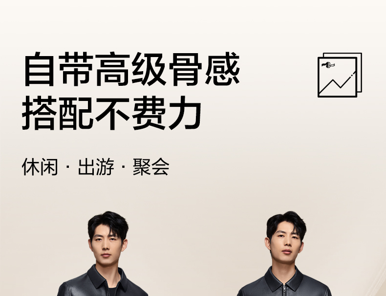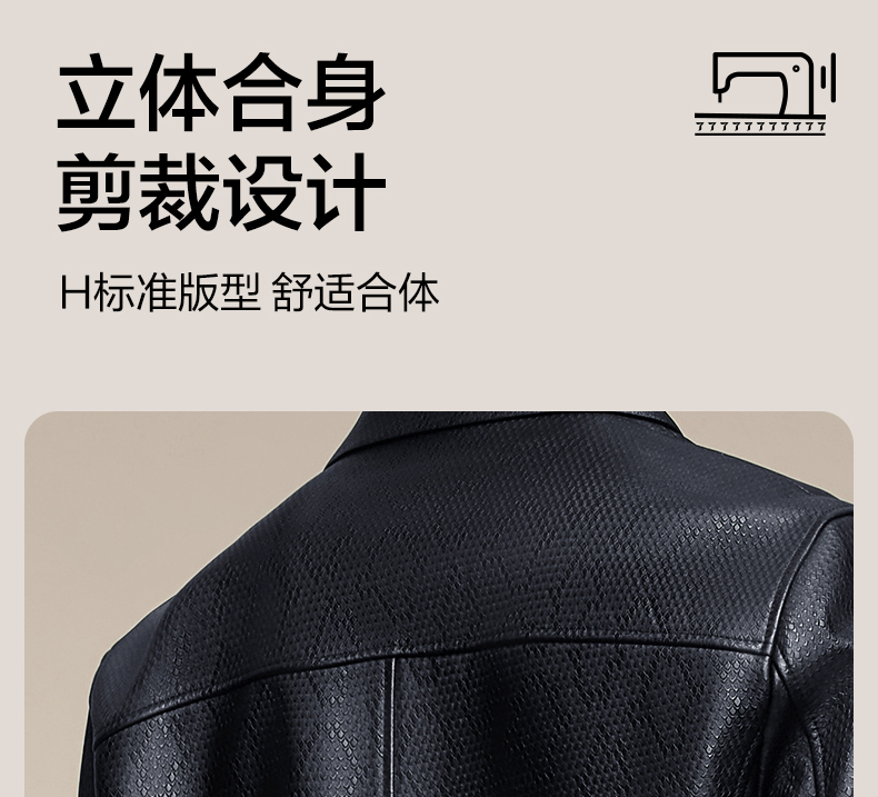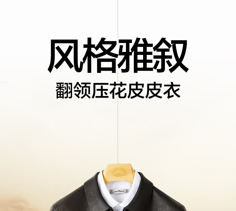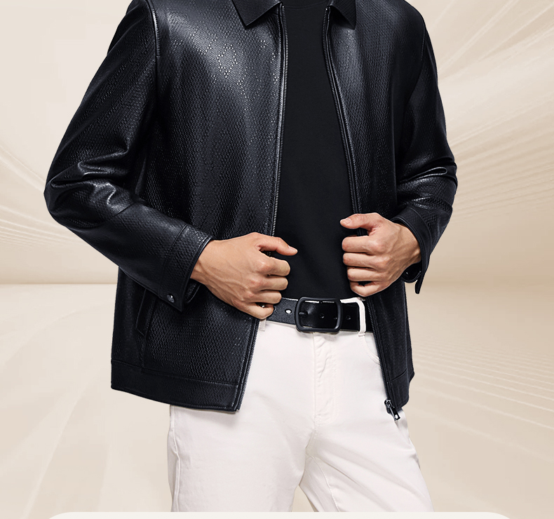 【绵羊皮/满身压花】皮夹克外套男秋季商务休闲黑色翻领皮衣潮流129J70310