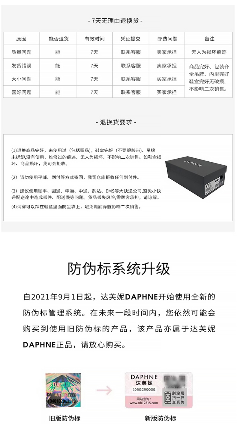 【注意事项】换货需要扣除-10元/件及偏远加收运费,鞋底磨损及其他影响二次销售情况,无法退换货。