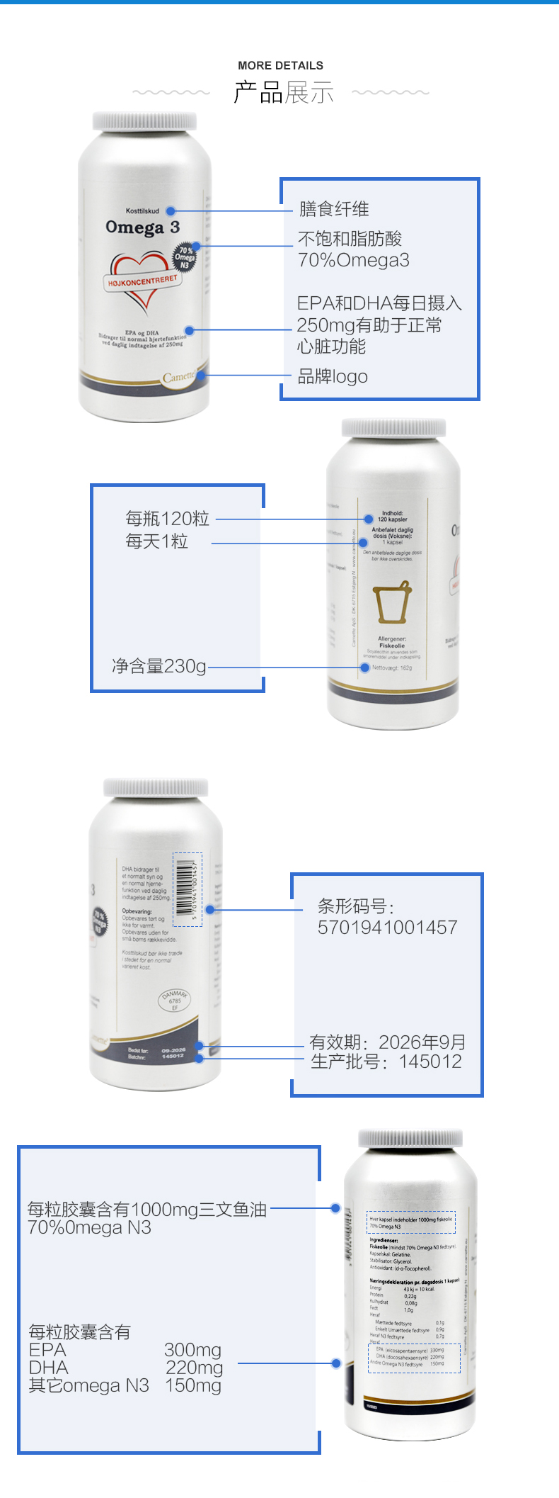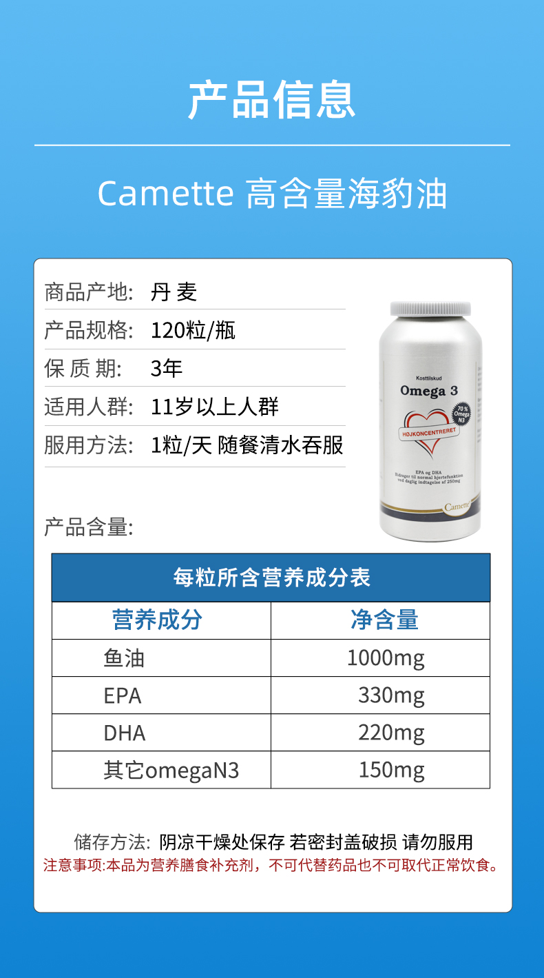 丹麦Camette凯麦特浓缩鱼油120粒/瓶