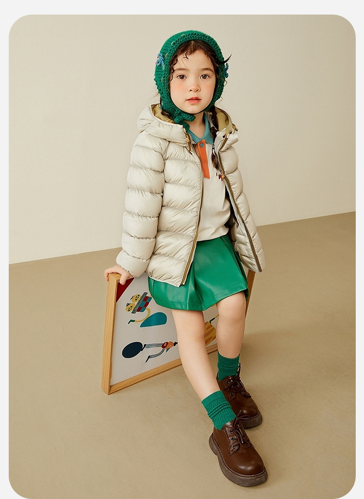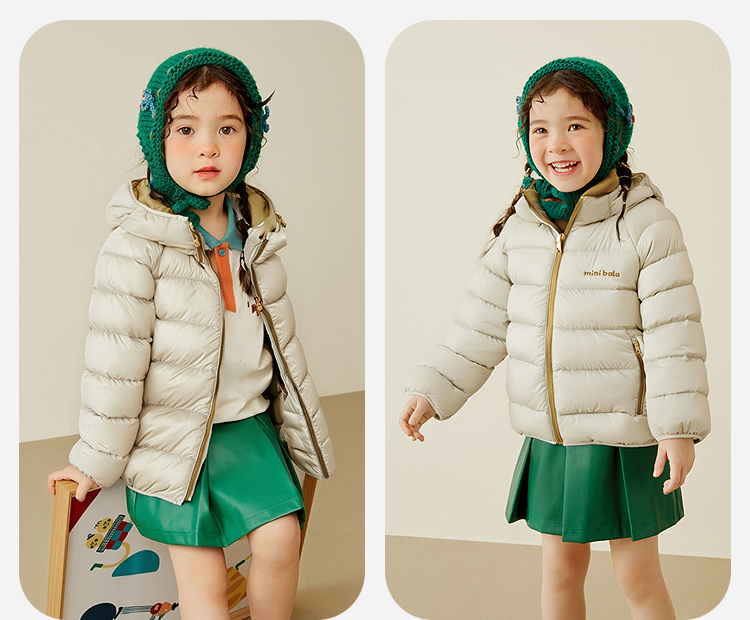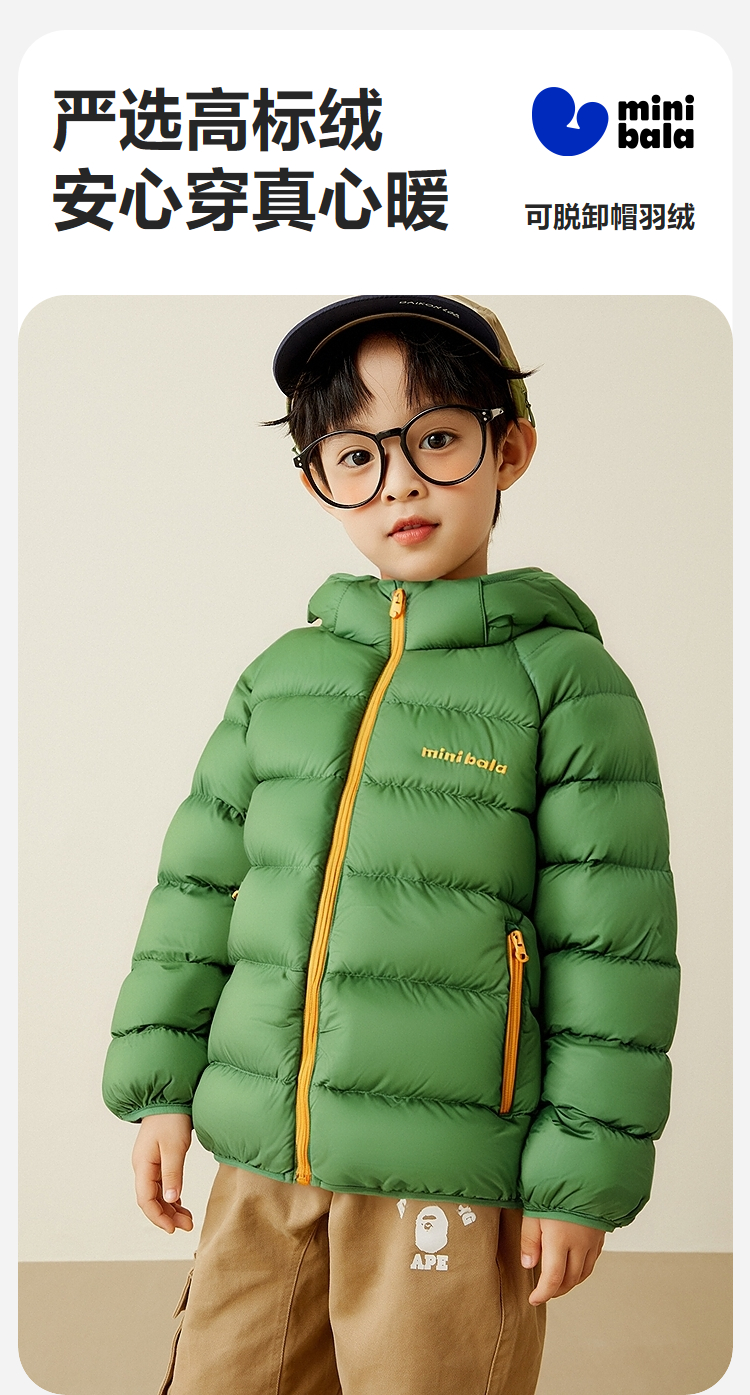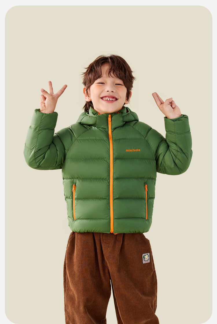 【三防可脱卸帽】迷你巴拉男女童撞色外套儿童户外冬季羽绒服