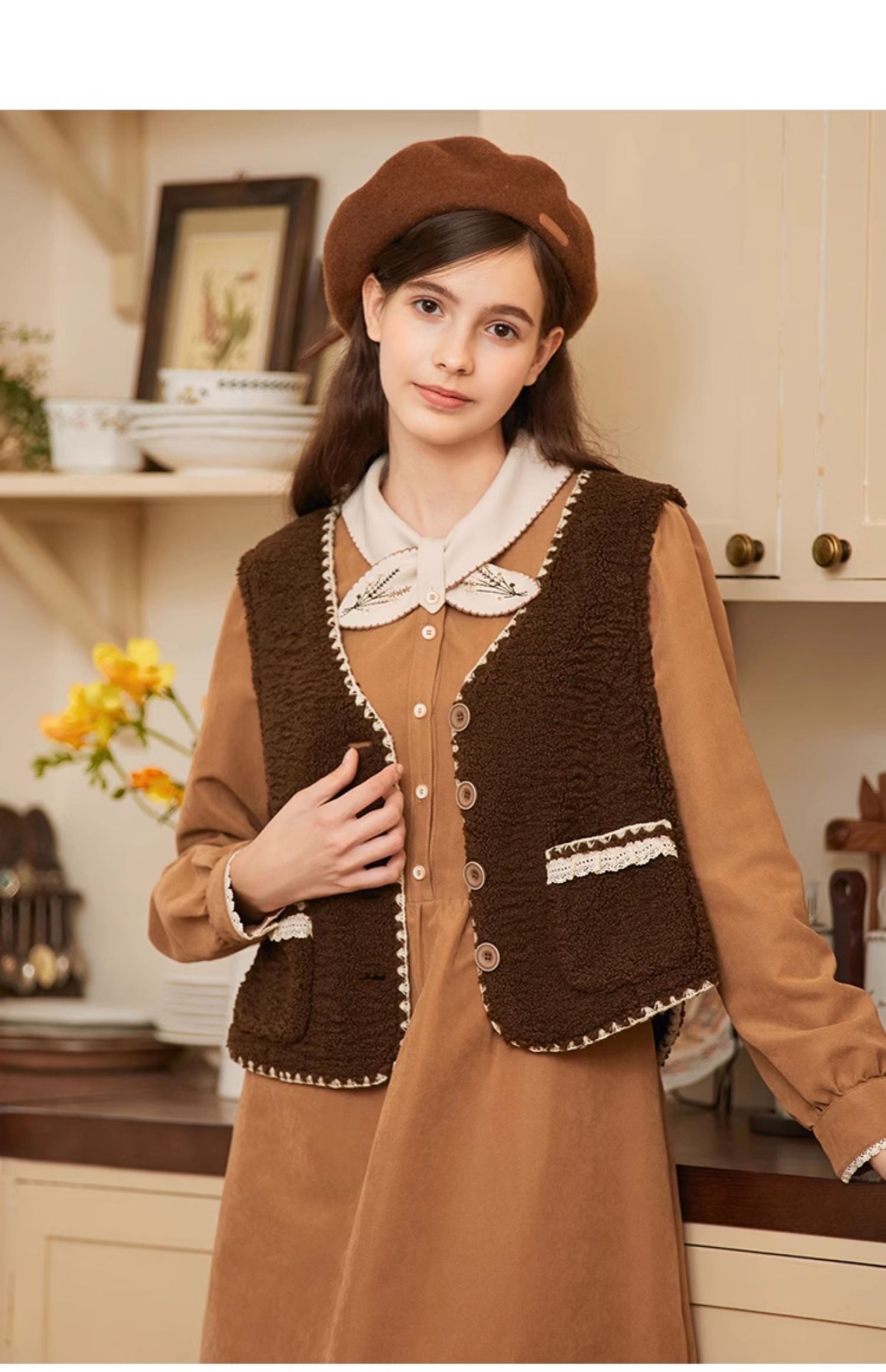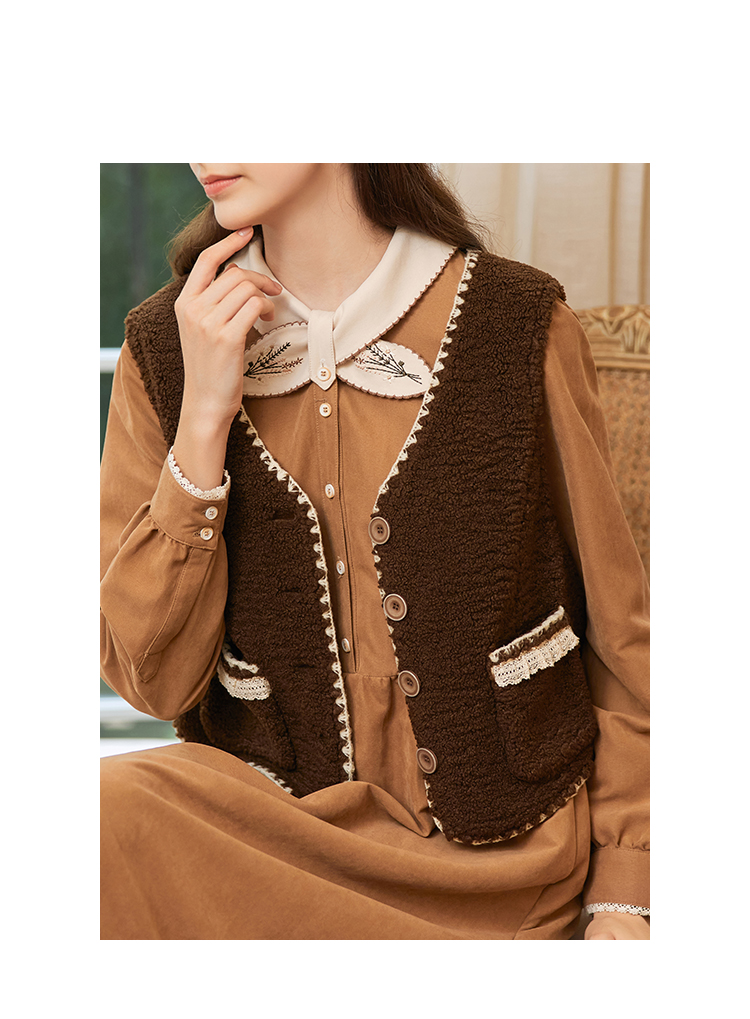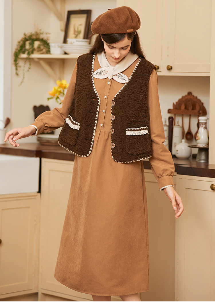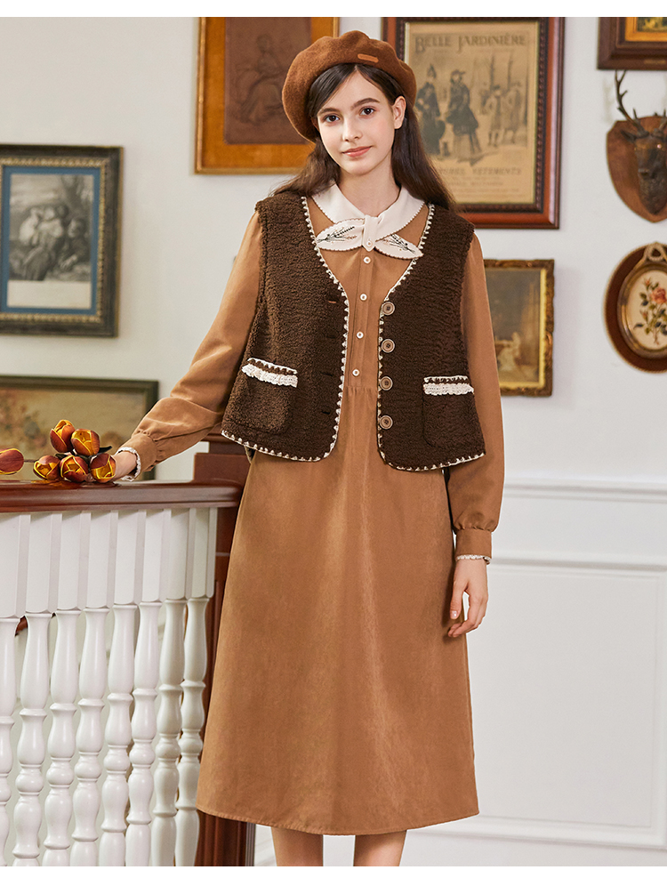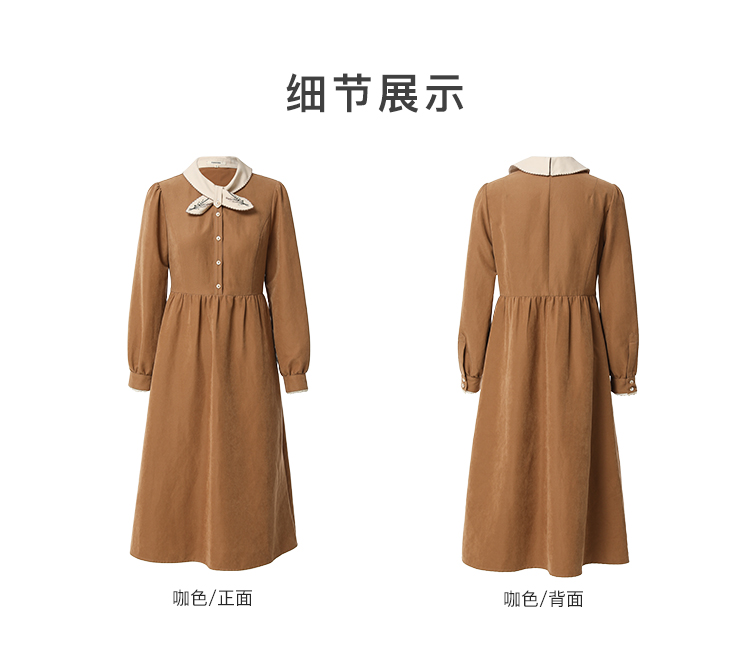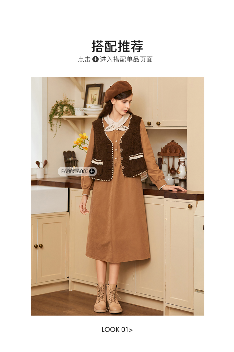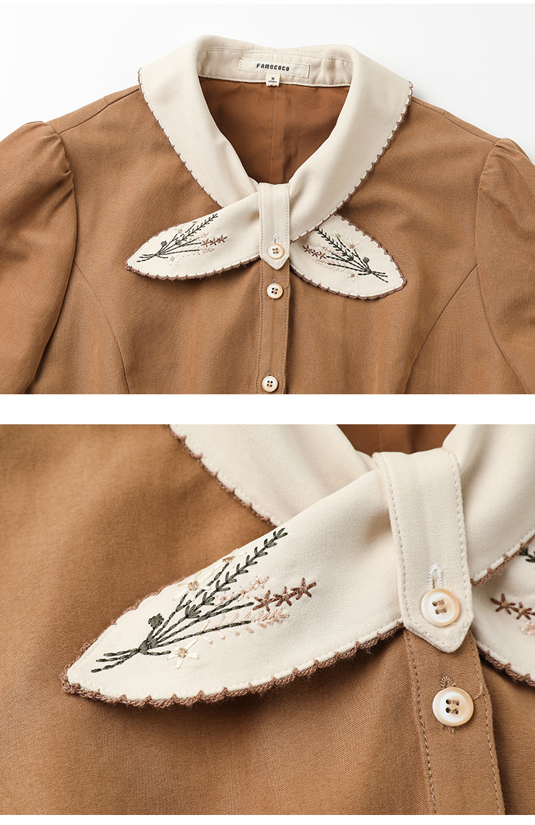 Famecoco范可儿植物绣花文艺连衣裙女秋冬FAB8FA001