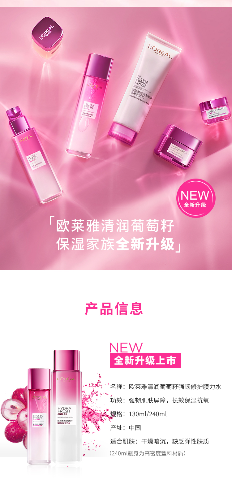 欧莱雅清润葡萄籽强韧修护膜力水 130ml 原价150元