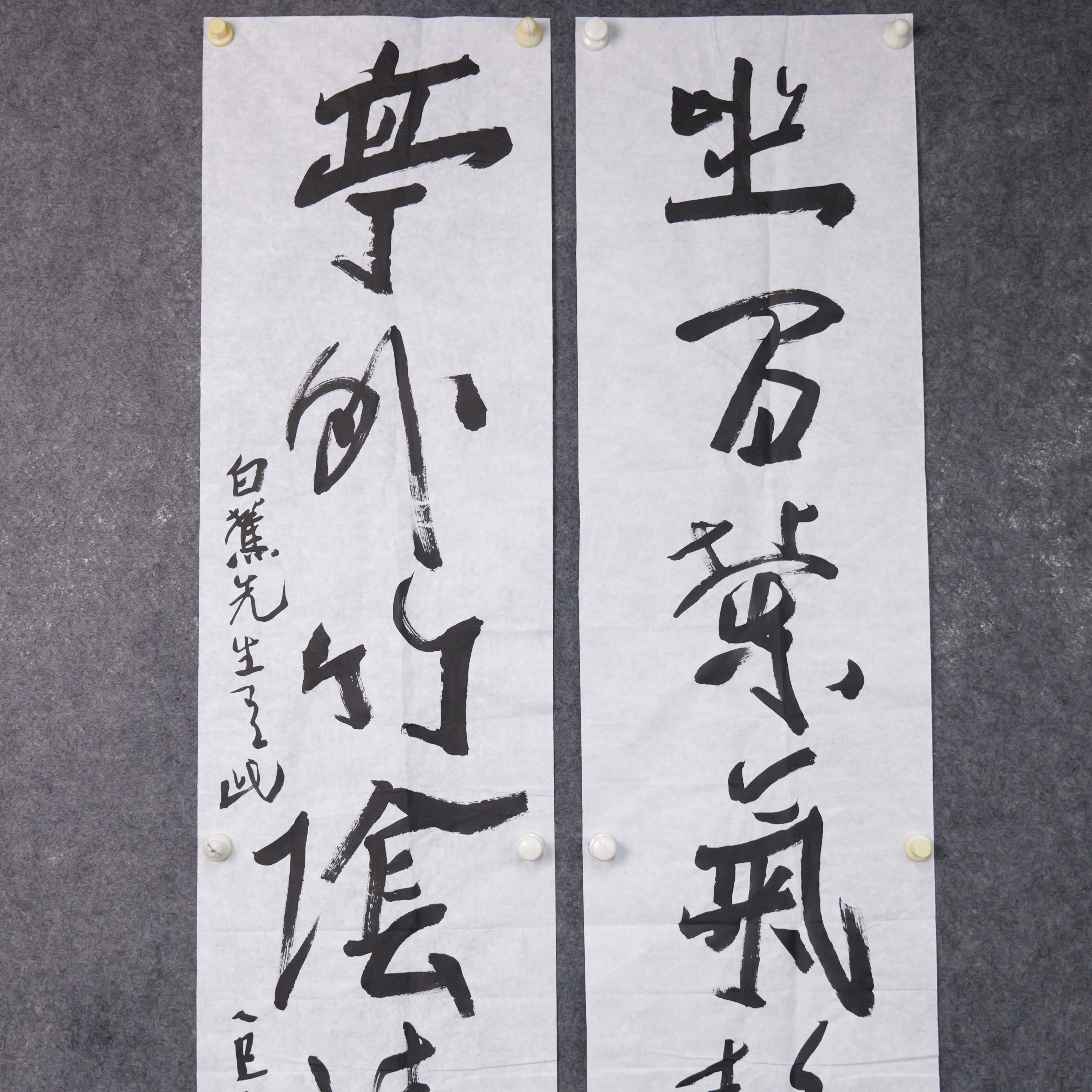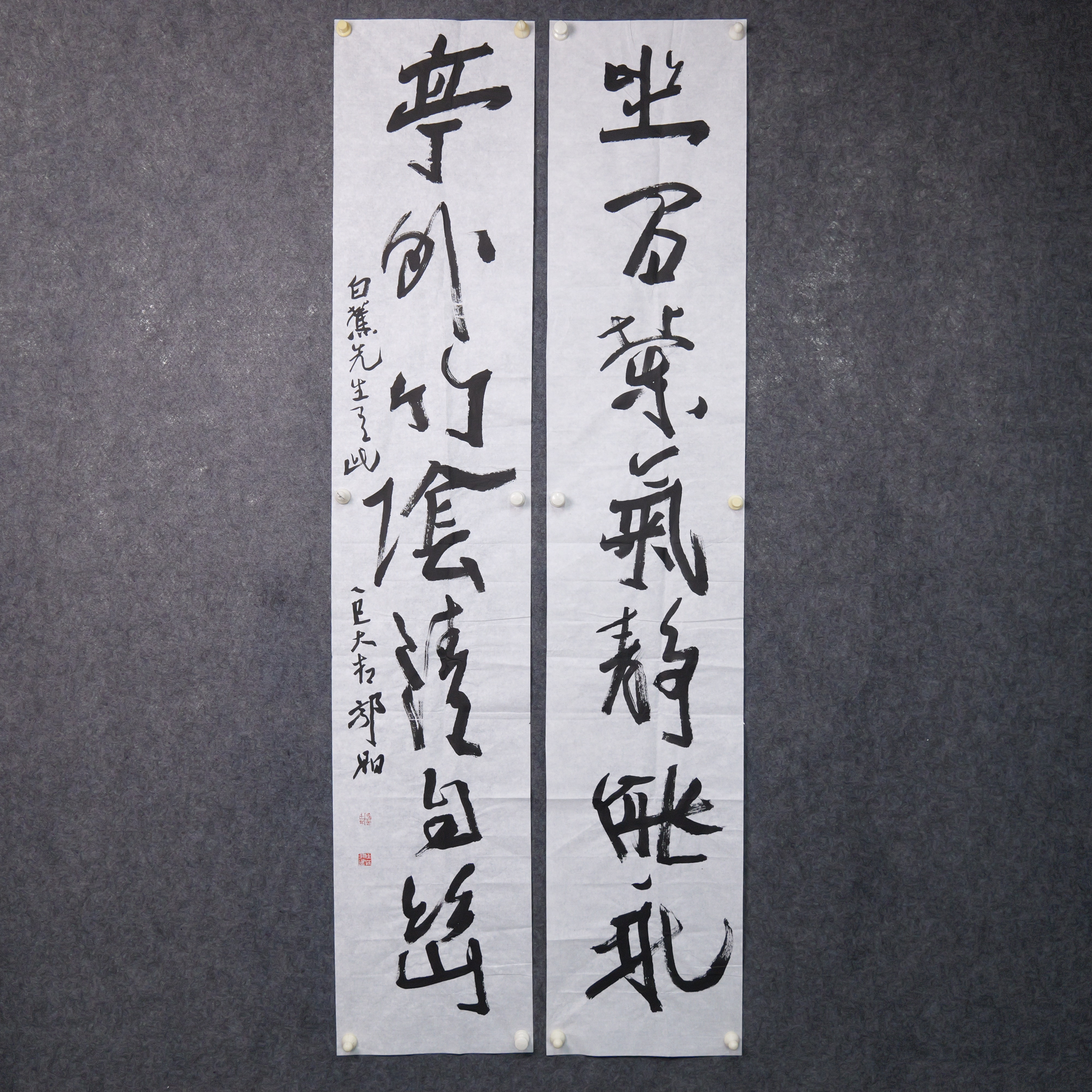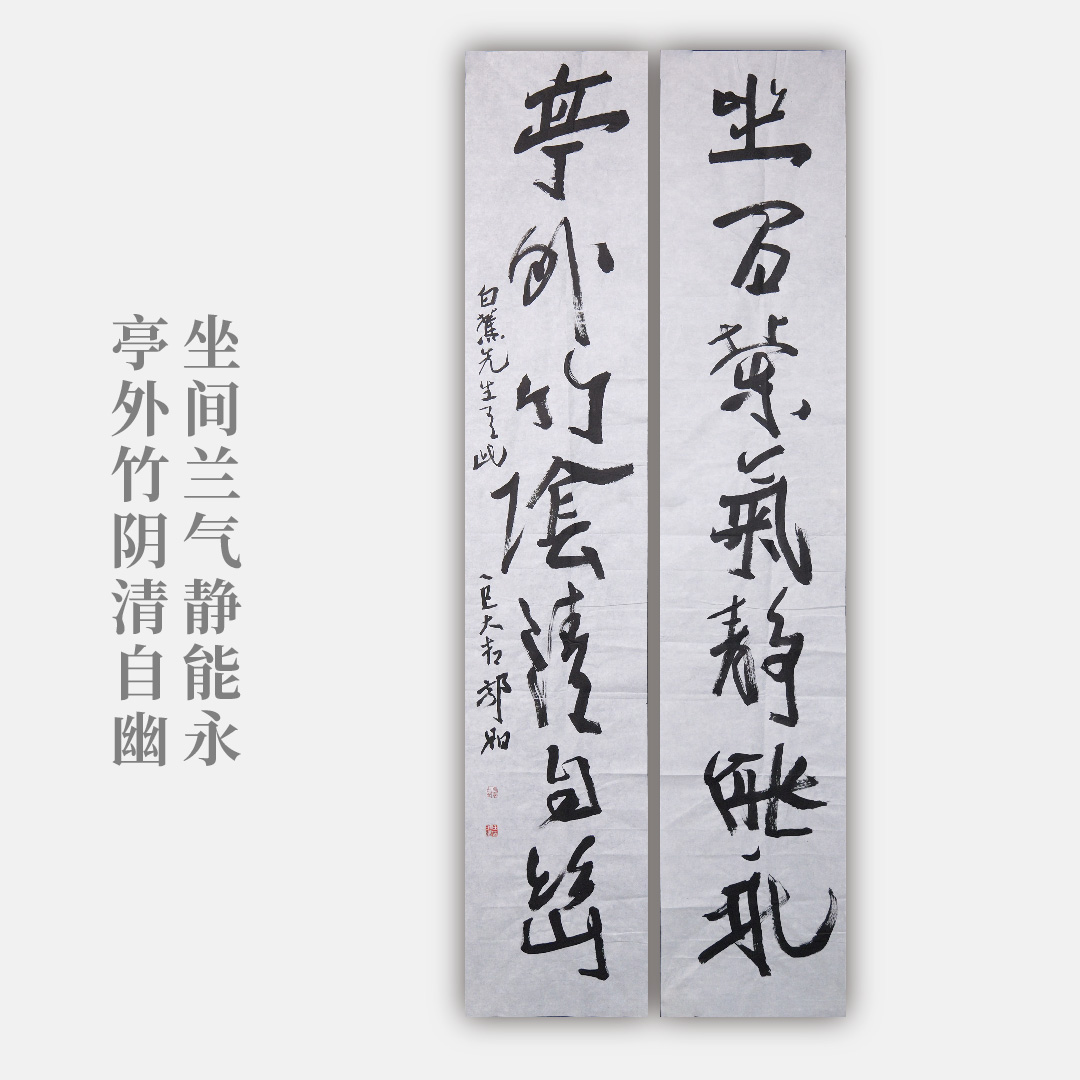 郭晶《坐间兰气静能永,亭外竹阴清自幽》168x32CM 手写纸本宣纸对联