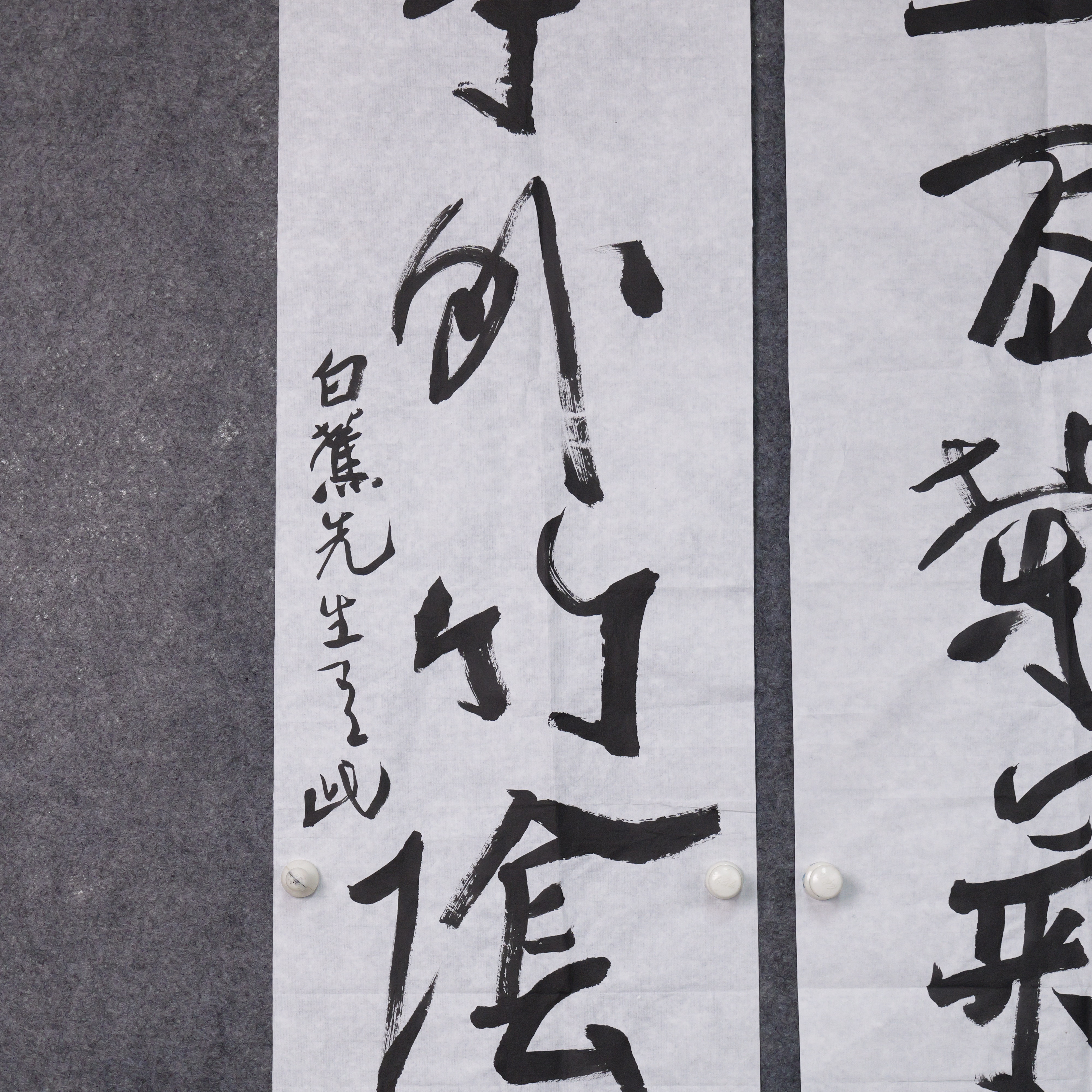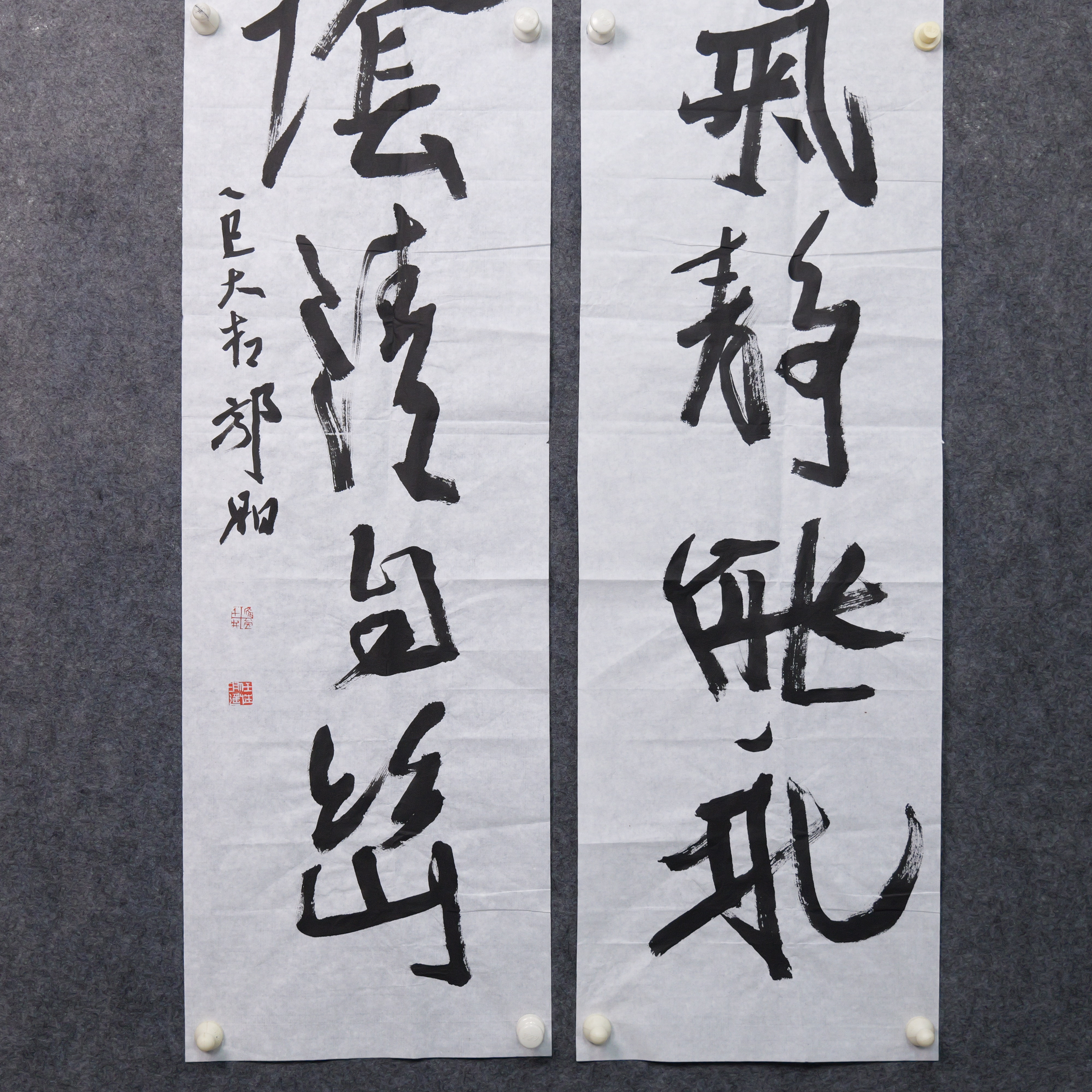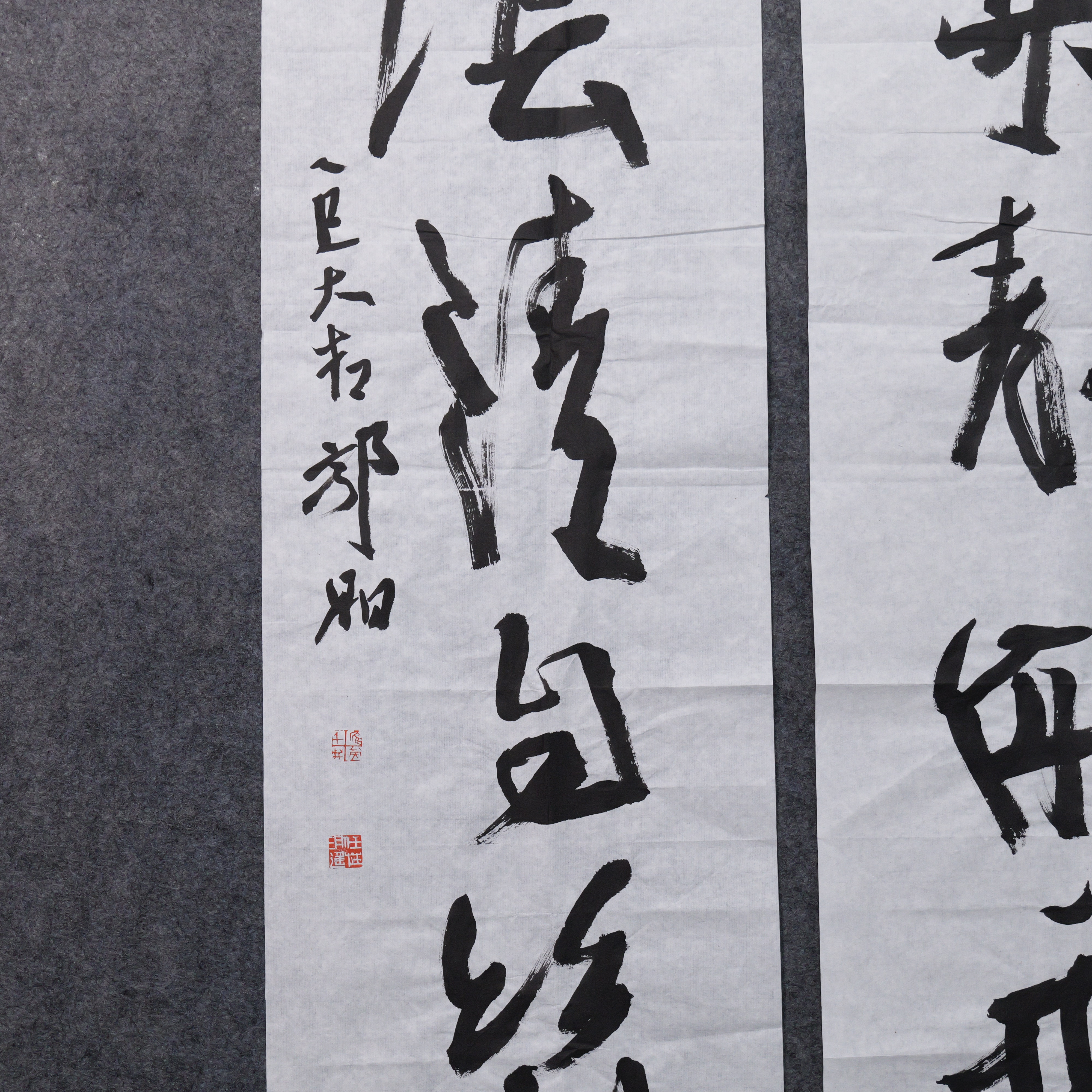 郭晶《坐间兰气静能永,亭外竹阴清自幽》168x32CM 手写纸本宣纸对联