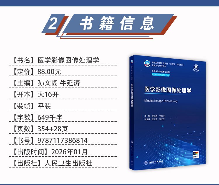 医学影像图像处理学 孙文阁 牛延涛 主编 十四五规划教材 全国高等学校教材 供医学影像技术专业用 9787117386814人民卫生出版社