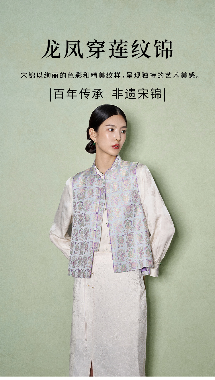 SAINTJOY/上久楷女式宋锦马甲 龙凤穿莲纹锦 CY1044207007