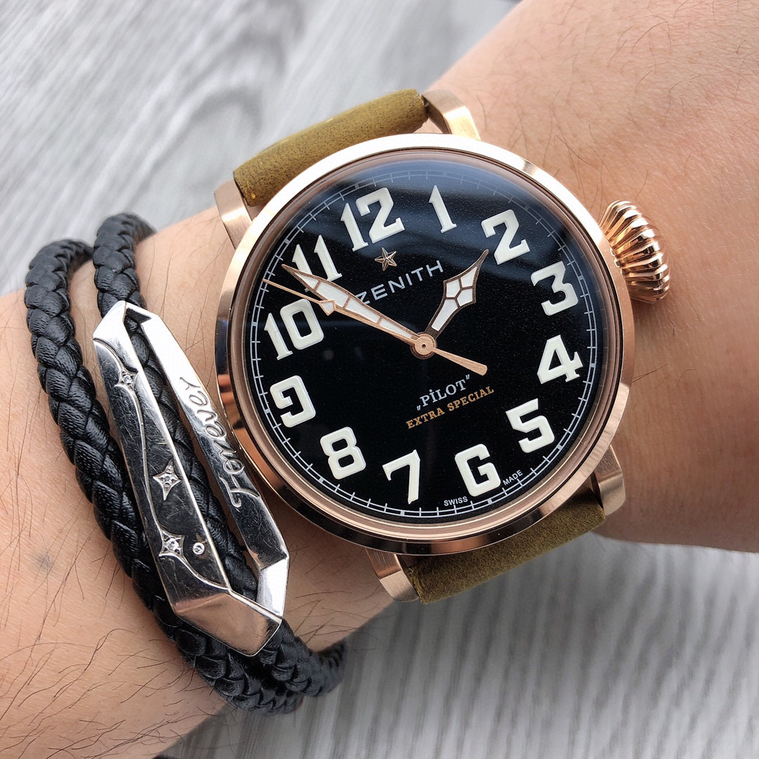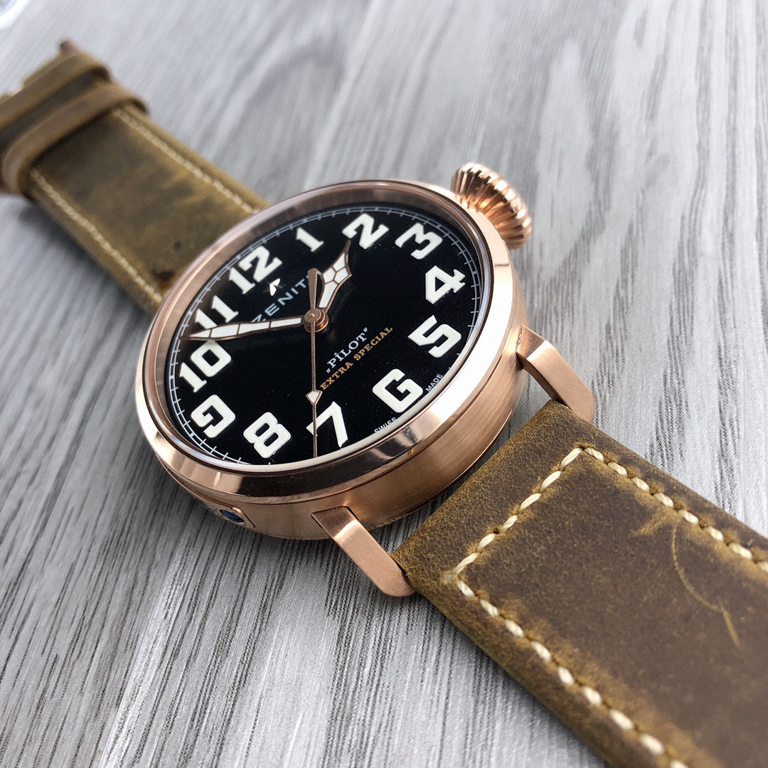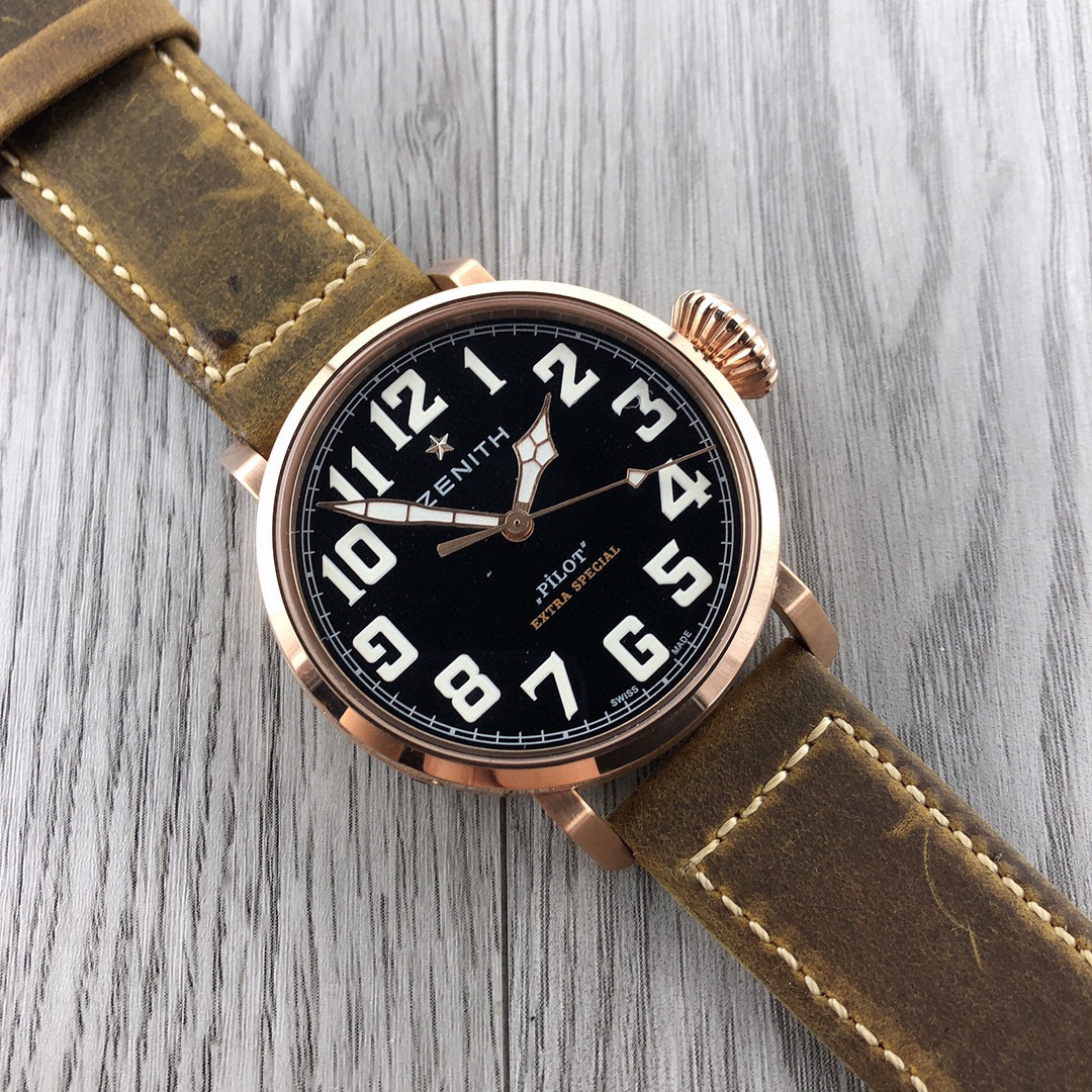 真力时 ZENITH 飞行员系列 V3升级版 大飞系列 搭载原装进口全自动机械机芯 原装精钢壳套 蓝宝石玻璃 超级瑞士夜光 高档进口疯马皮 原装针扣 表盘尺寸47mm 内涵自由张扬的英国“咖啡骑士” 章显雅痞绅士的复古腔调