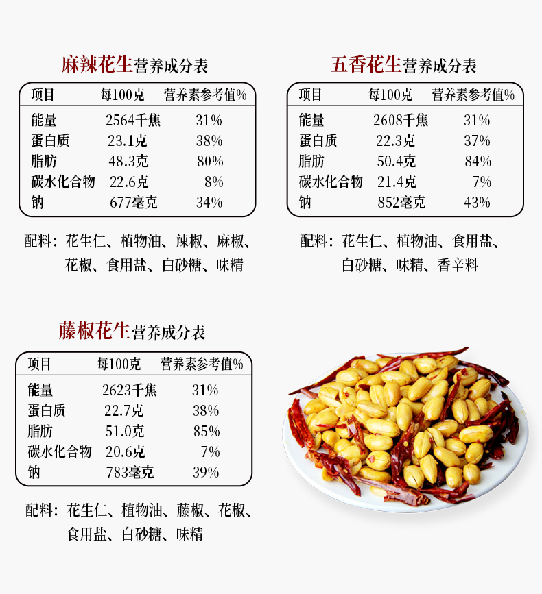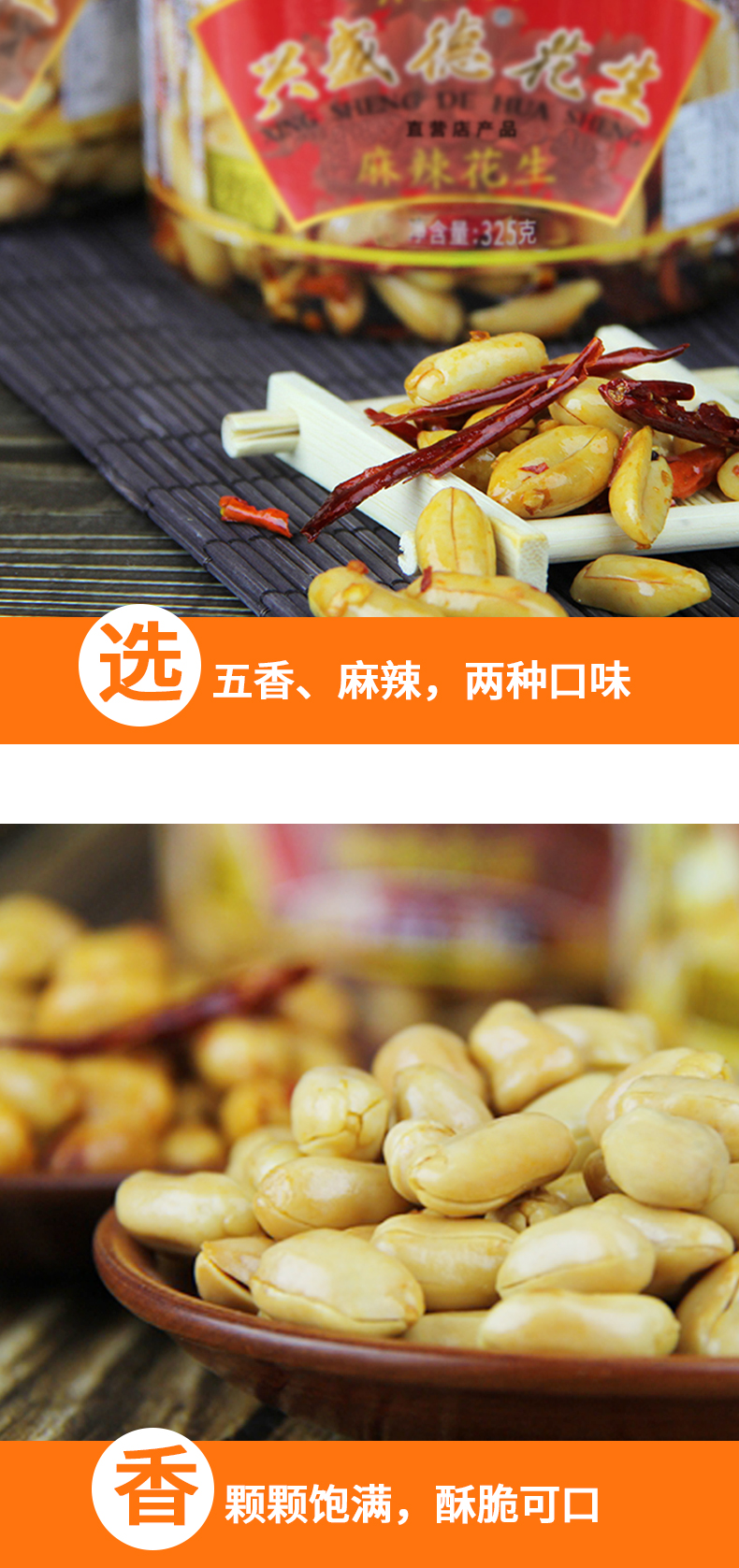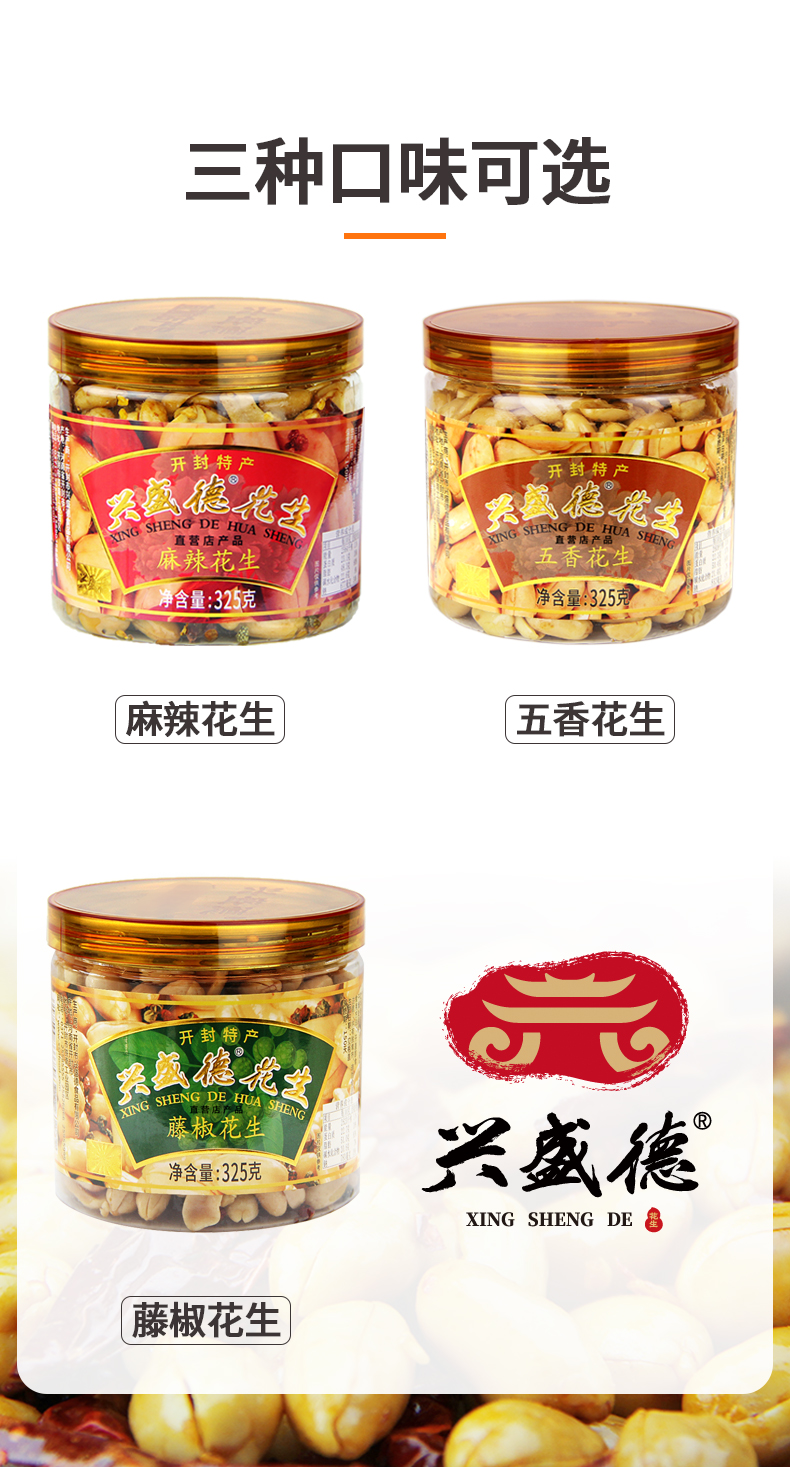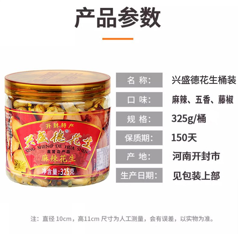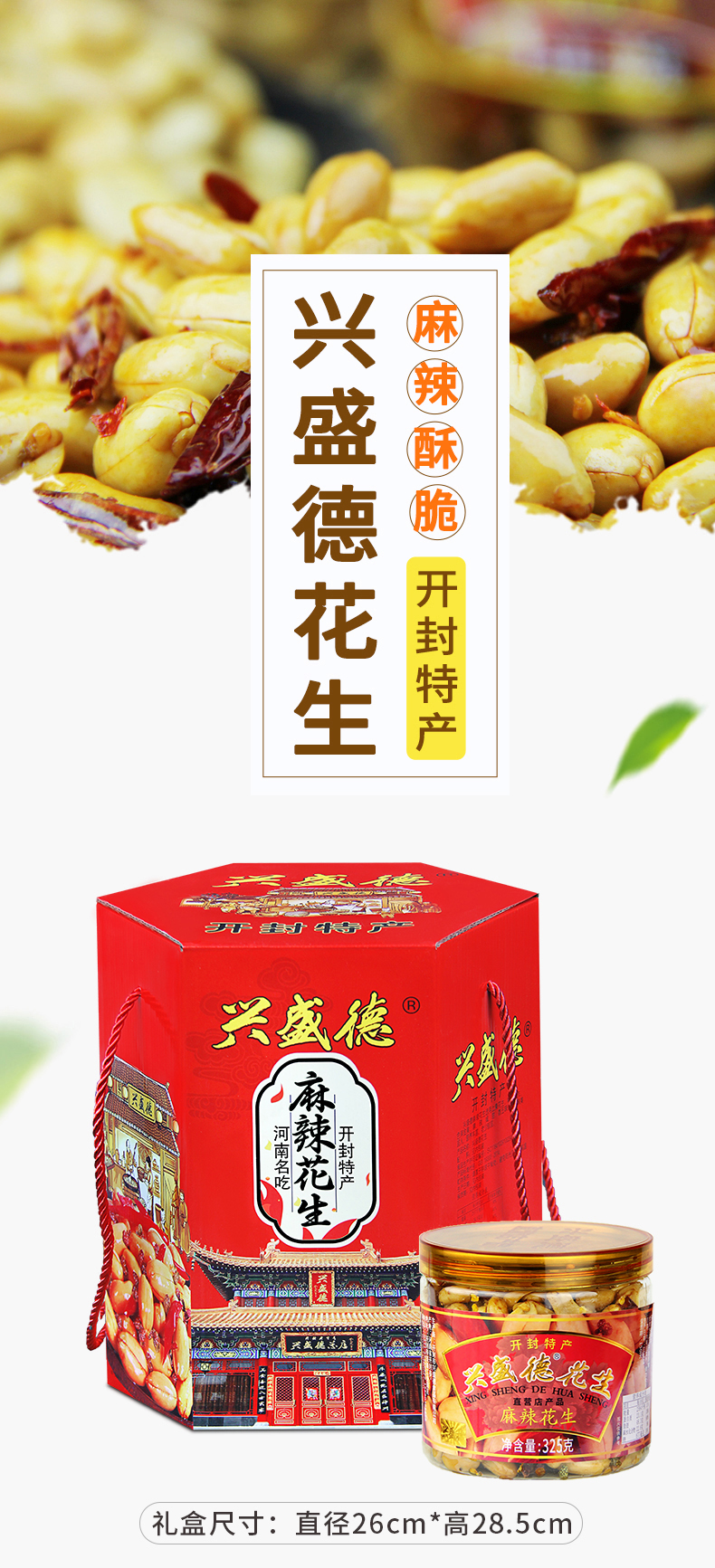 兴盛德直营店 麻辣 五香 藤椒 花生325g*6桶 方形红色礼盒