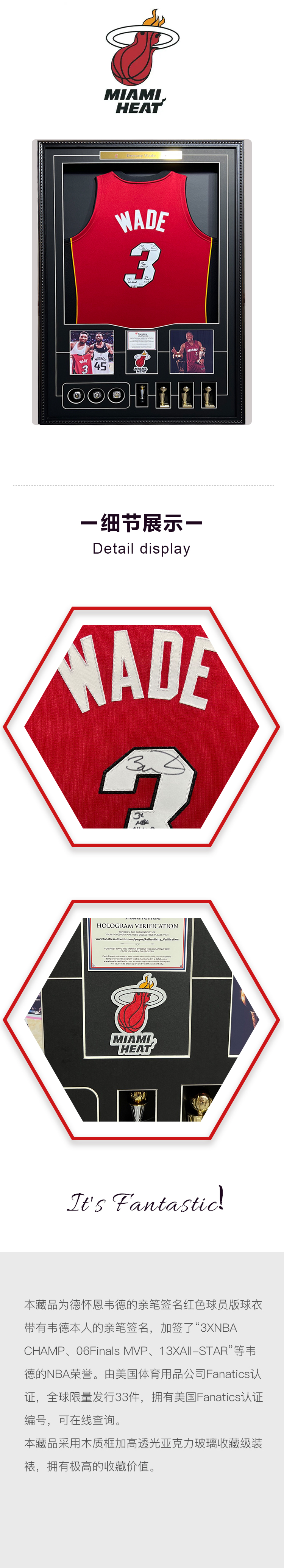 收藏系列 韦德 热火队3号红色 5/33 亲笔签名球衣 B281149