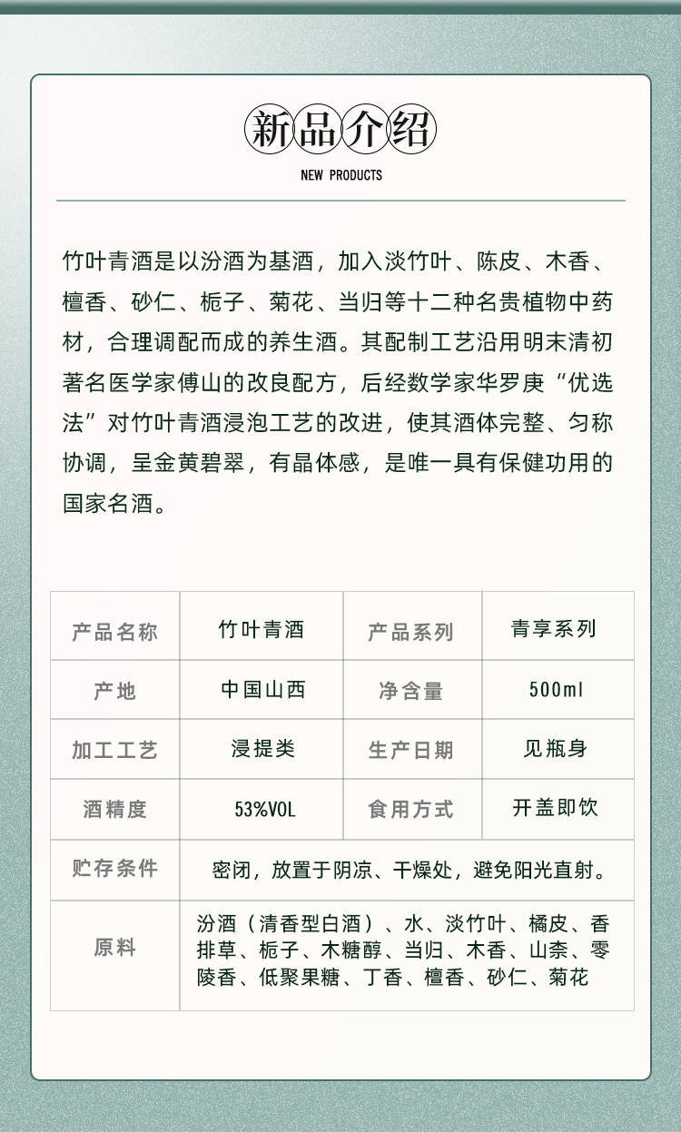 竹叶青53度青享10 (500ml*6瓶/箱)【LY】【包邮直发】