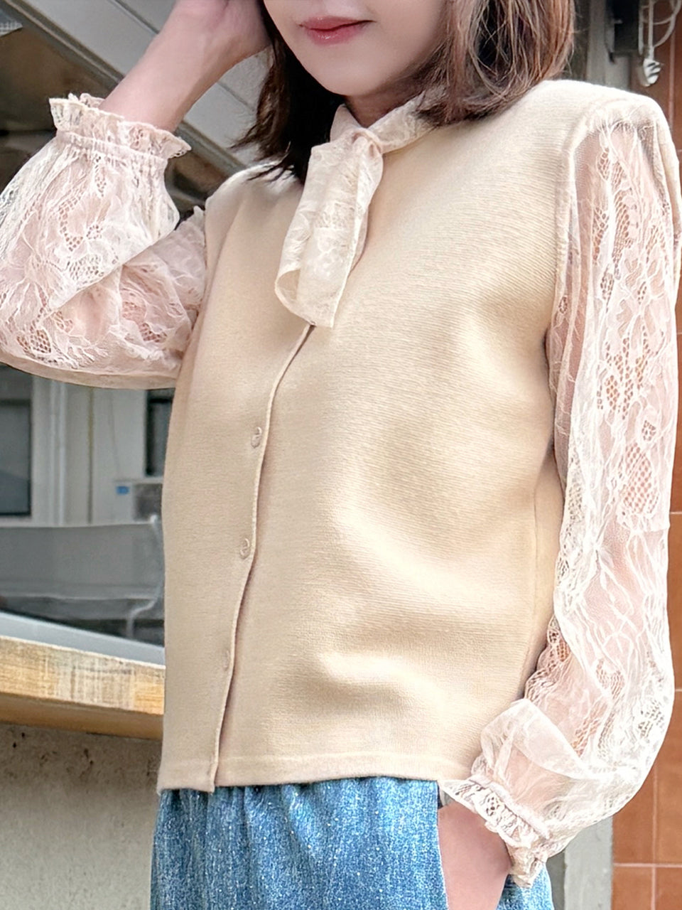 TYNVIE 蕾丝袖围巾领开衫-米白