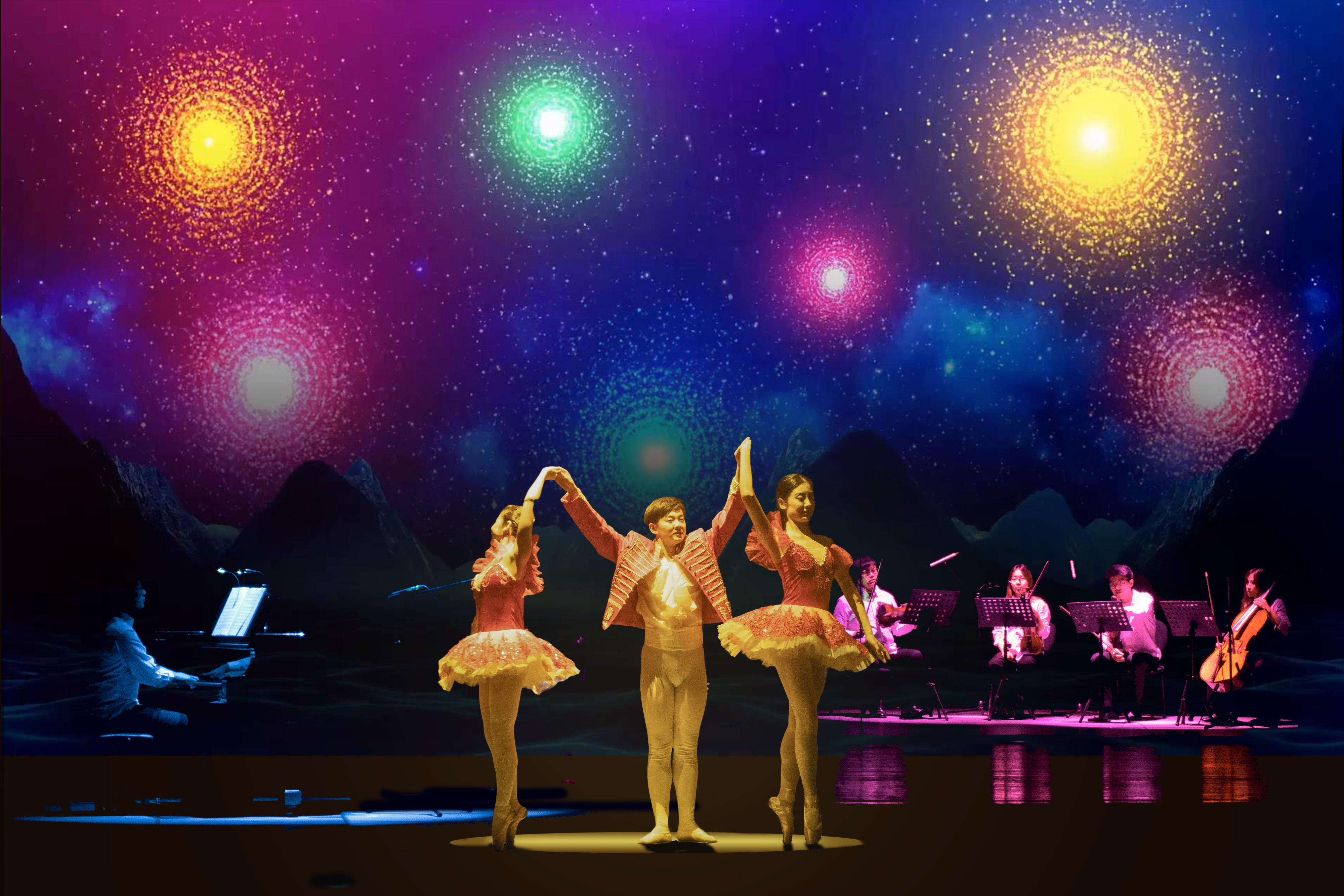 今天,我们利用全息技术来还原三大芭蕾的著名场景:天鹅湖场景、糖果世界场景和舞剧睡美人的童话世界场景,也将利用全息技术来“请出”世界著名的芭蕾舞者,与舞台上的芭蕾演员一起舞蹈。