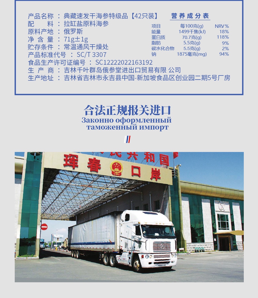 千叶群岛淡干速发海参(21瓶.盒,42只装)