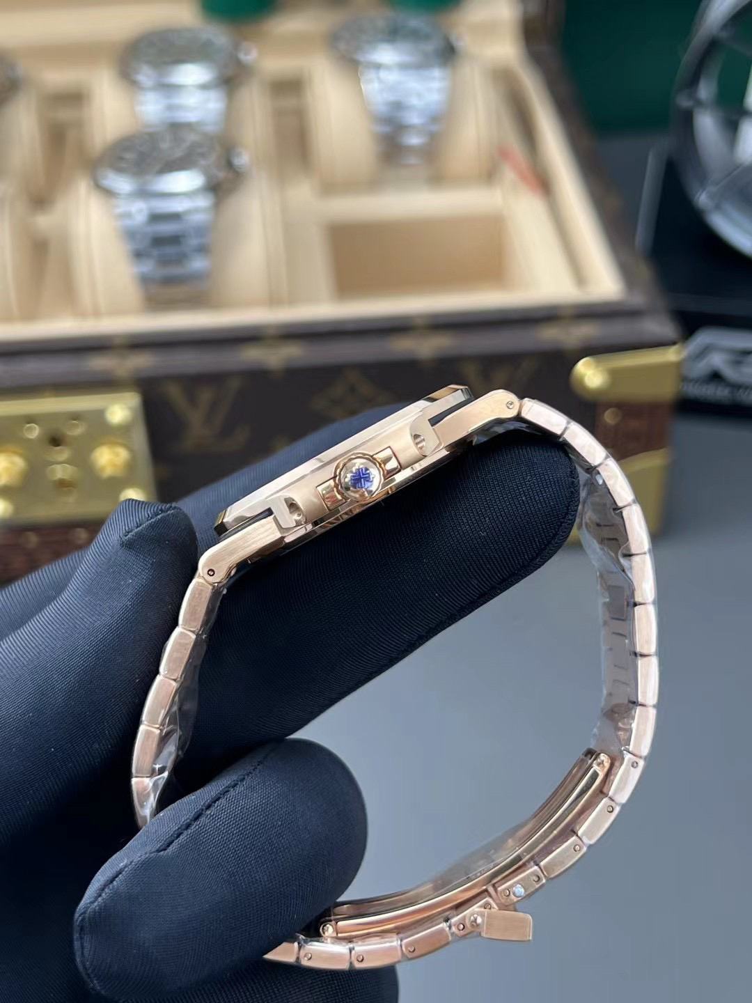 PPF V4版 鹦鹉螺钻圈重磅来袭!第一款真正意义上的超级鹦鹉螺,震撼来袭,全新修正的不锈钢表带,铰链部分根据真正的百达鹦鹉螺不锈钢表带拆解开发,和原装一致的贴合效果,逆袭之前所有副本,铰链开合角度和原装一致,锁毕声音和原装相同,重点指出此次V4版的面盘在采用与真品一致的覆荧光涂层金质立体时标,特别突出的"蓝魅"面无限接近原版,机芯方面是全新订制的修正版的一体芯Cal.324机芯,是目前唯一做到机芯的钢印与原装一样的雕刻工艺。只有做到好才配戴他去诗和远方,PPFactory.超级鹦鹉螺王中王