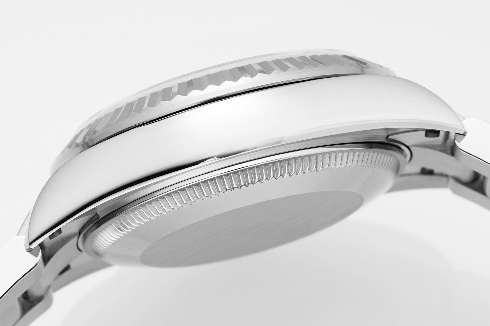 The dial of the ARF 31mm log is like a delicate lake in the sunlight, smooth yet layered. Every time the wrist is flipped, it reflects a unique light and shadow effect. Whether it's the classic silver plate, champagne gold plate, or the more modern blue plate, each color is more transparent and three-dimensional under ARF's radial pattern craftsmanship, without the cheap "rigid reflection". Even in indoor soft light environments, the dial can still maintain a low-key luster, rather than some replica dials becoming dull and dull in low light.