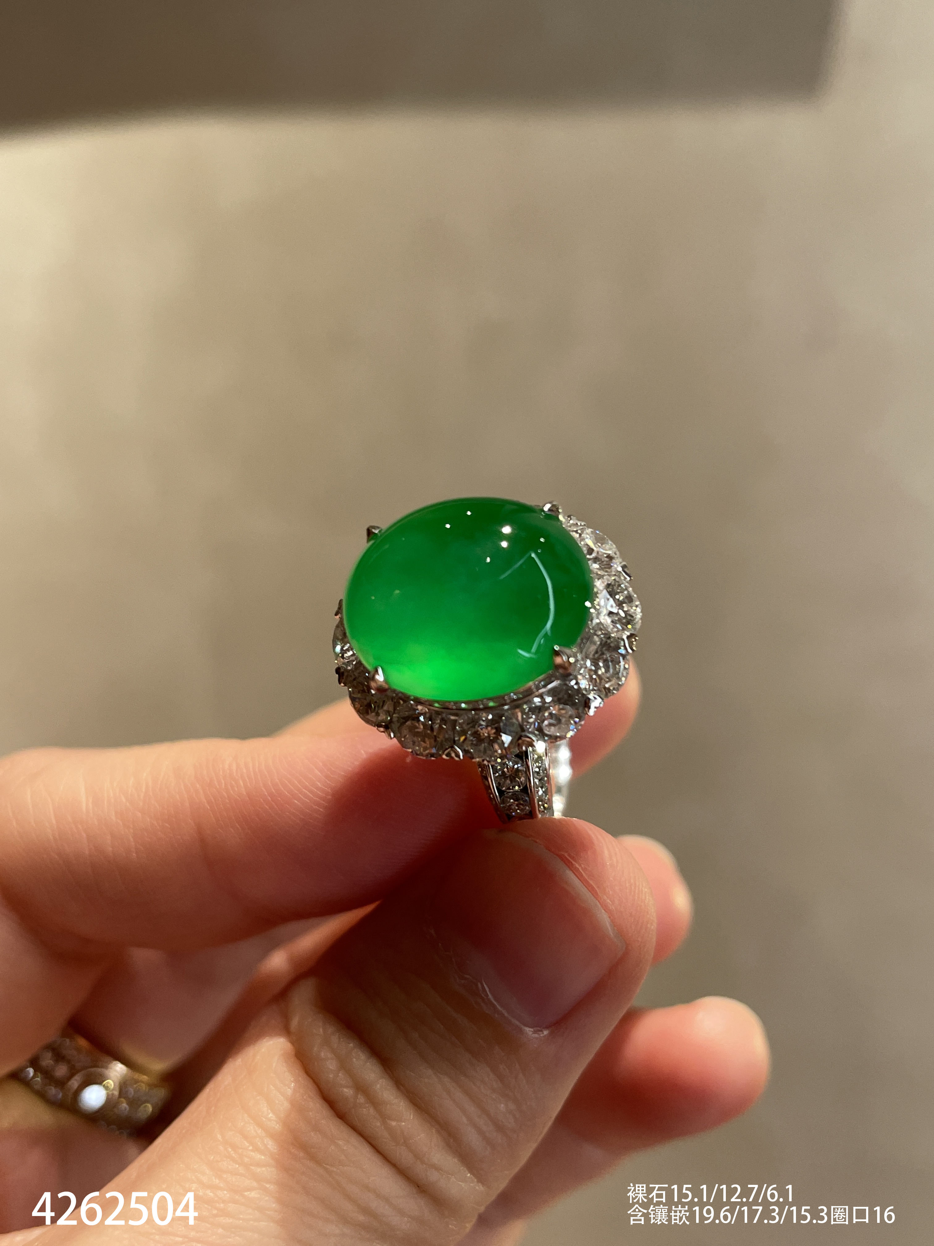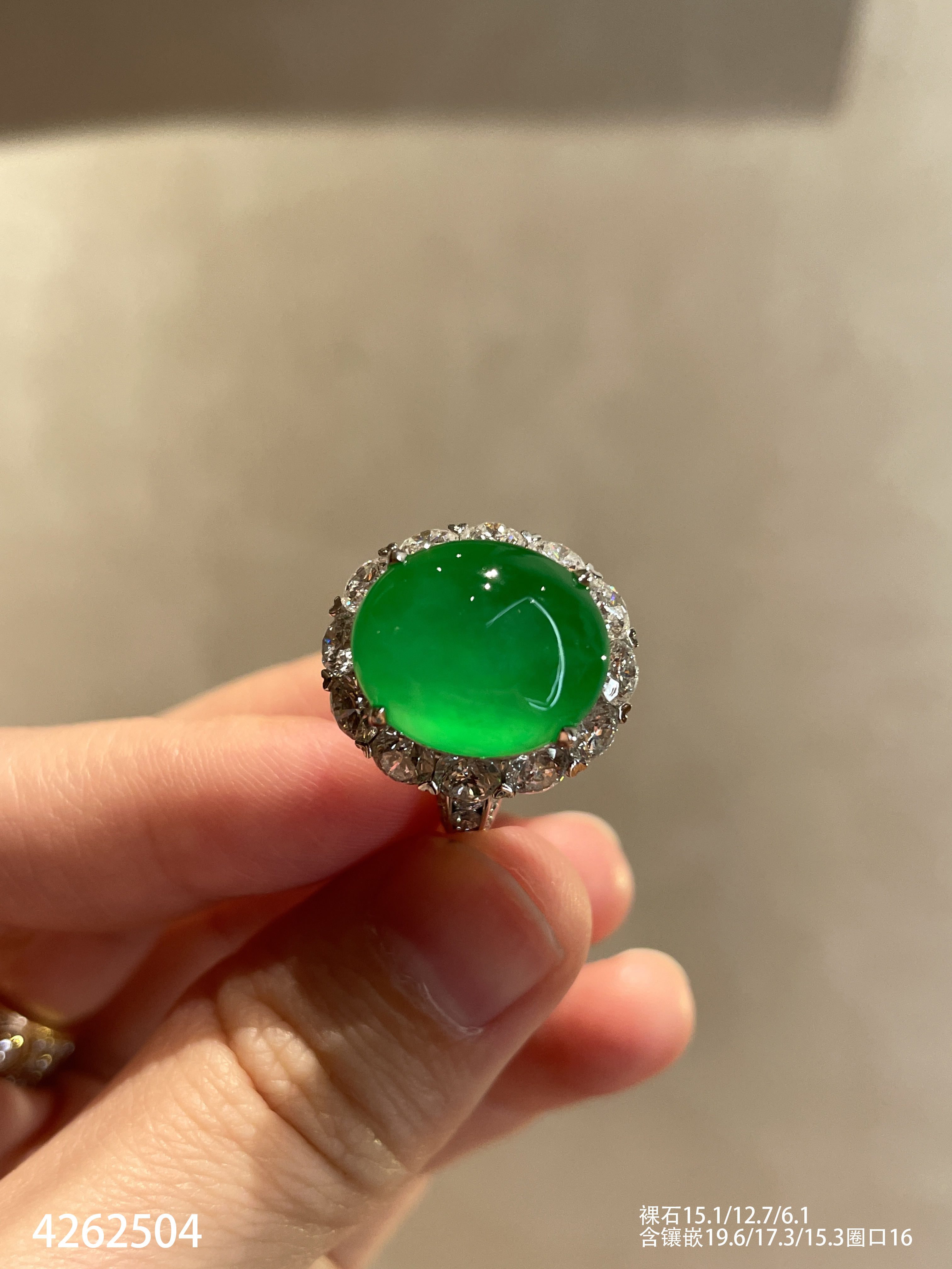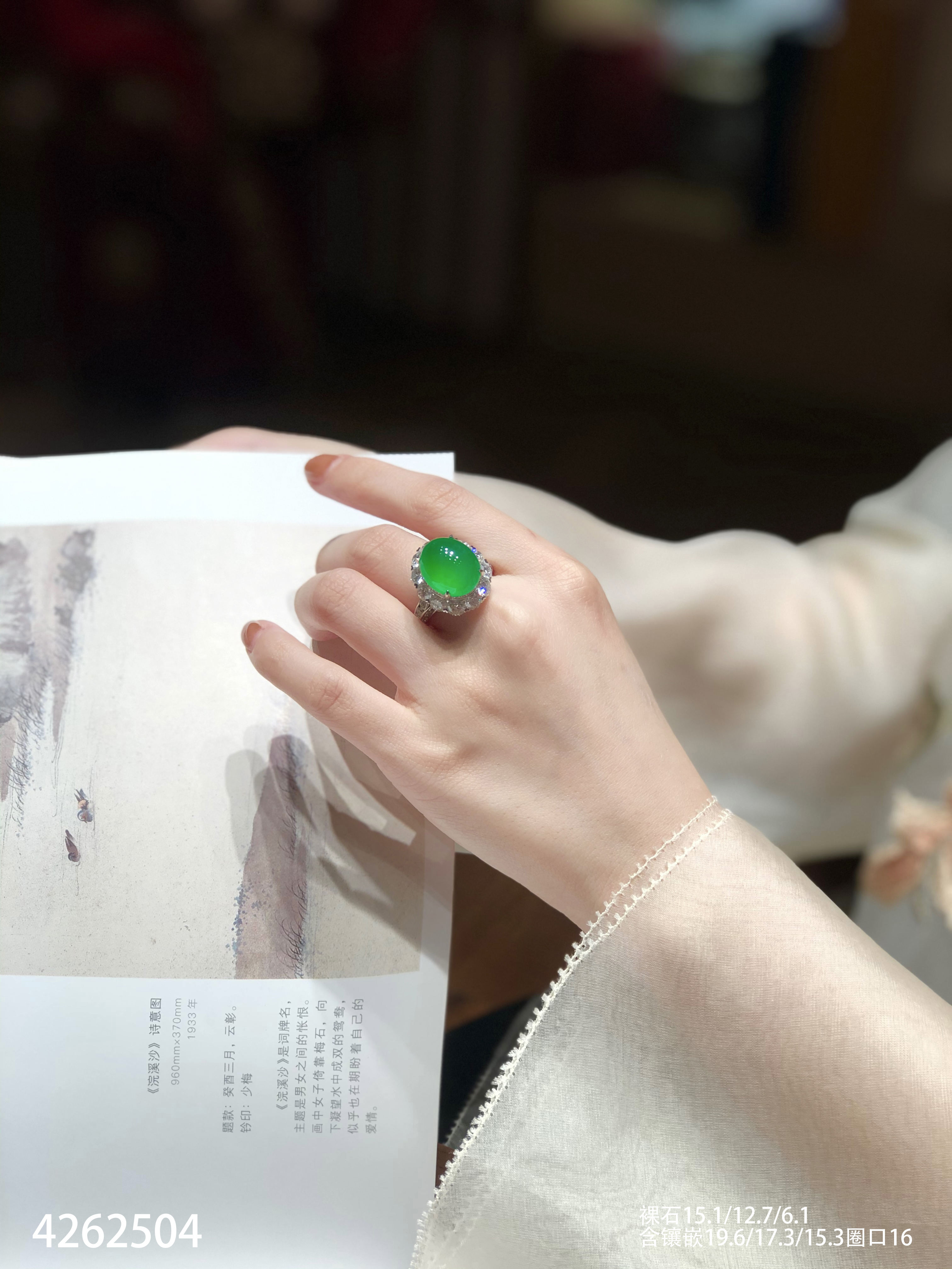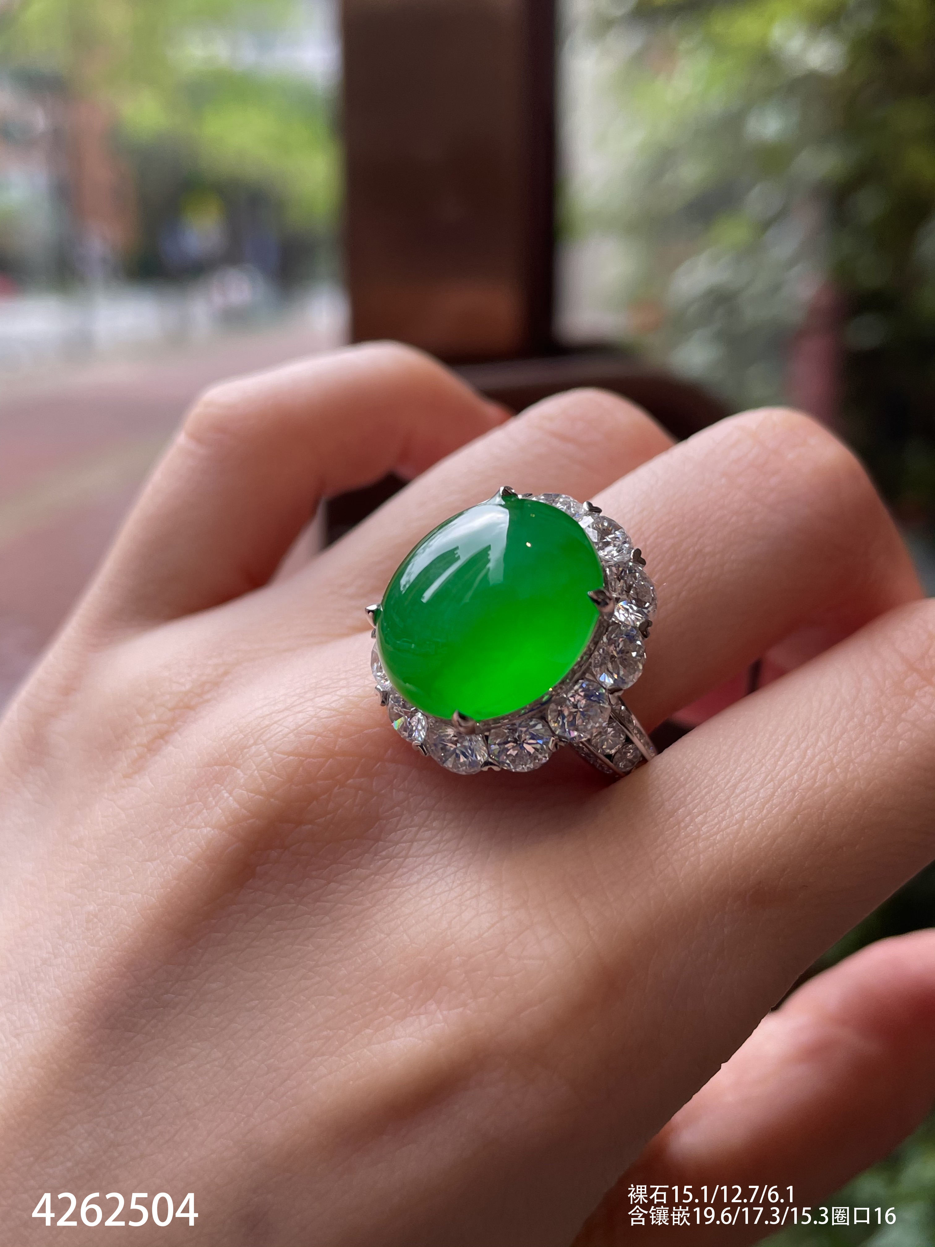 4262504,玻璃艳绿蛋面戒指,具体价格微信咨询