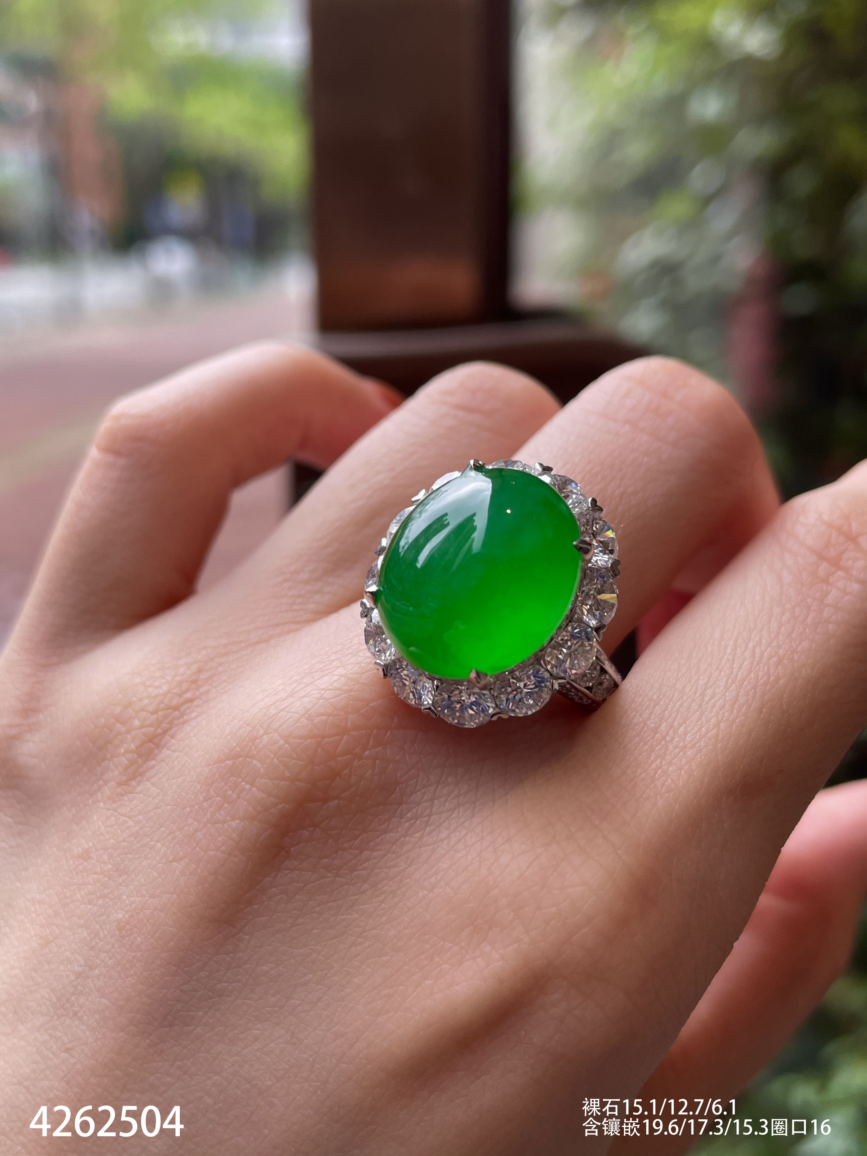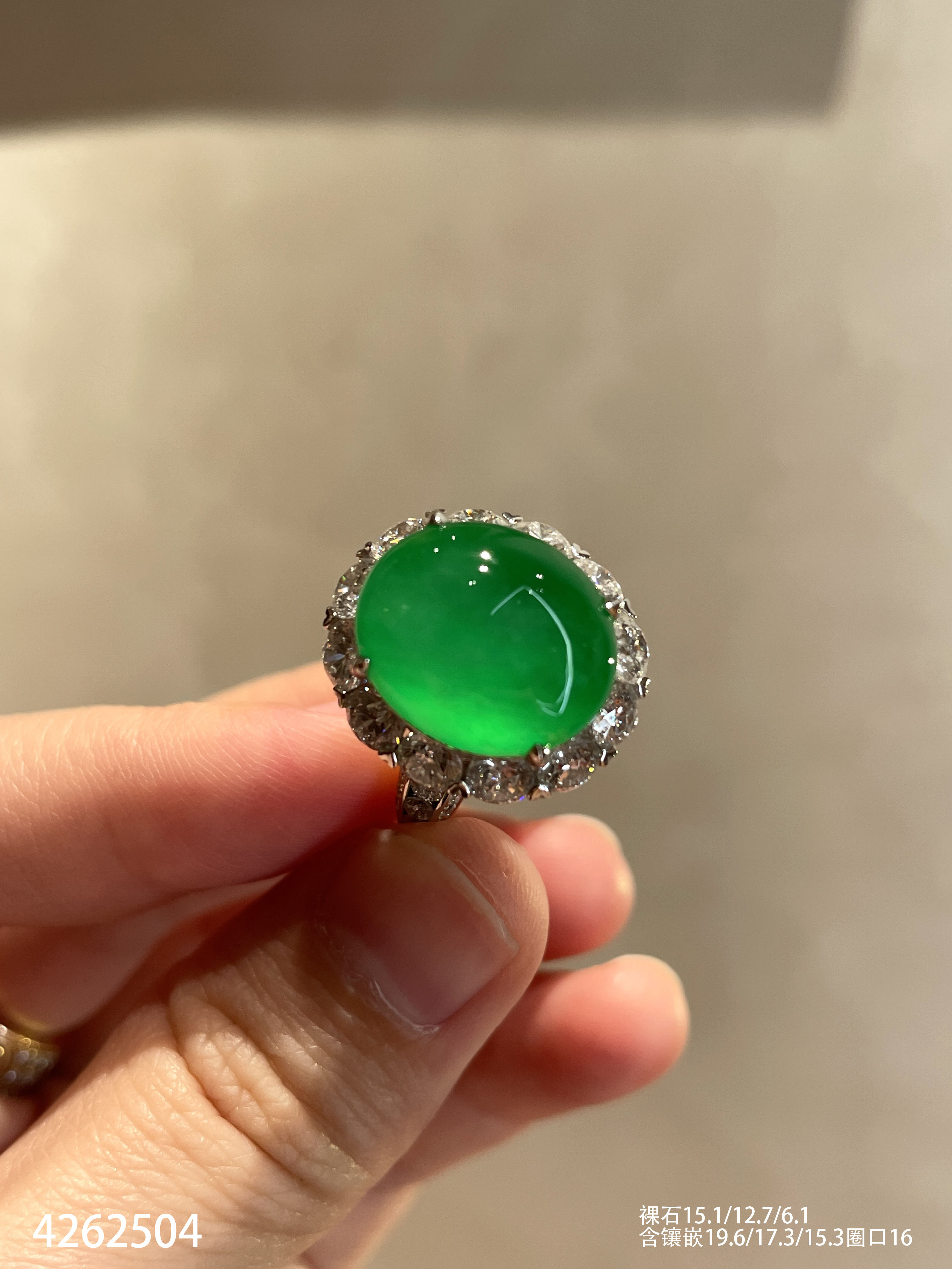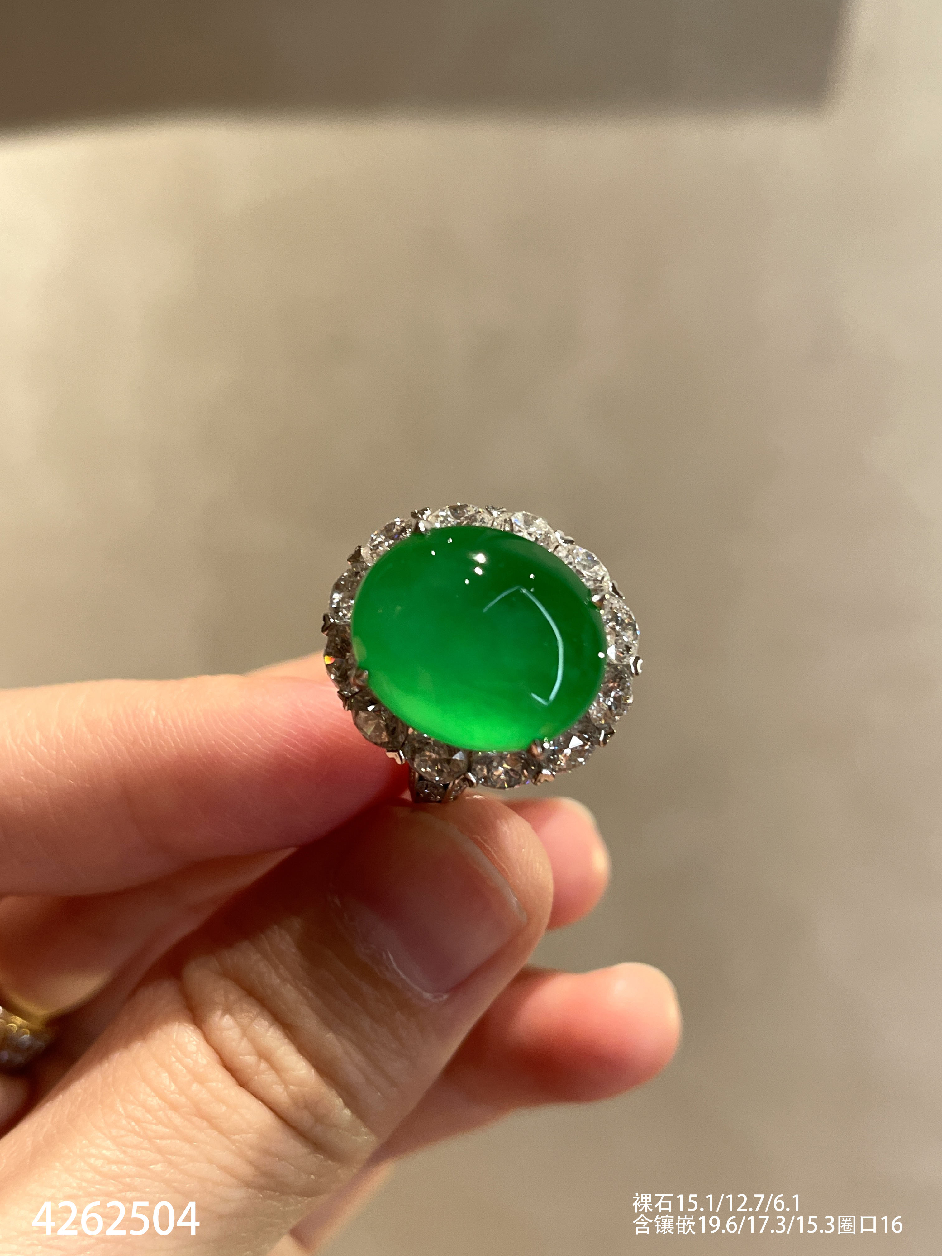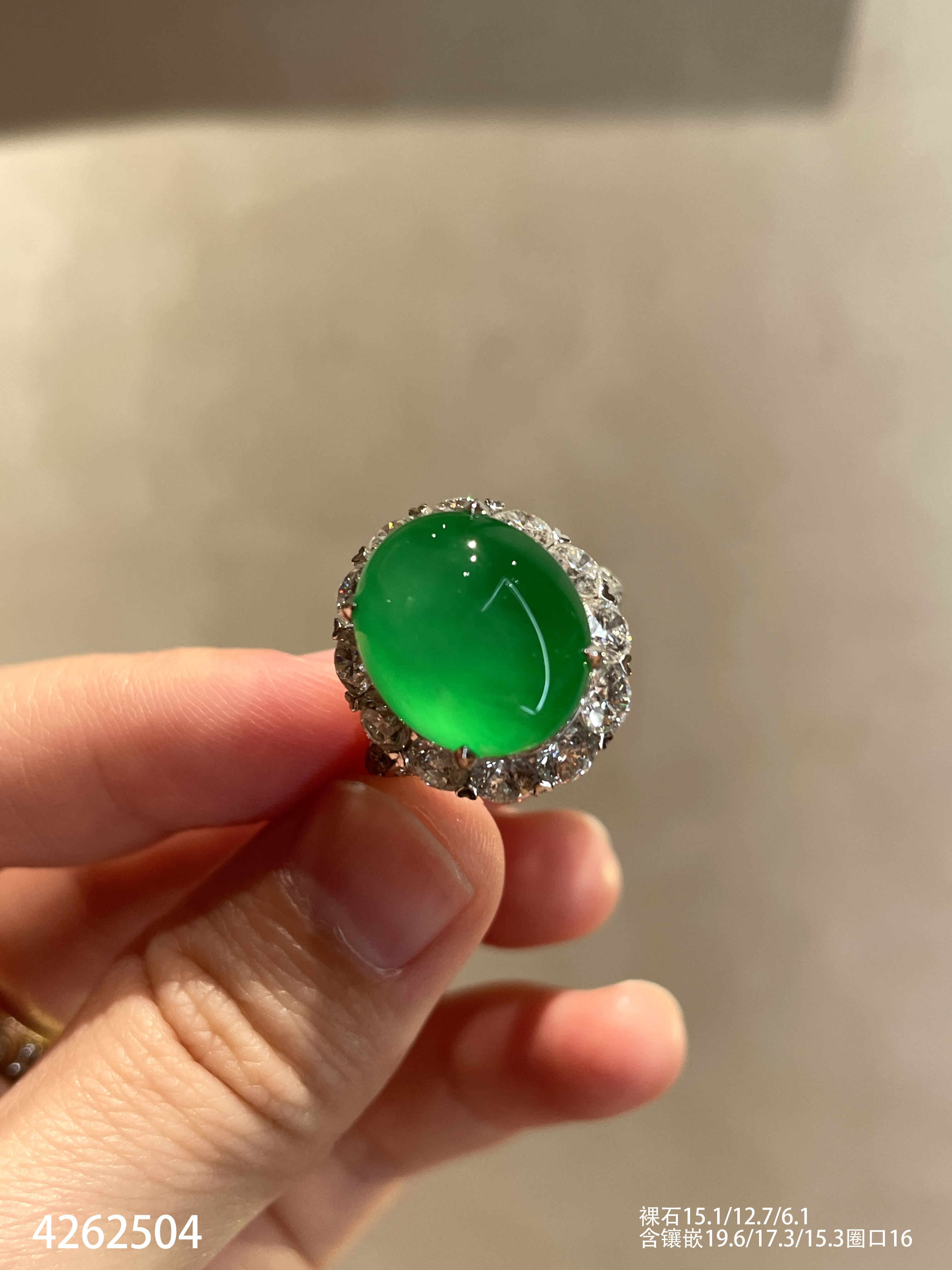 4262504,玻璃艳绿蛋面戒指,具体价格微信咨询