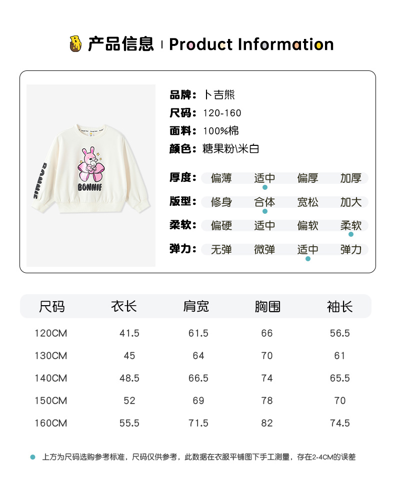 BOOGIEBEAR卜吉熊童装春秋圆领卫衣120-160 GF3208622