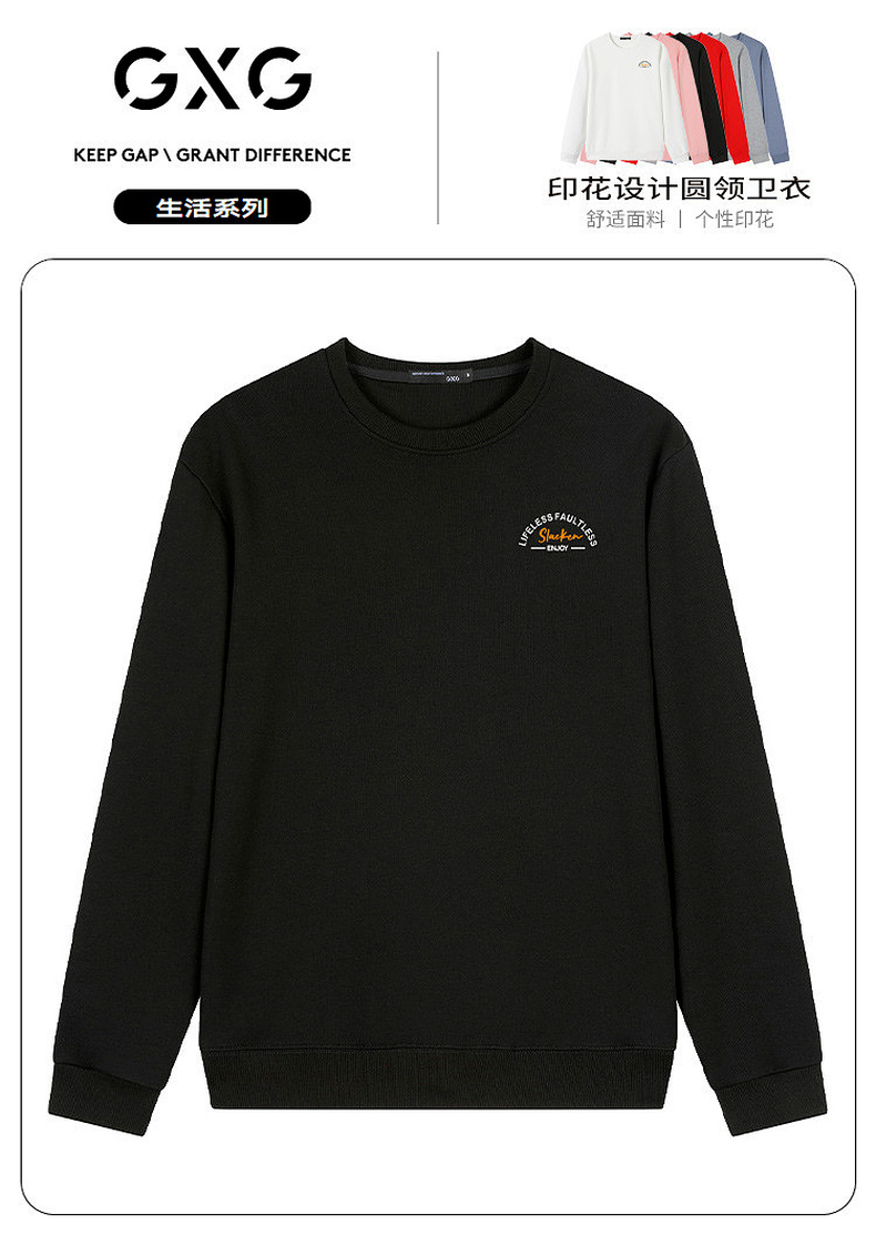 GXG男装25秋季时尚创意半弧字母印花百搭休闲男式圆领卫衣K&C