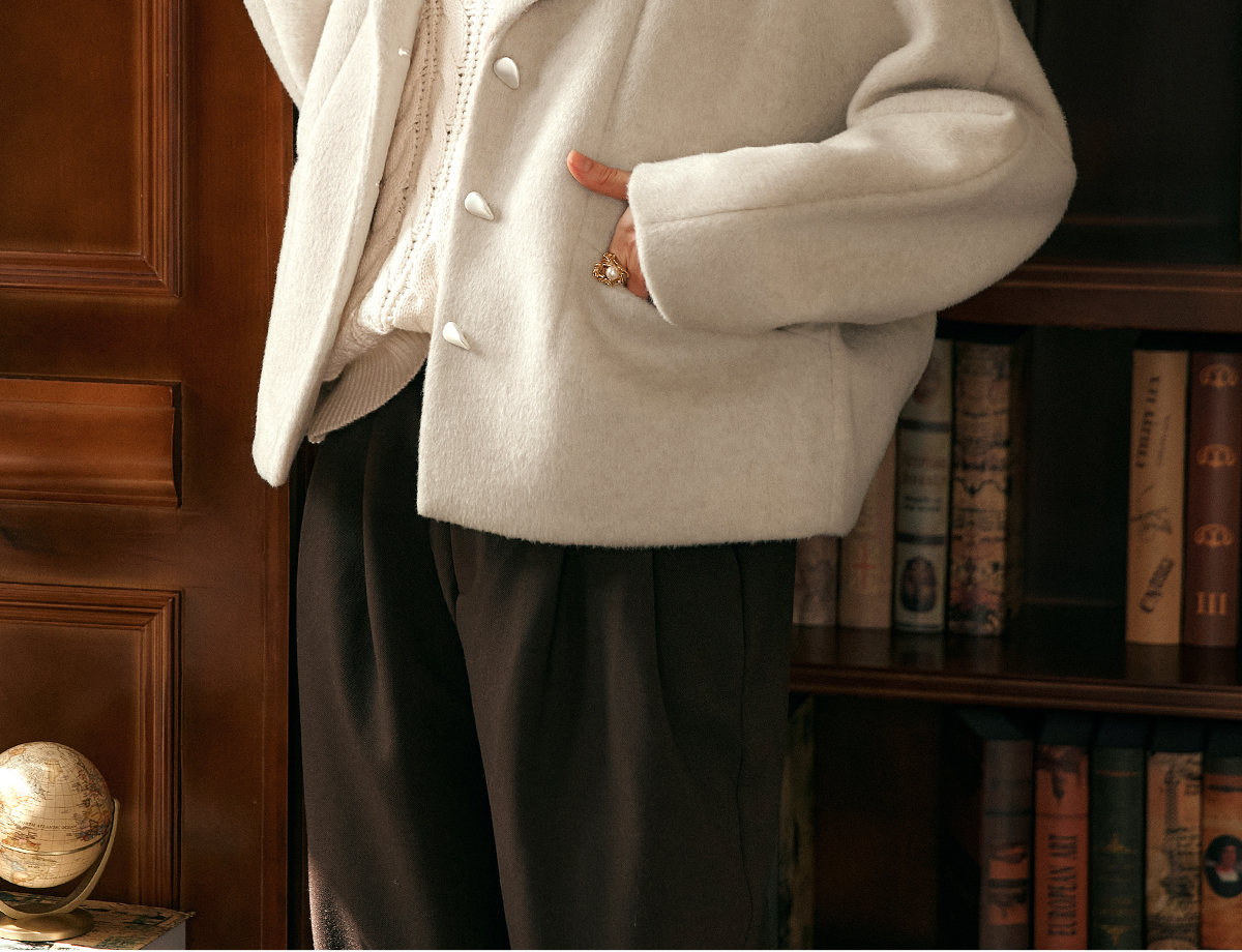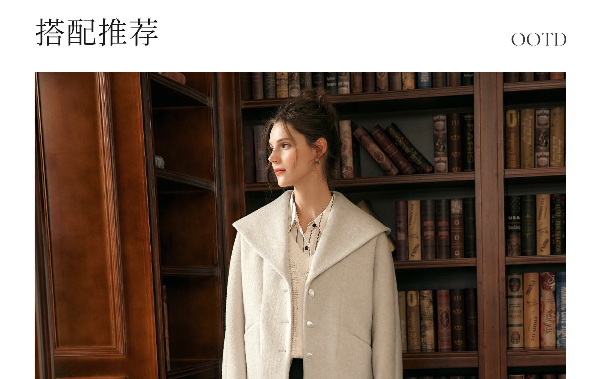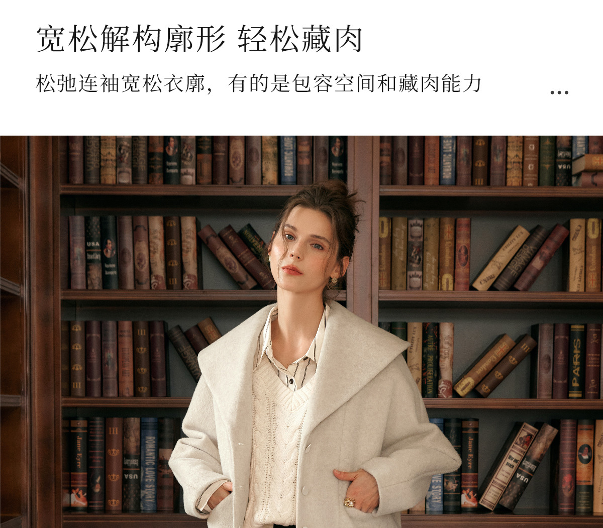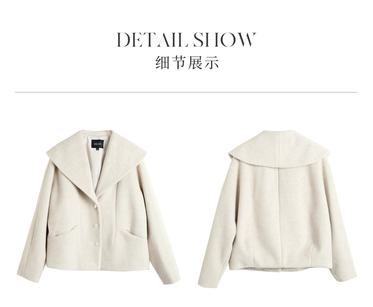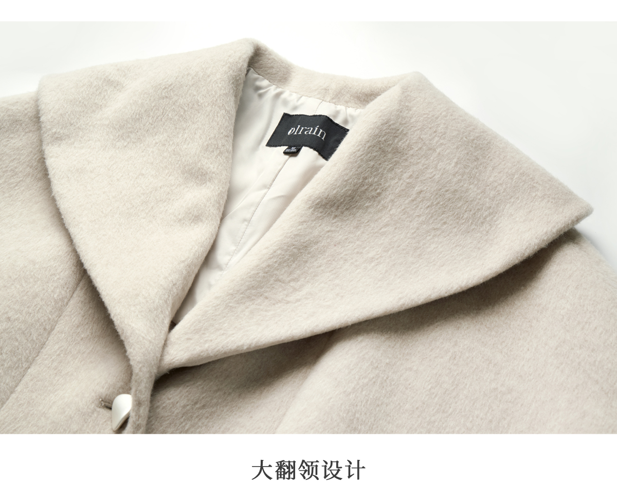 OLrain欧芮儿燕麦色毛呢外套女冬季2024年新款设计感百搭休闲上衣