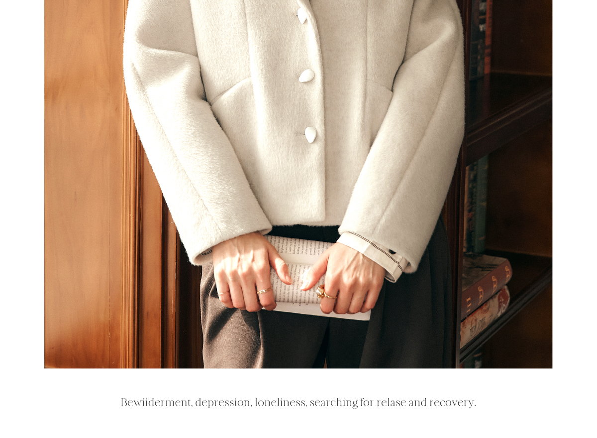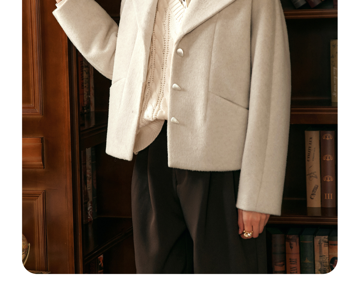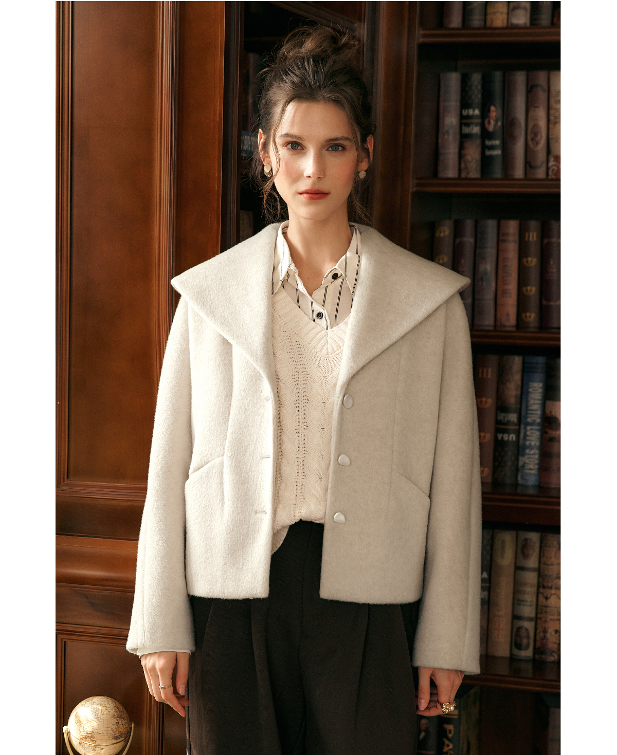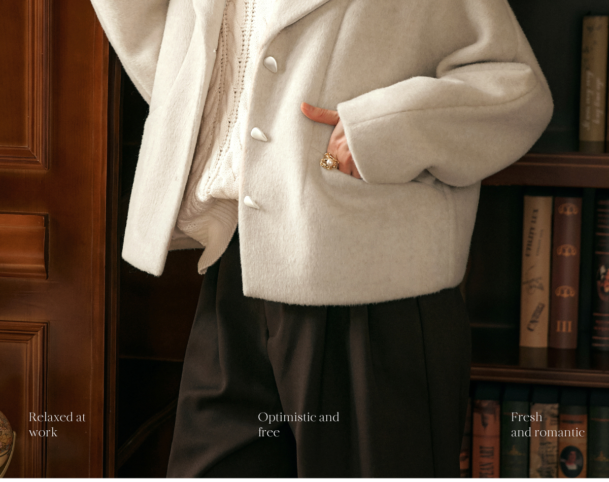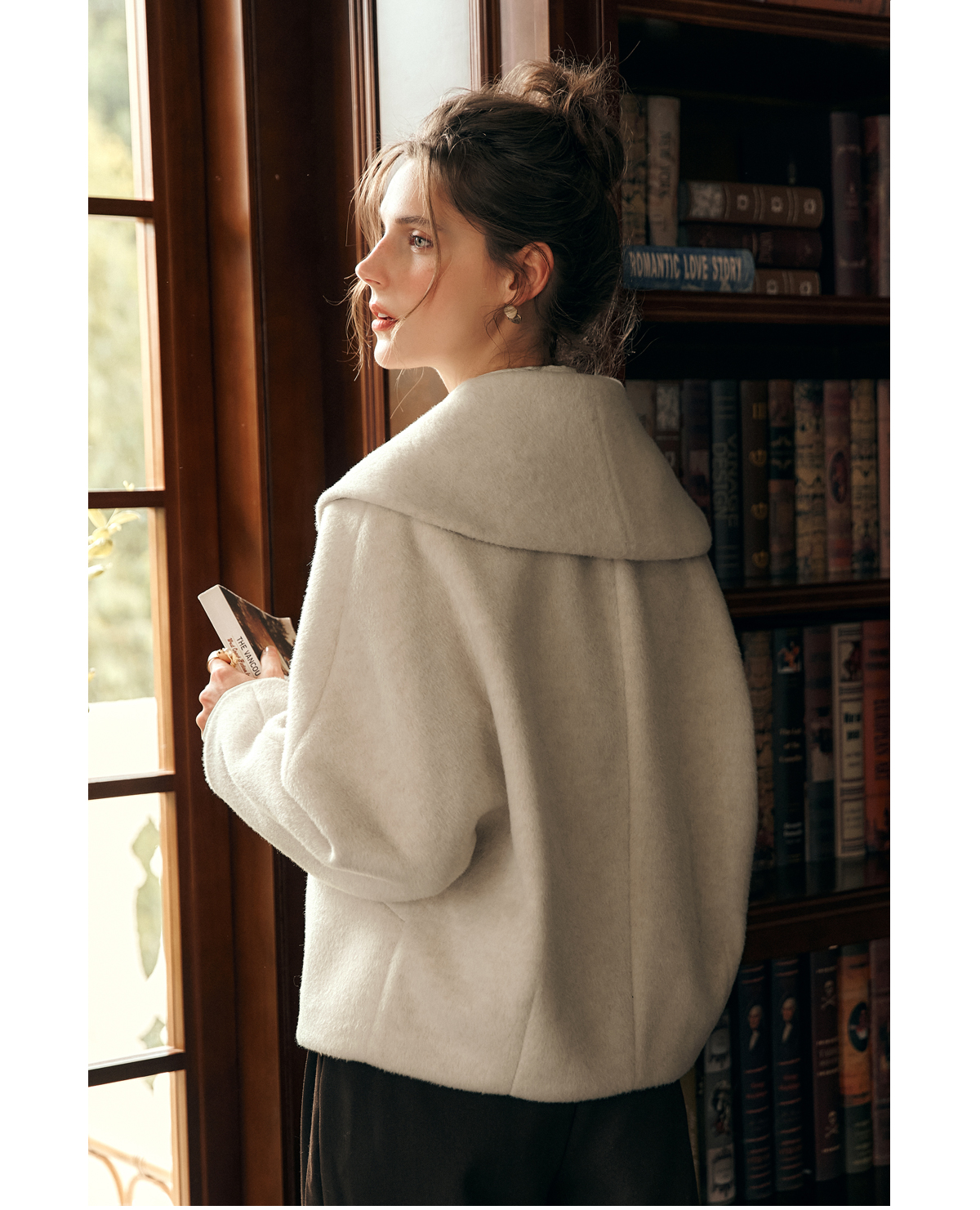 OLrain欧芮儿燕麦色毛呢外套女冬季2024年新款设计感百搭休闲上衣