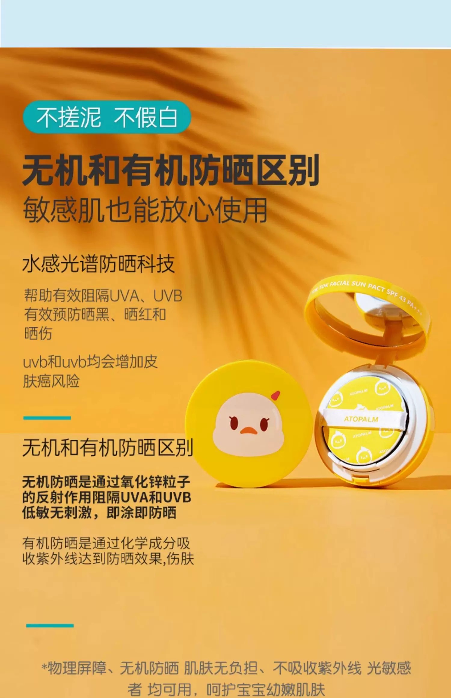 ATOPALM爱多康儿童防晒气垫物理防晒舒缓水润保湿防汗免卸妆15g
