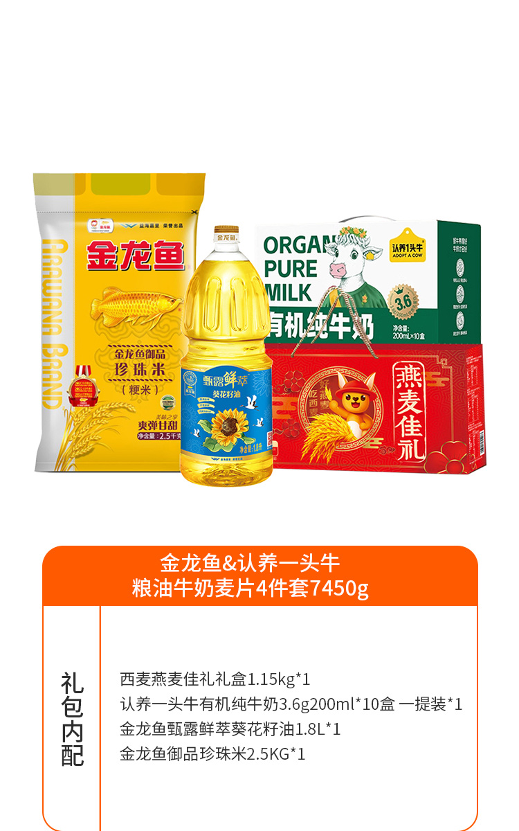 金龙鱼&认养一头牛粮油牛奶麦片4件套7450g