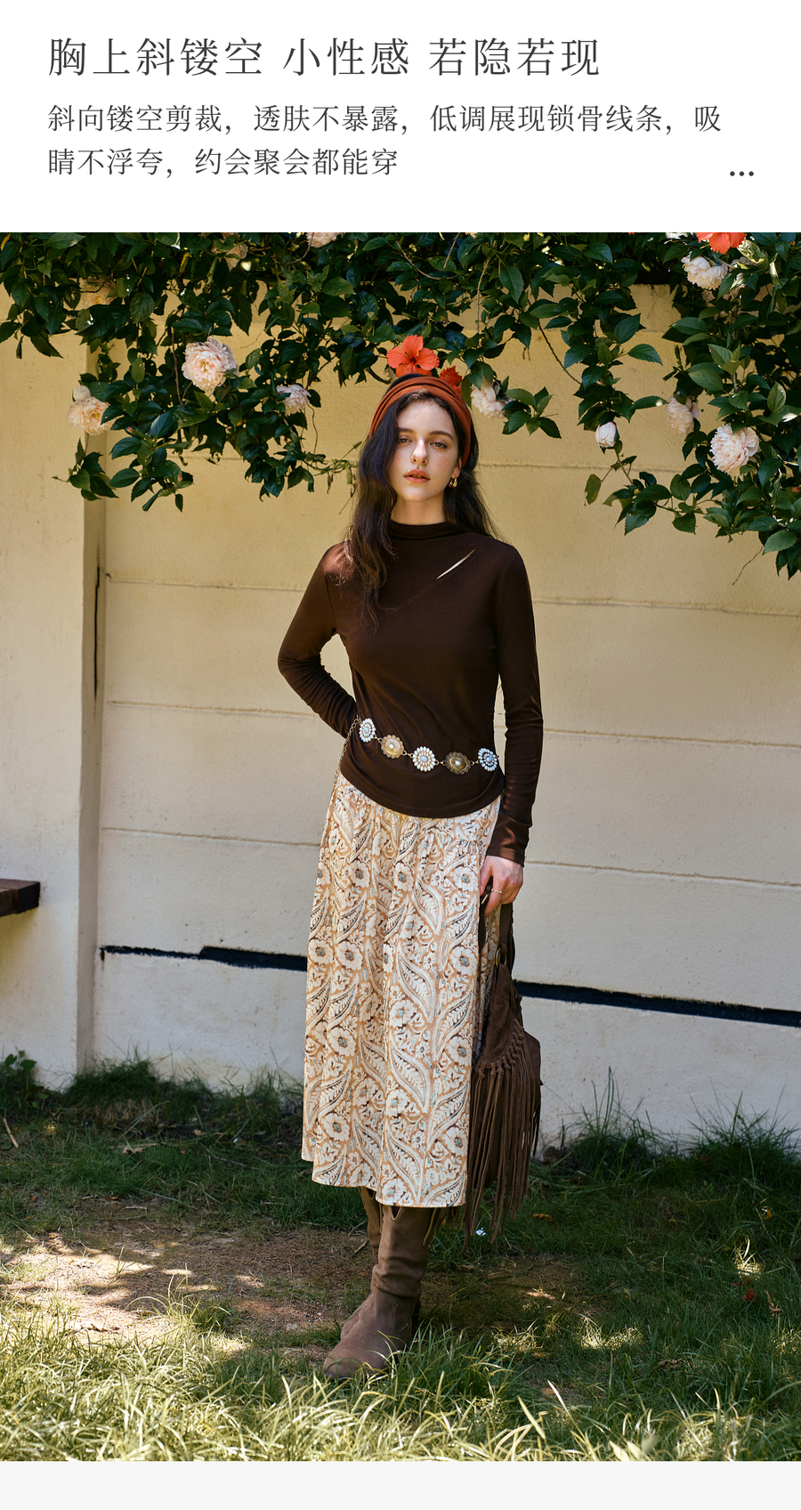 OLrain欧芮儿设计感镂空显瘦半高领针织打底衫女秋季2025新款上衣