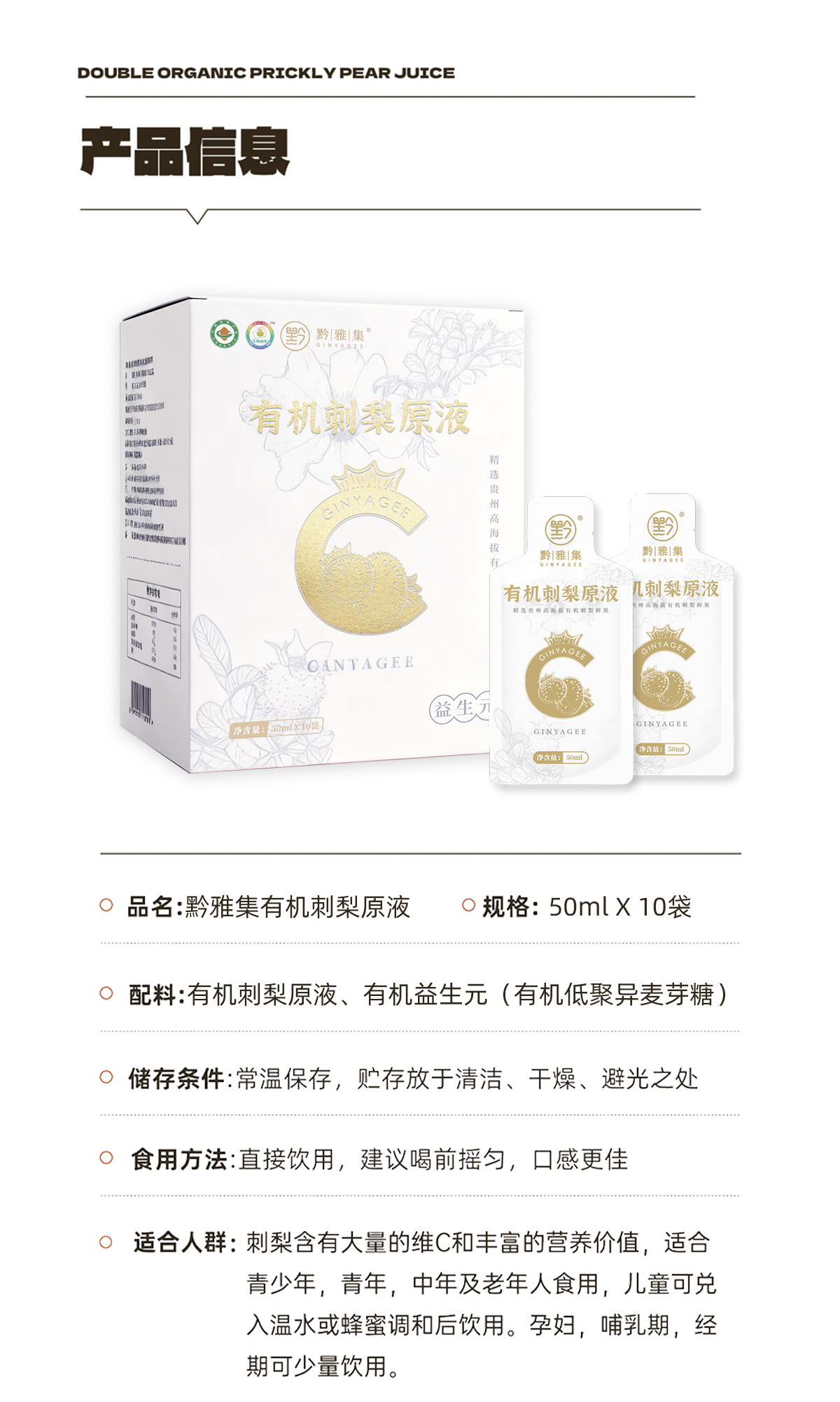 黔雅集有机刺梨原液(益生元)50ml*10袋/盒