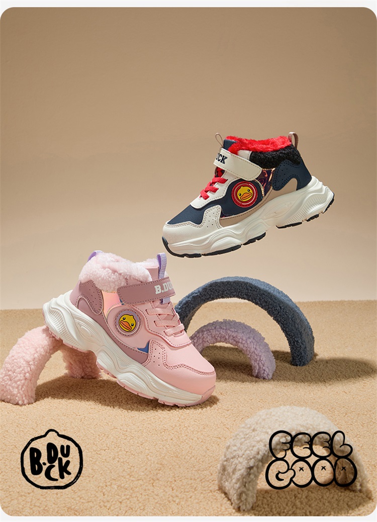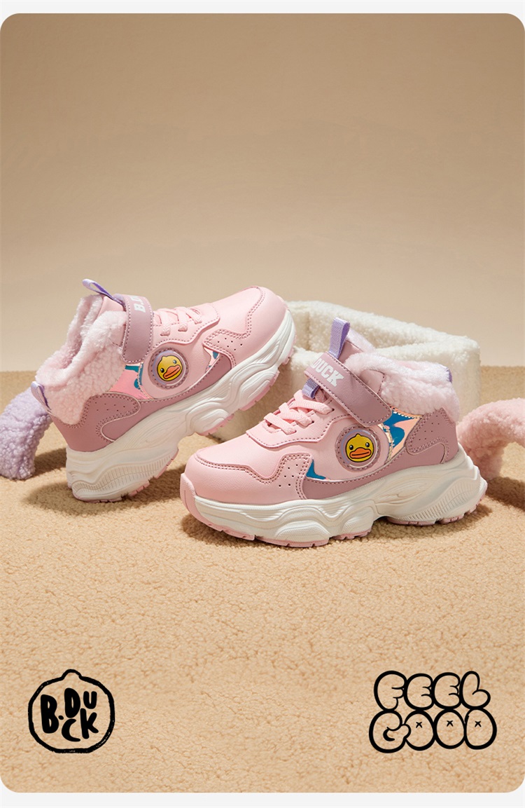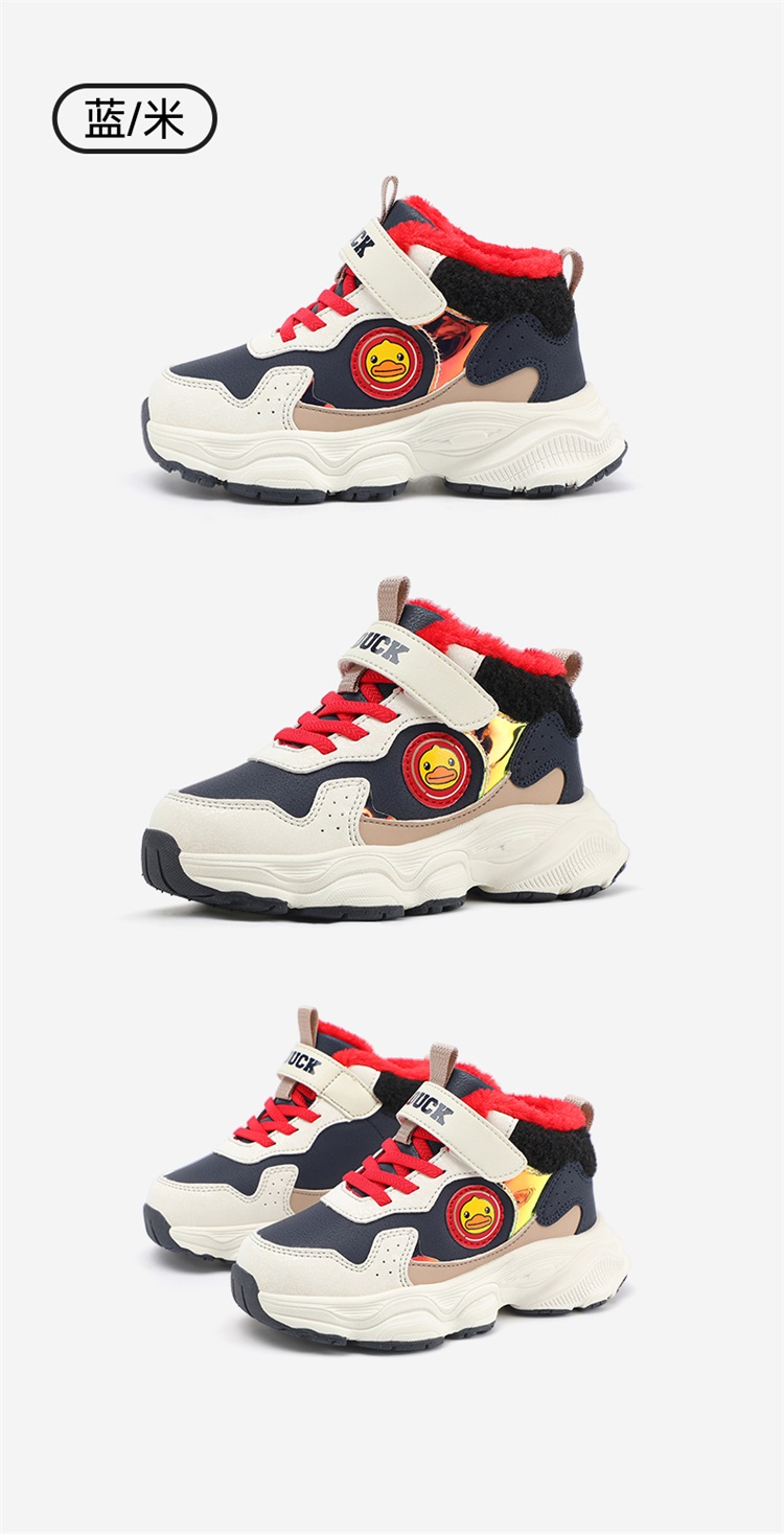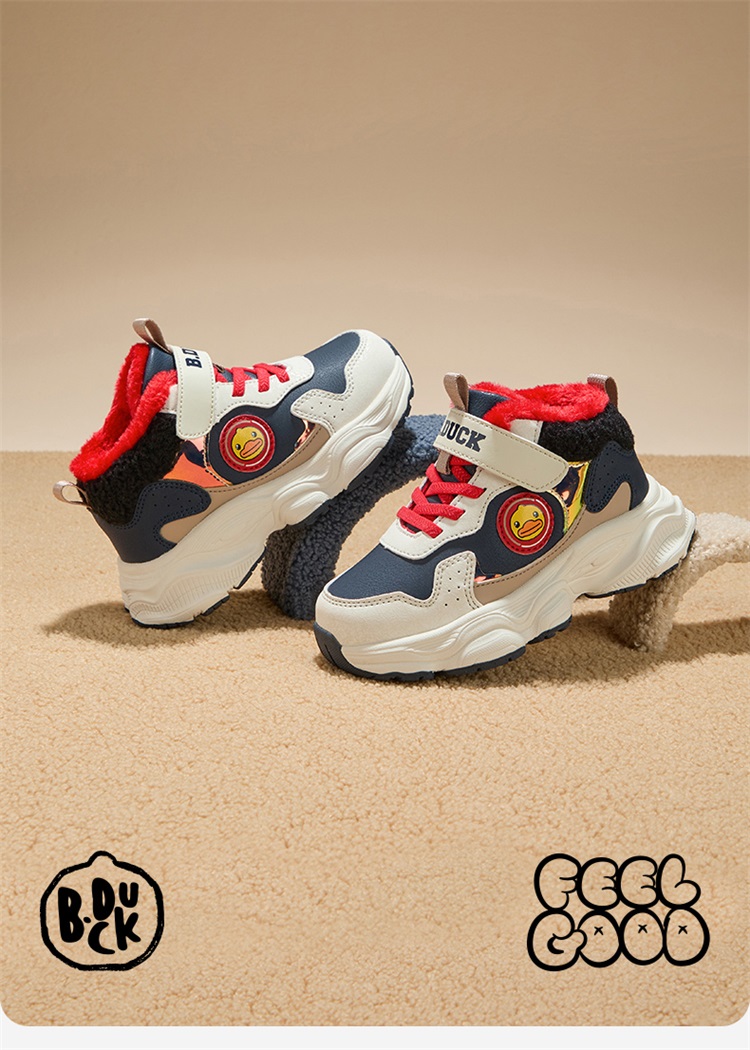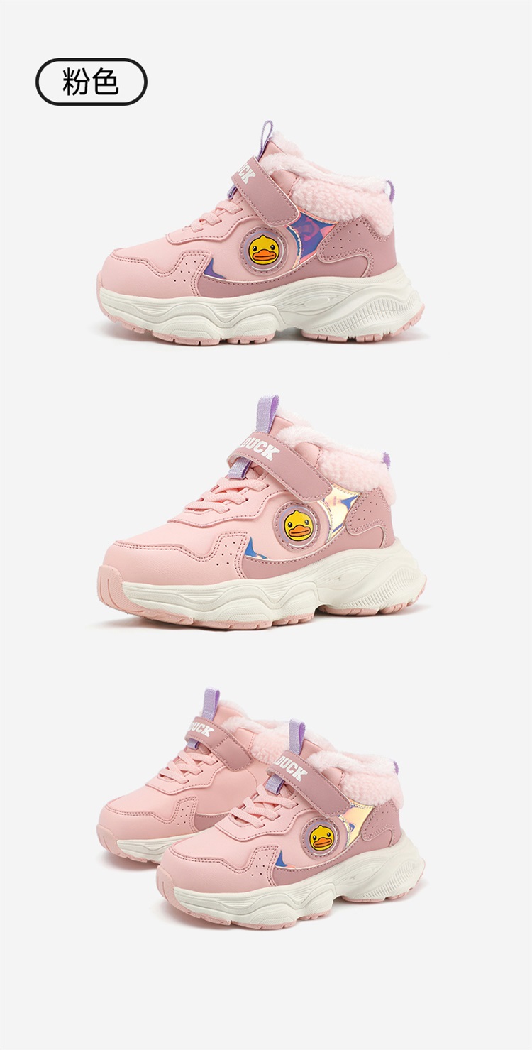 B.Duck小黄鸭童鞋冬季男女童魔术贴棉鞋加绒卡通运动鞋26-33 B5586985