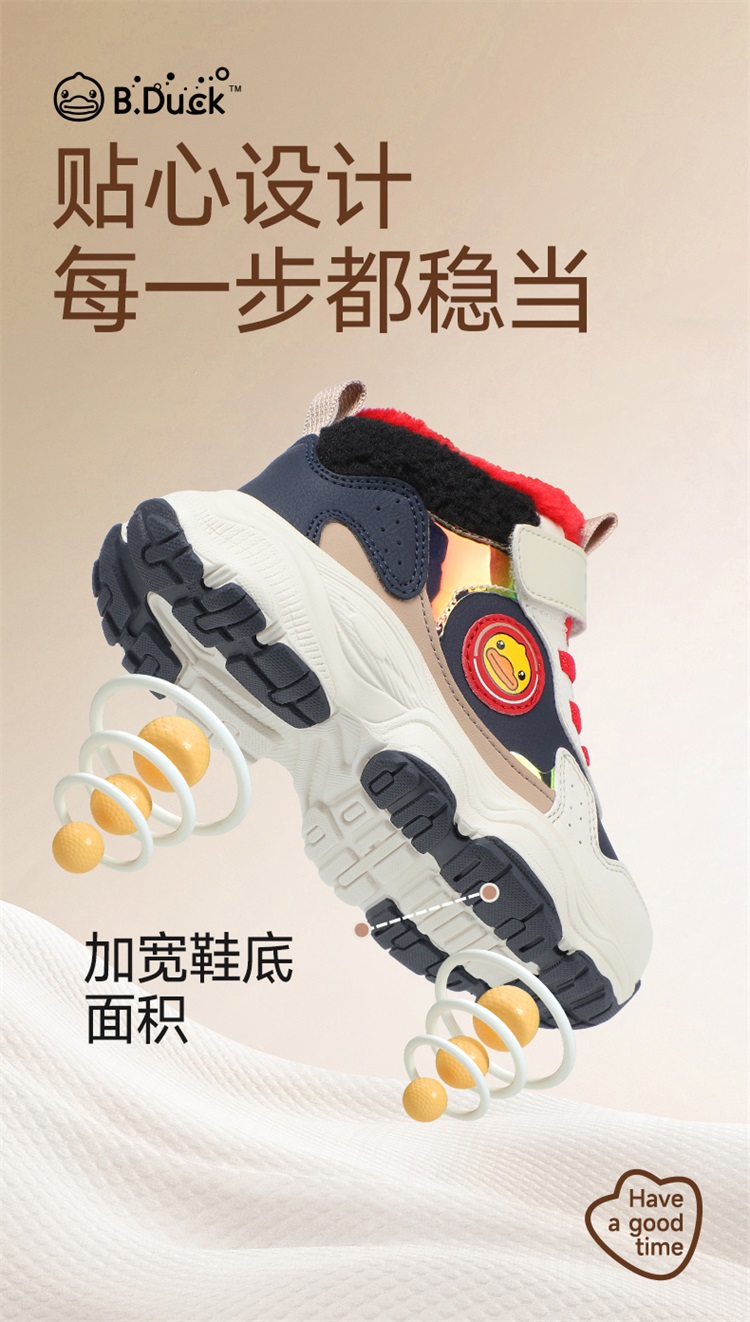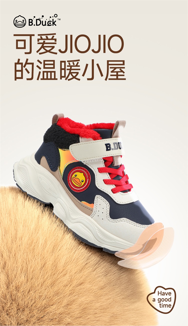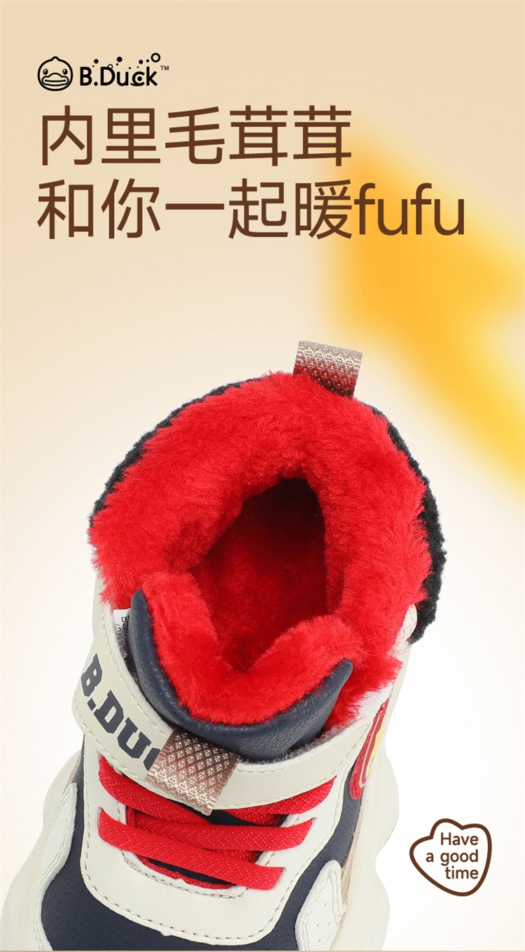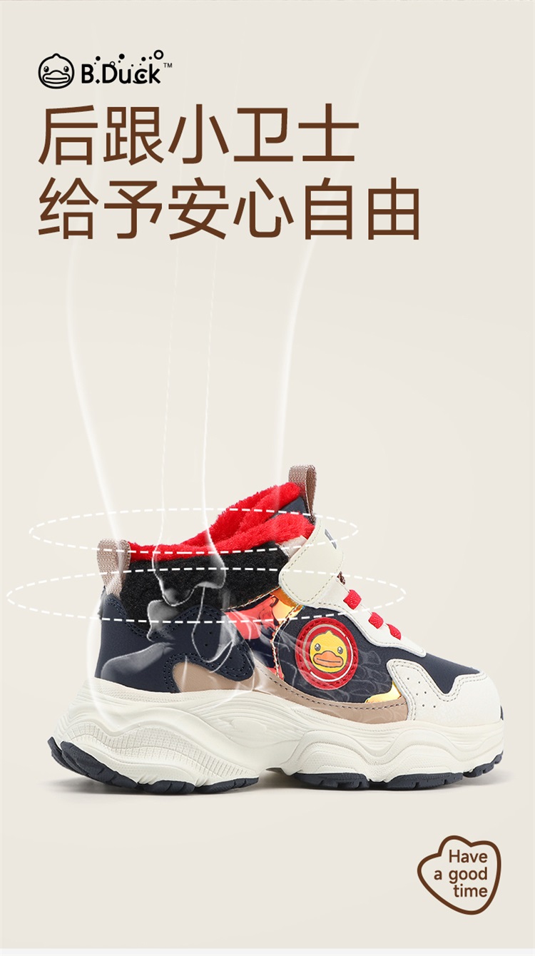 B.Duck小黄鸭童鞋冬季男女童魔术贴棉鞋加绒卡通运动鞋26-33 B5586985