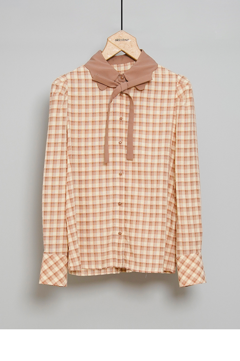 oldcolour春秋款格子衬衫气质百搭减龄长袖衬衫女DN13013006