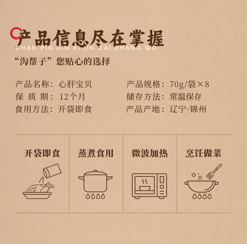 【沟帮子】沟帮子 熏心肝宝贝70g*8 [真空]包装 开袋即食 休闲小零食