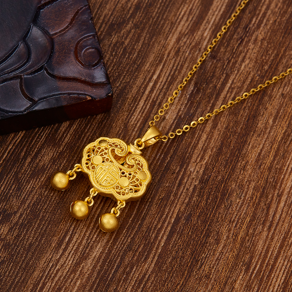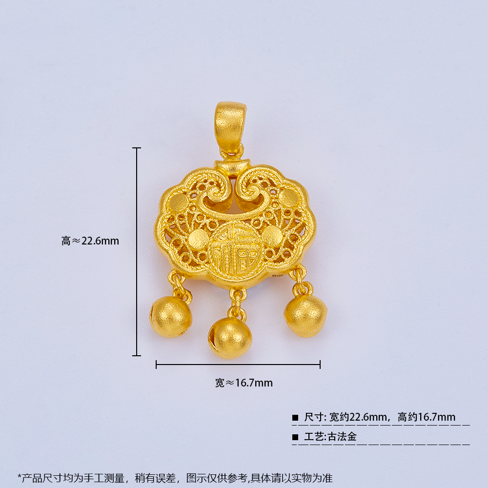 【限时克减150元元】足金999 #儿童/宝宝 古法镂空花丝双面福字锁铃铛如意福字锁包吊坠网红锁包(不含链)(YGFDZ00247-1)(预售产品下单后不退款不退货不换货不补差价)