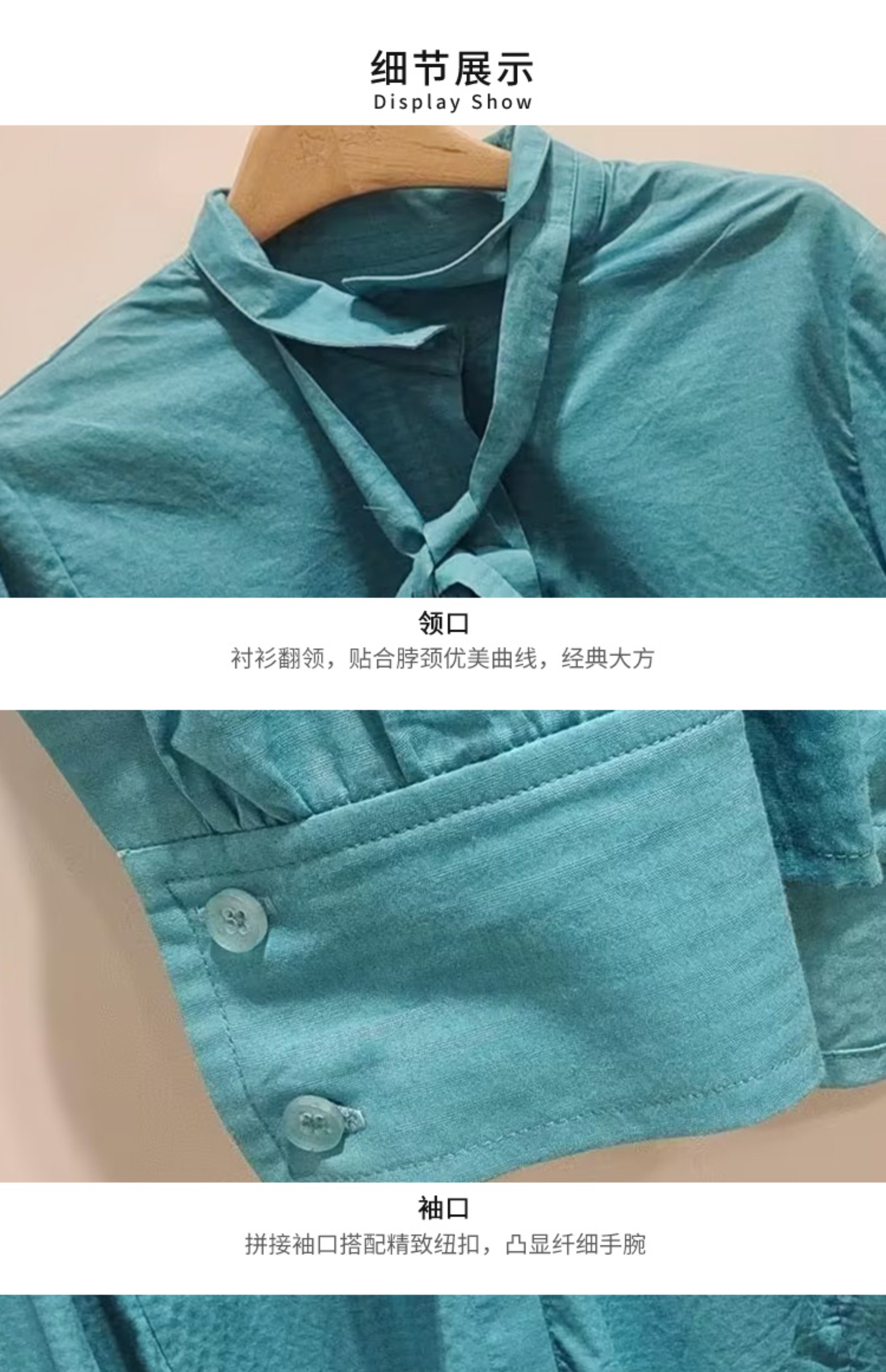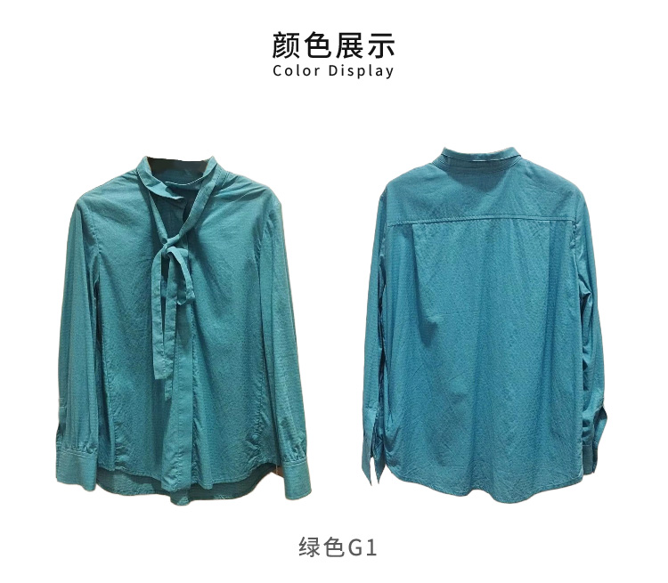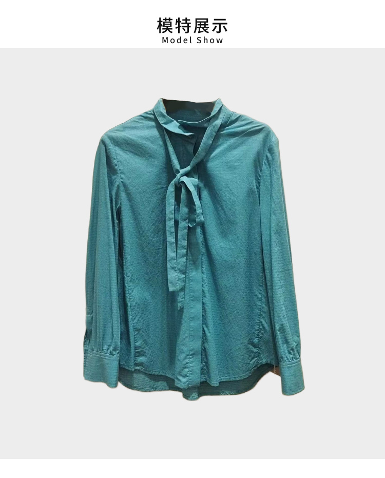 VIVIAN LIU R2443005初秋女装新款小翻领系带不规则下摆长袖衬衫