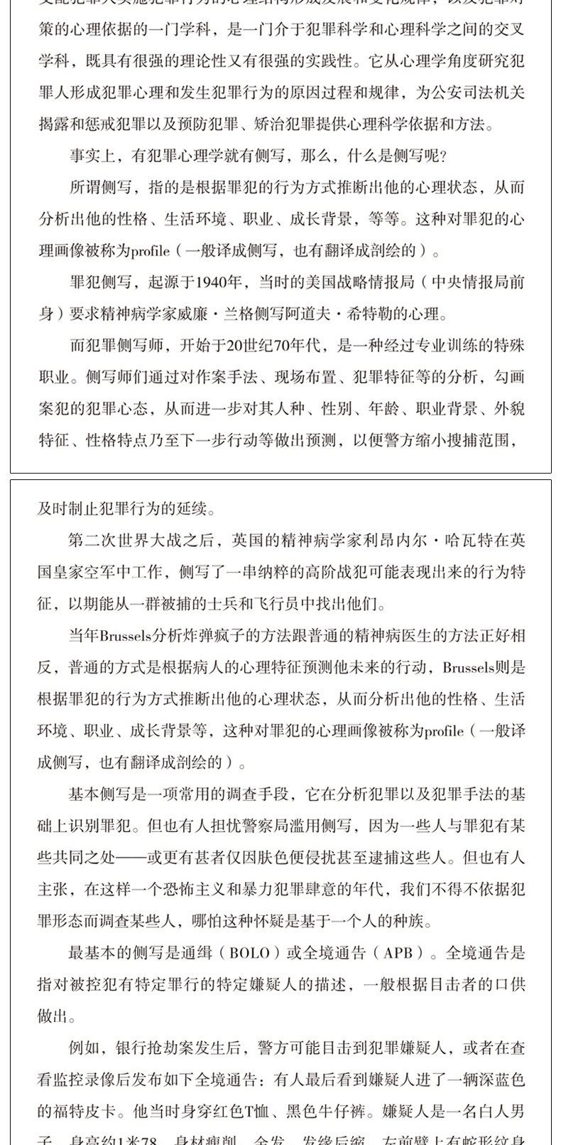 《侧写师:用犯罪心理学破解密码》列举了大量的实例,并从借鉴犯罪心理学的角度给予了深度的剖析,内容涉及、职场、婚恋关系等多方面,由表及里、层层深入,引导读者朋友们学会洞察他人的心理,进而轻松掌握人际关系中的主动权,做人际博弈的大赢家。