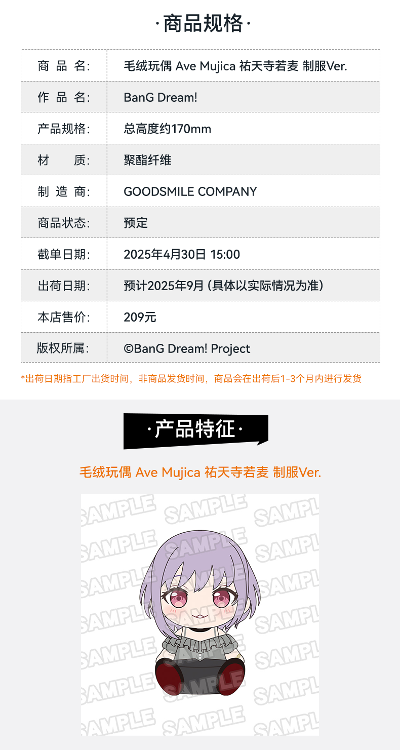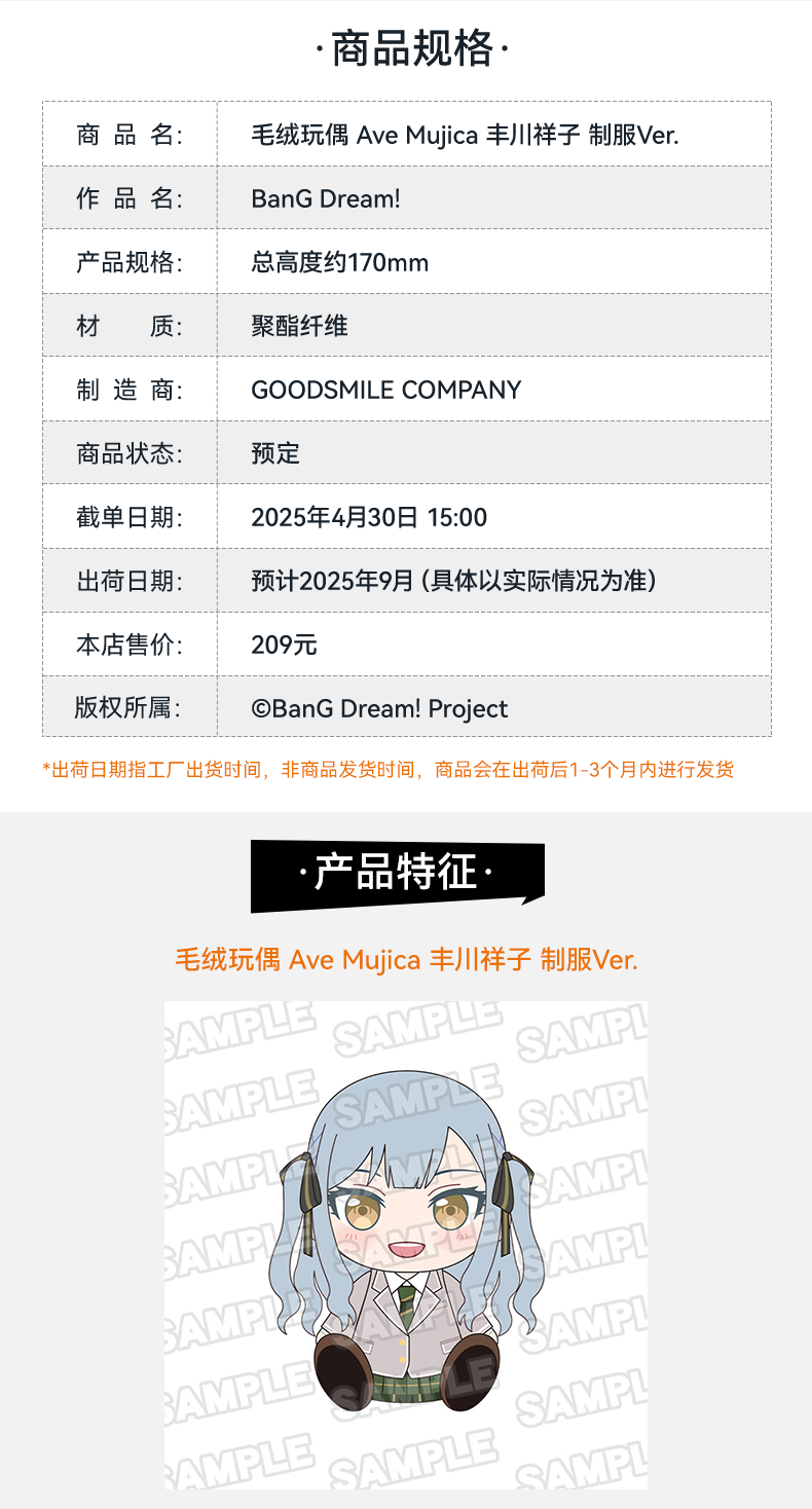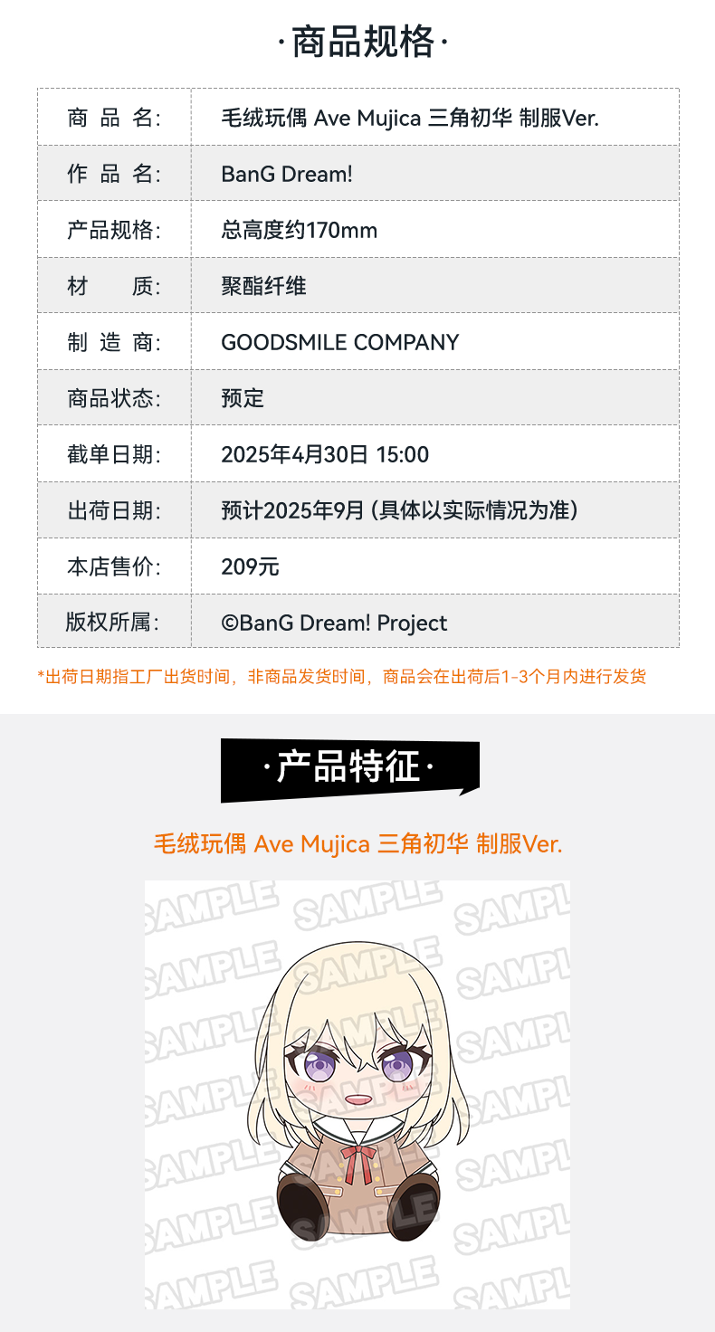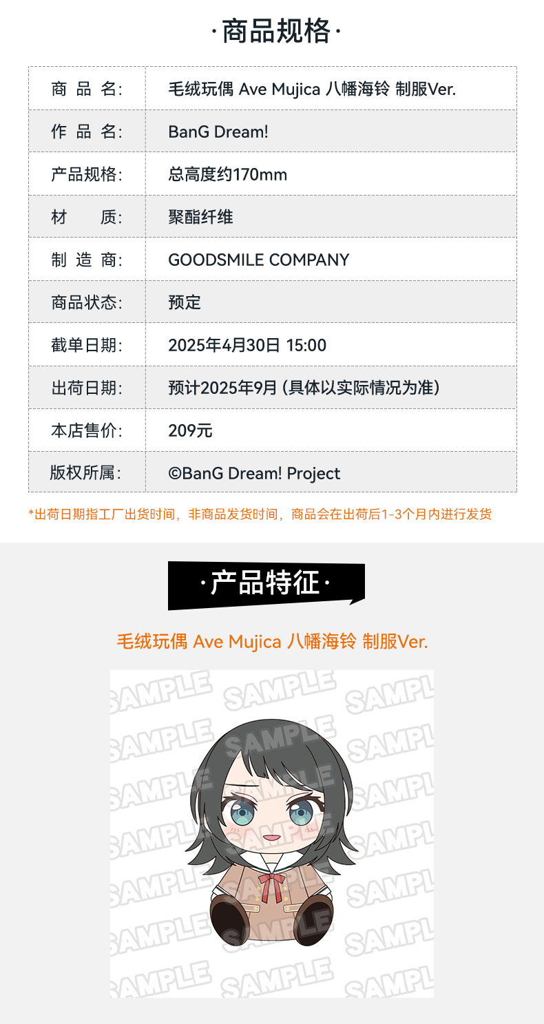 【GSC现货】毛绒玩偶 Ave Mujica 三角初华/若叶睦/八幡海铃/祐天寺若麦/丰川祥子 制服Ver.