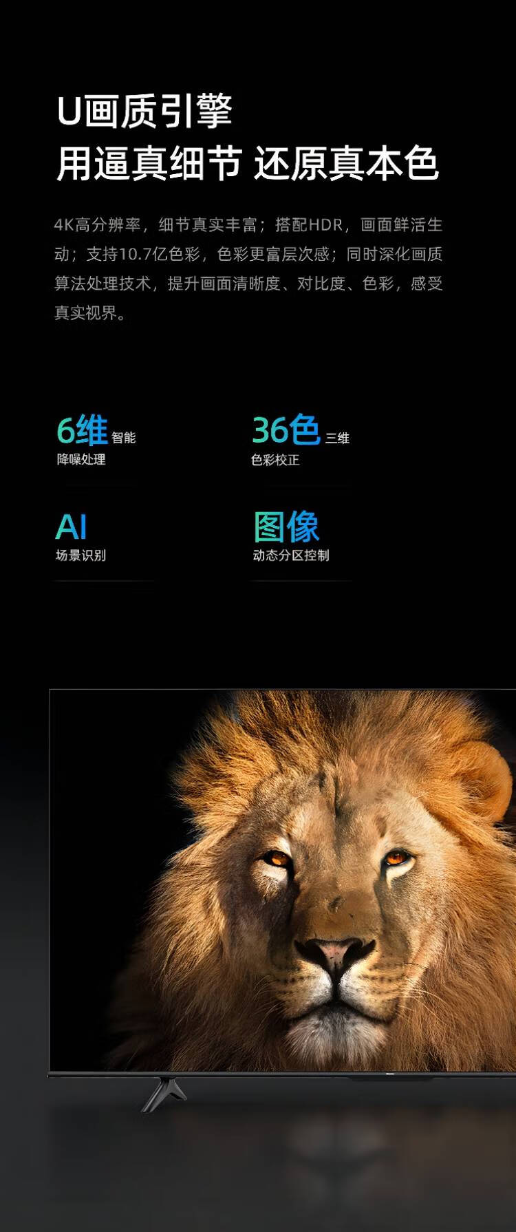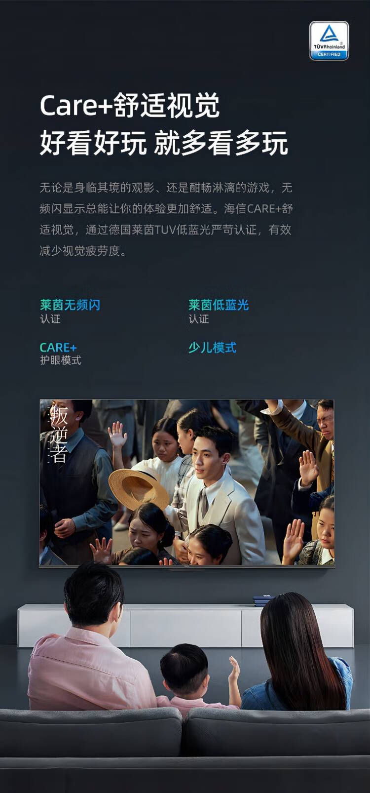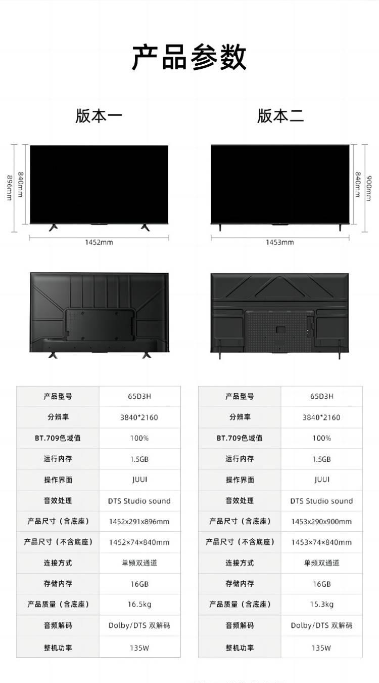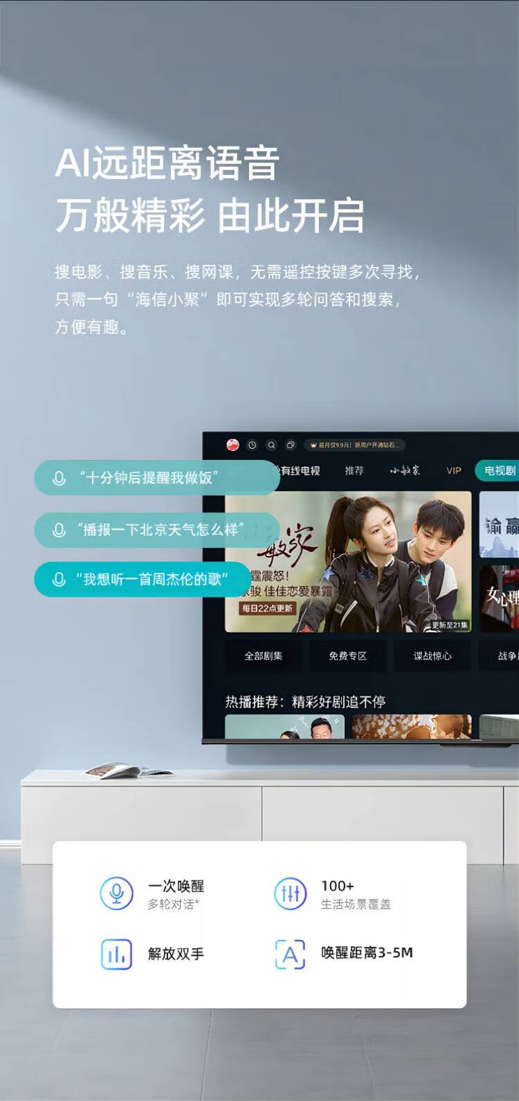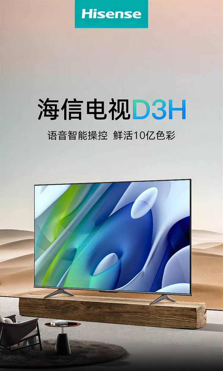 海信电视 65D3H 天狼星系列 65英寸 超薄全面屏 AI远场语音 无频闪低蓝光 DTS音效