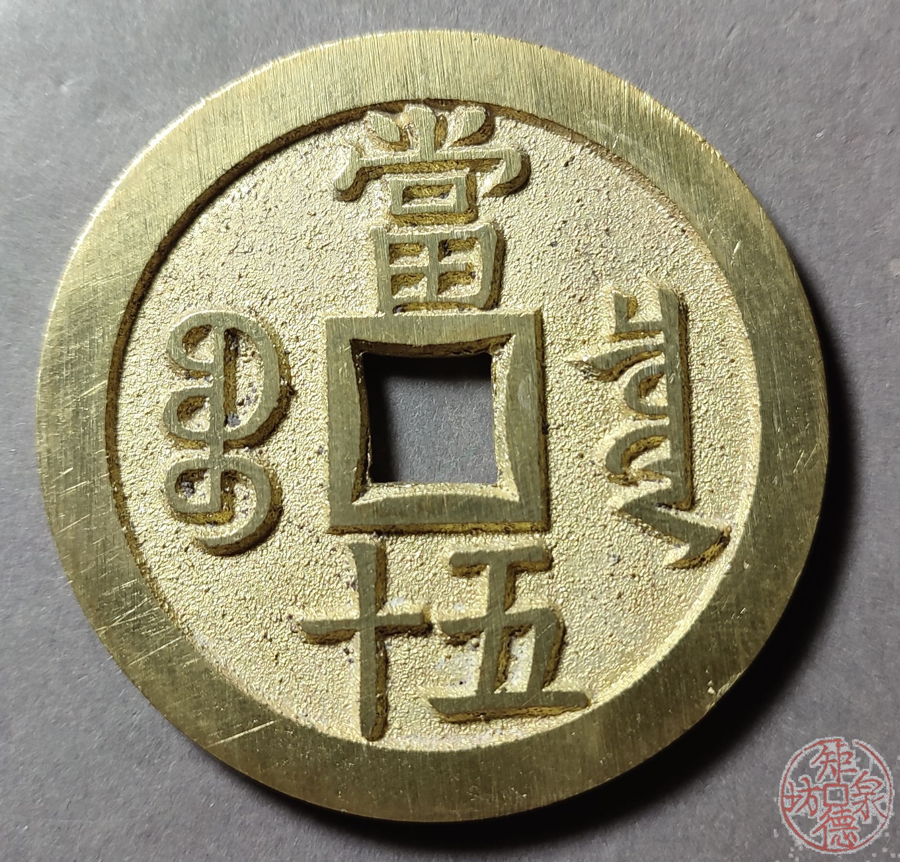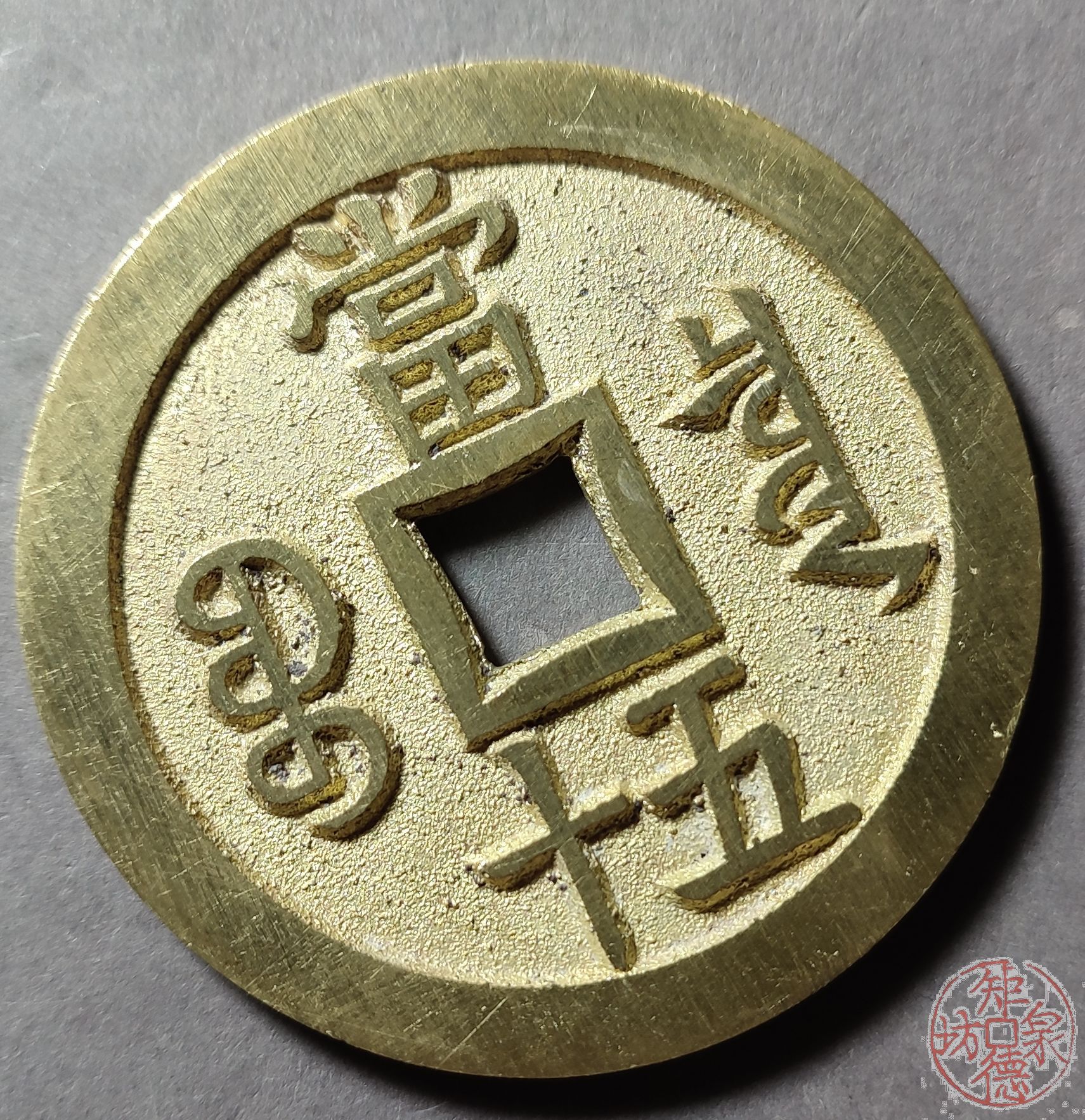 为了尽量还原古代钱币的文字神韵与时代铸造特征,每一枚都进行手工修刀、打磨。会有打磨痕迹、刻刀痕迹,铸造气孔或者微小沙眼,这正是手工与机器制作的区别,并非瑕疵。