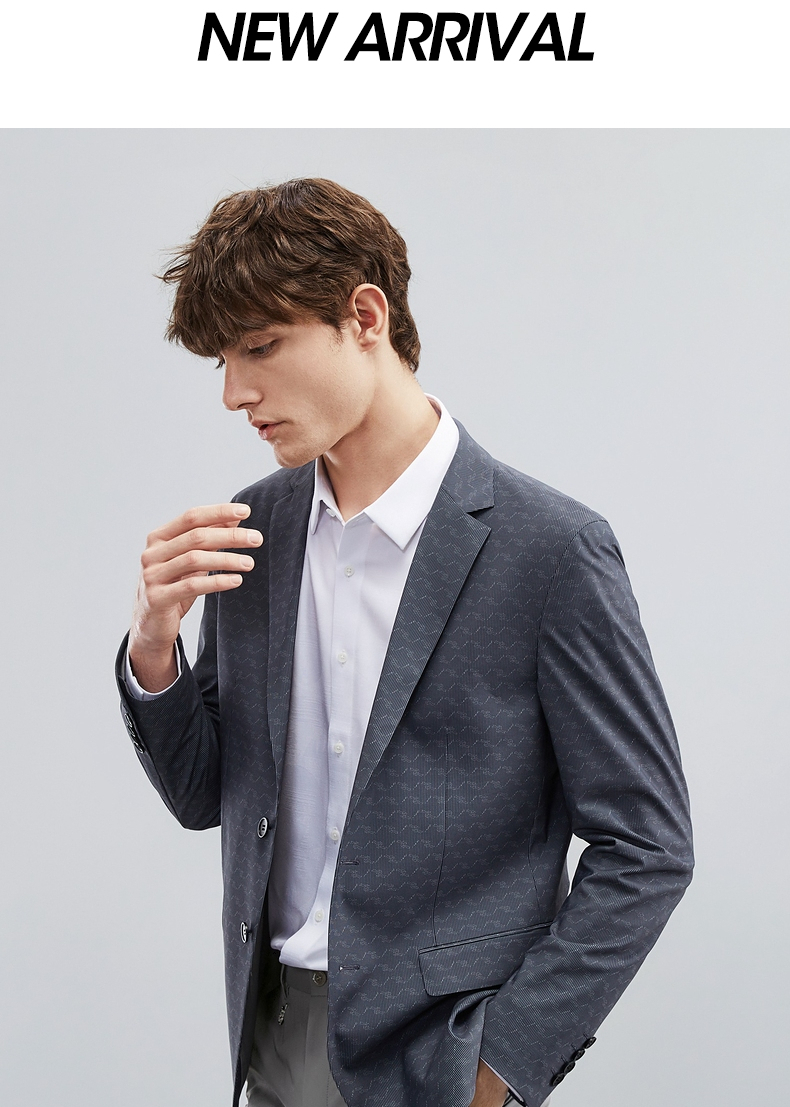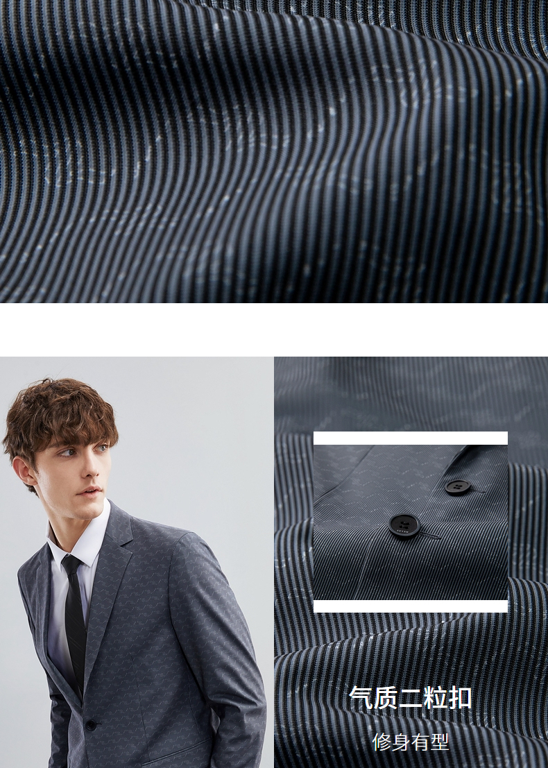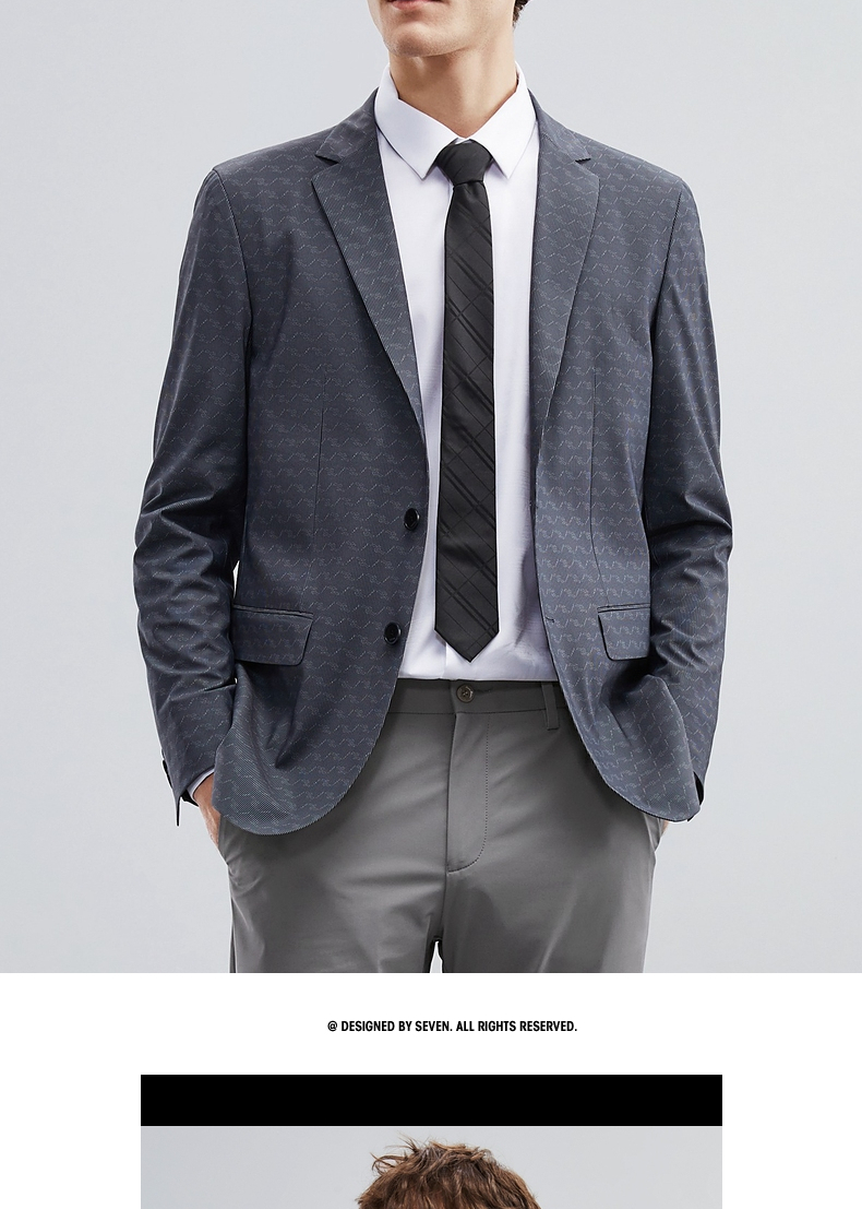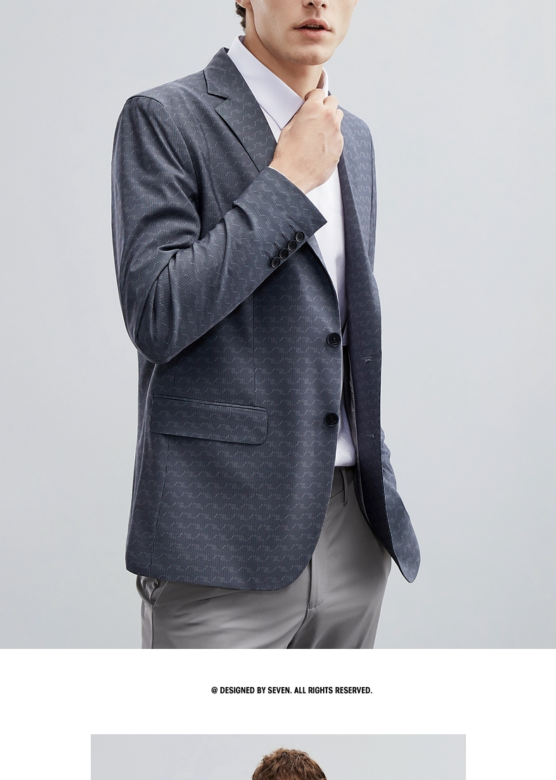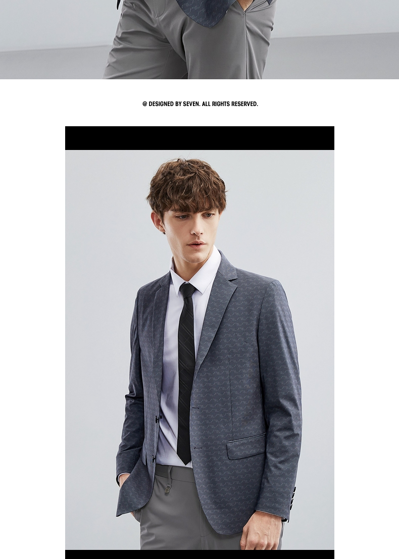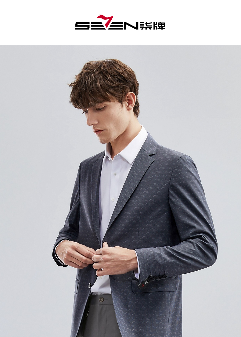 【特价】柒牌男装单西外套春季新款时尚潮流印花中青年平驳领针织西装 124C70320