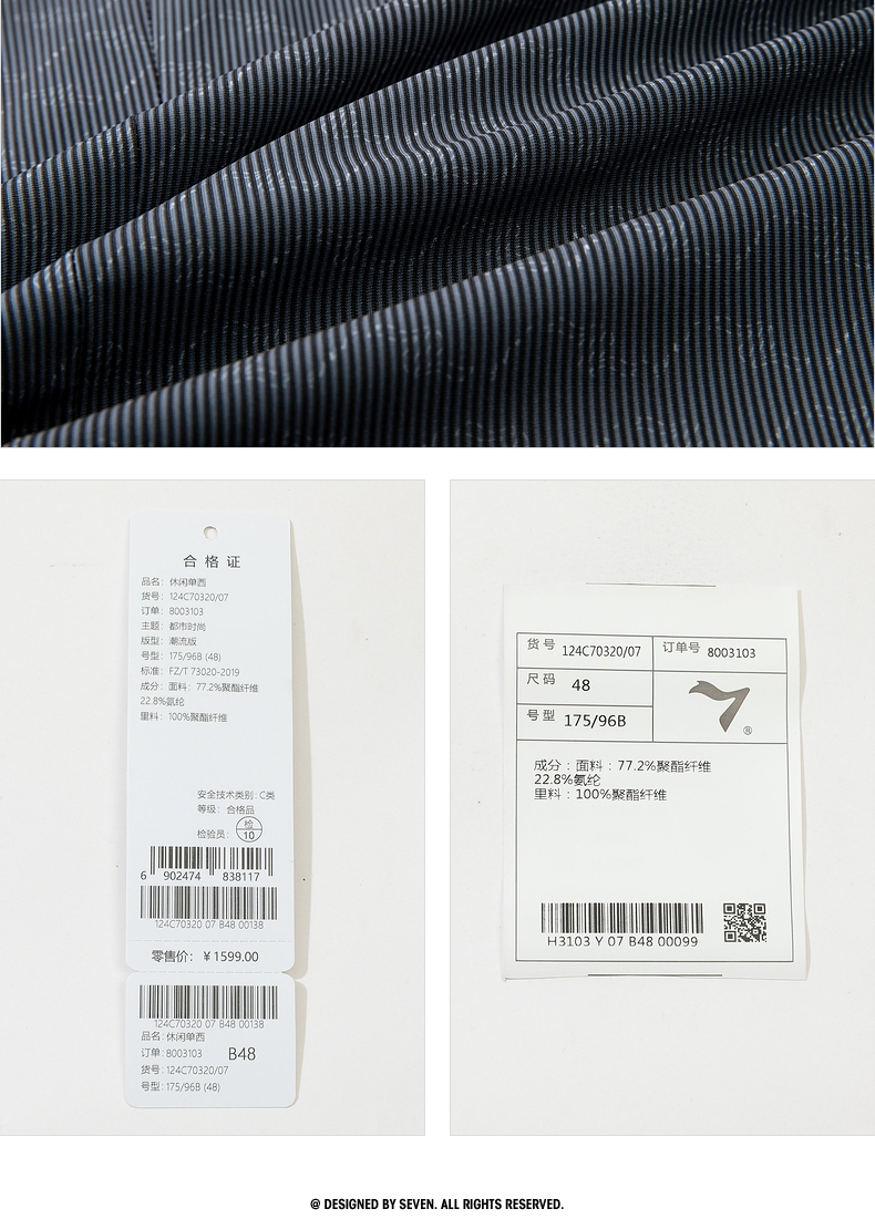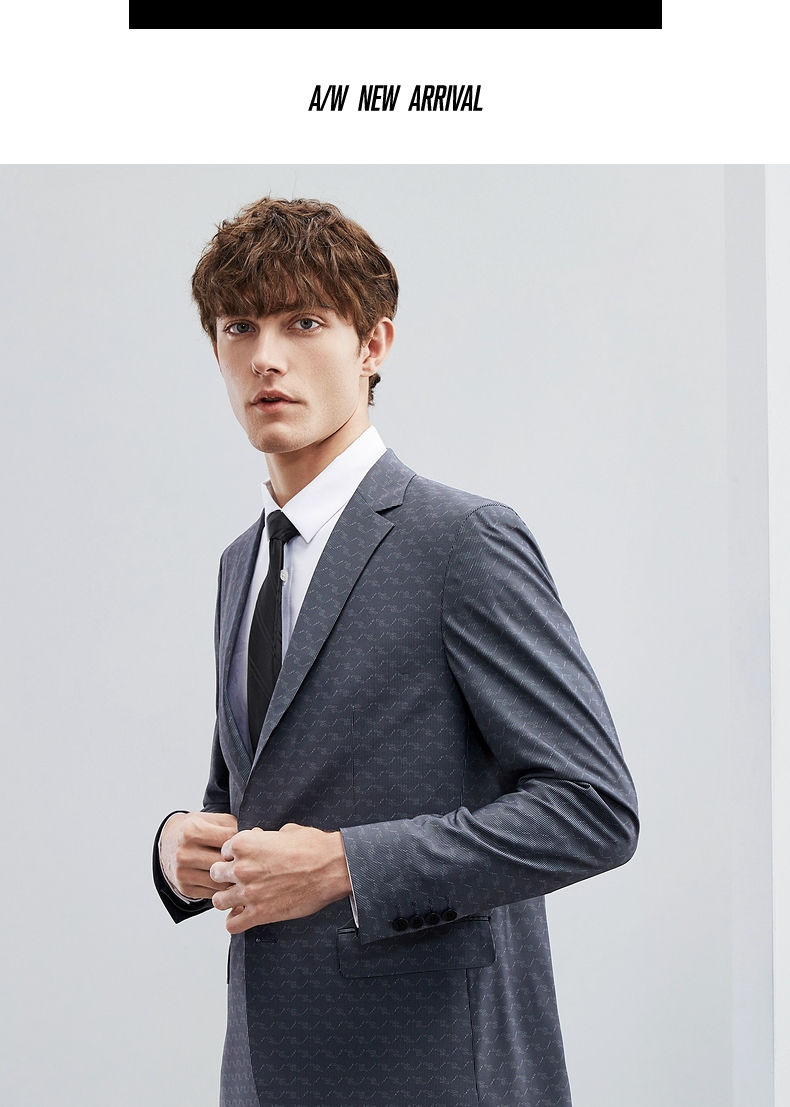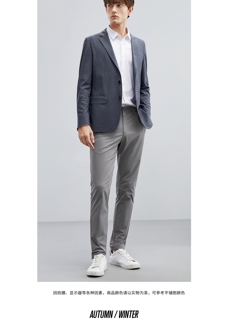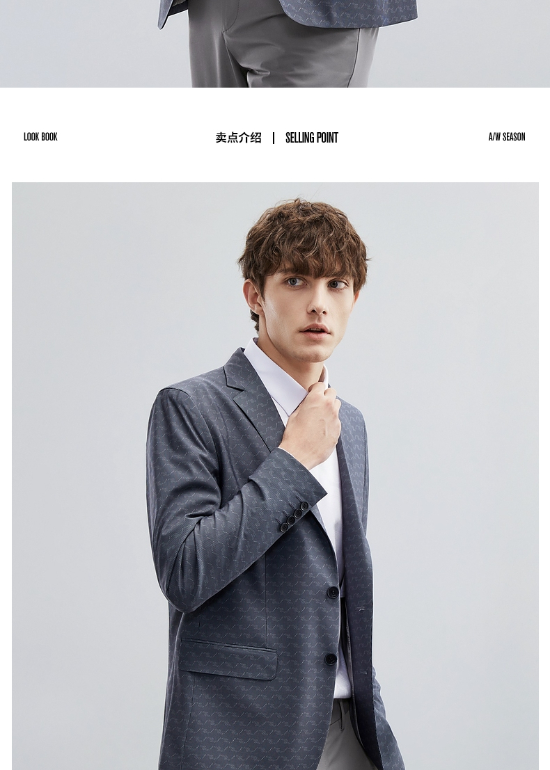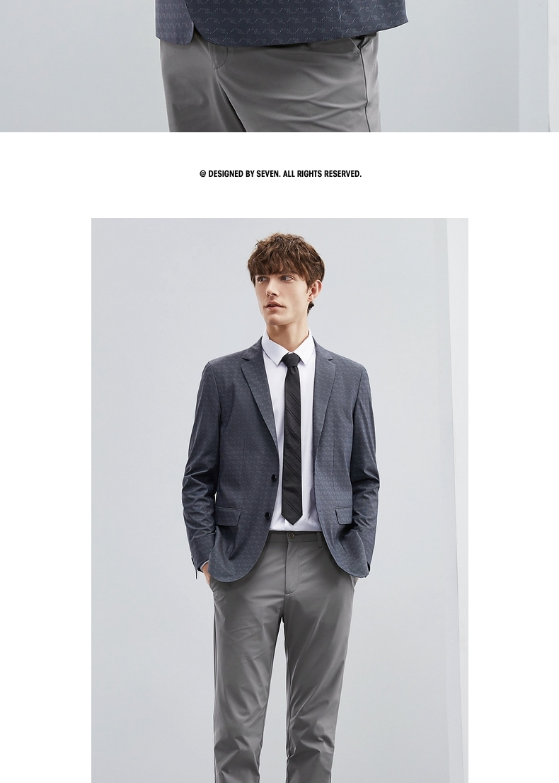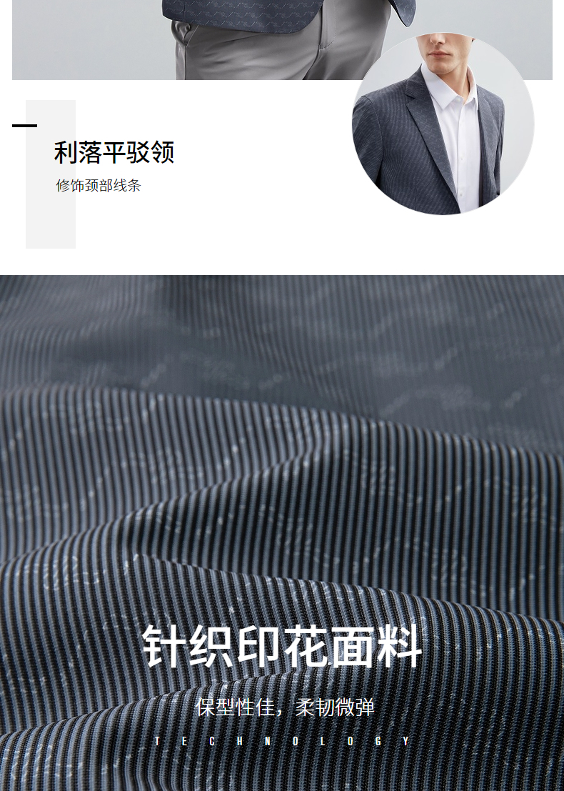 【特价】柒牌男装单西外套春季新款时尚潮流印花中青年平驳领针织西装 124C70320