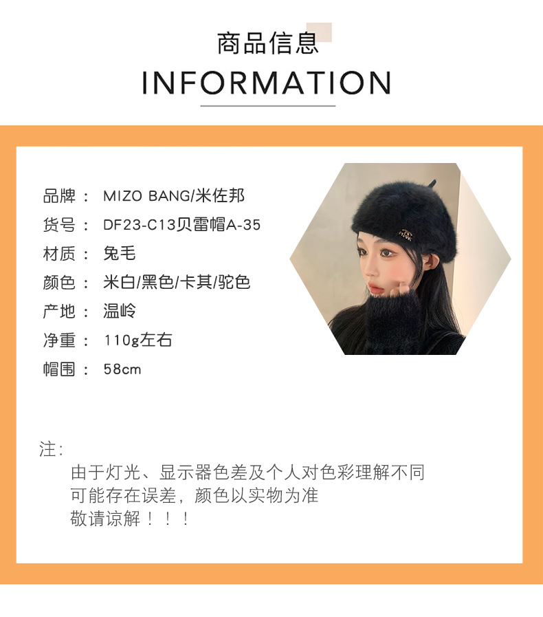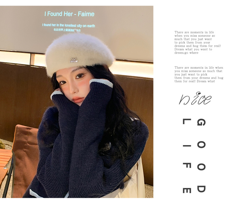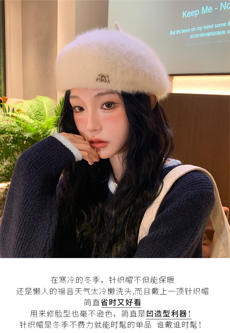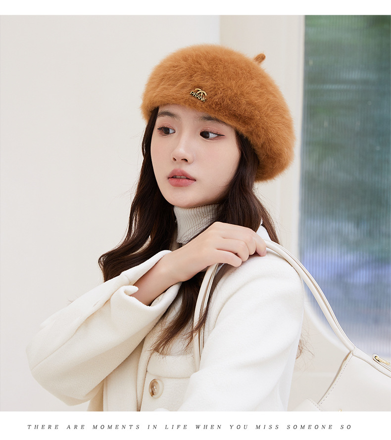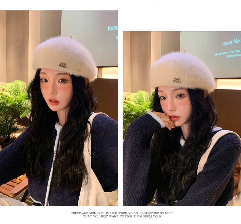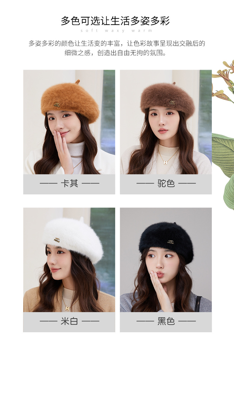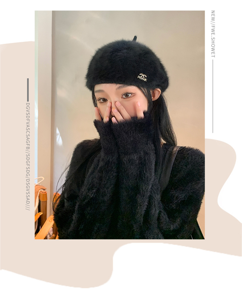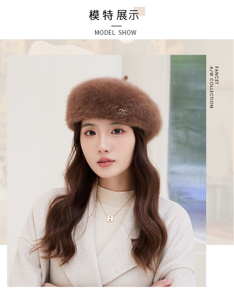 秋冬【日系兔毛画家帽女】户外 保暖时尚 贝雷帽子