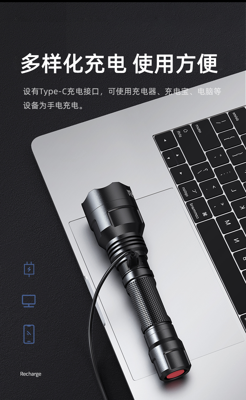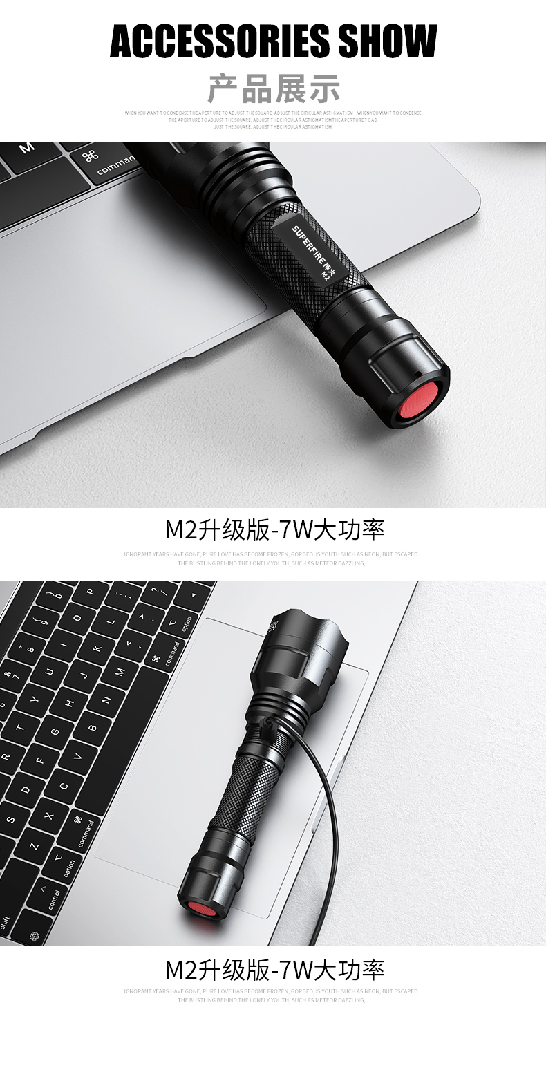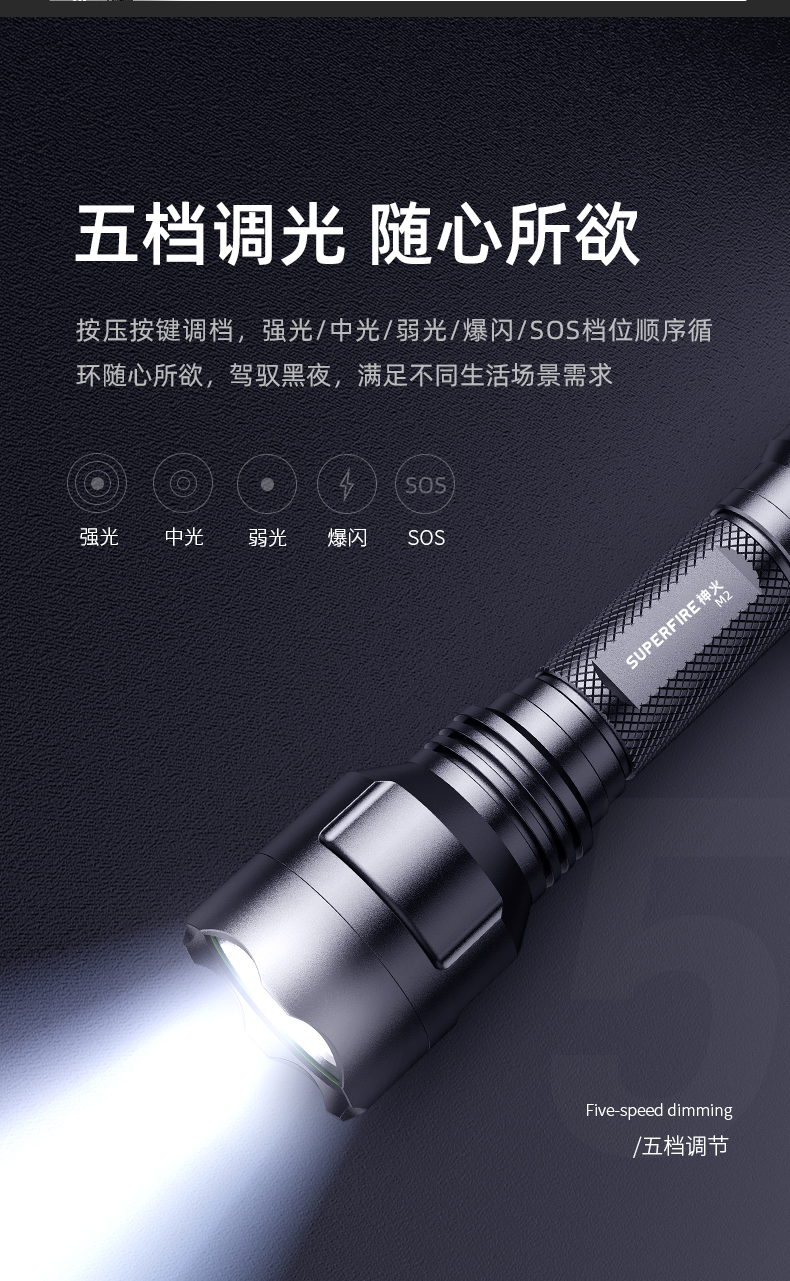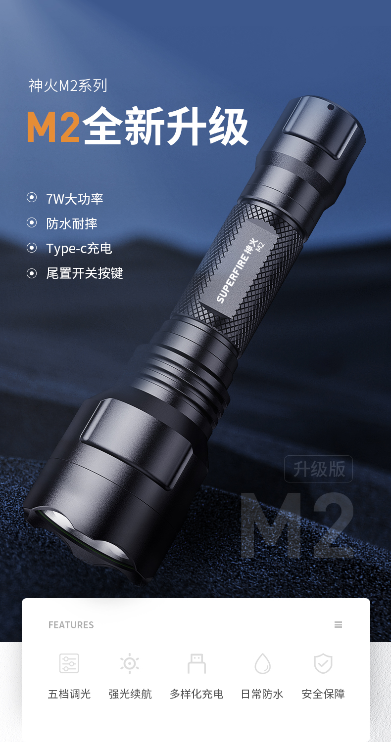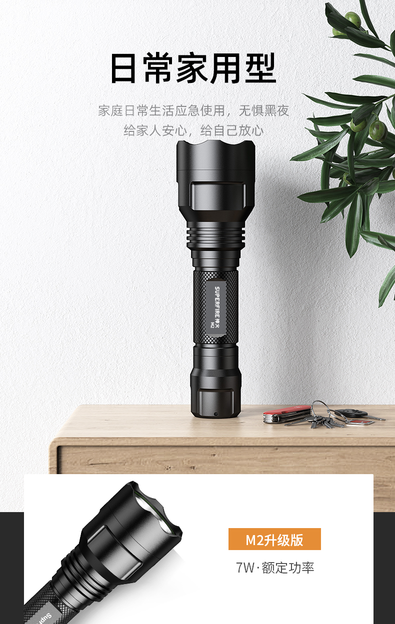 SUPERFIRE神火M2手电筒强光远射户外LED充电防水家用超亮手电