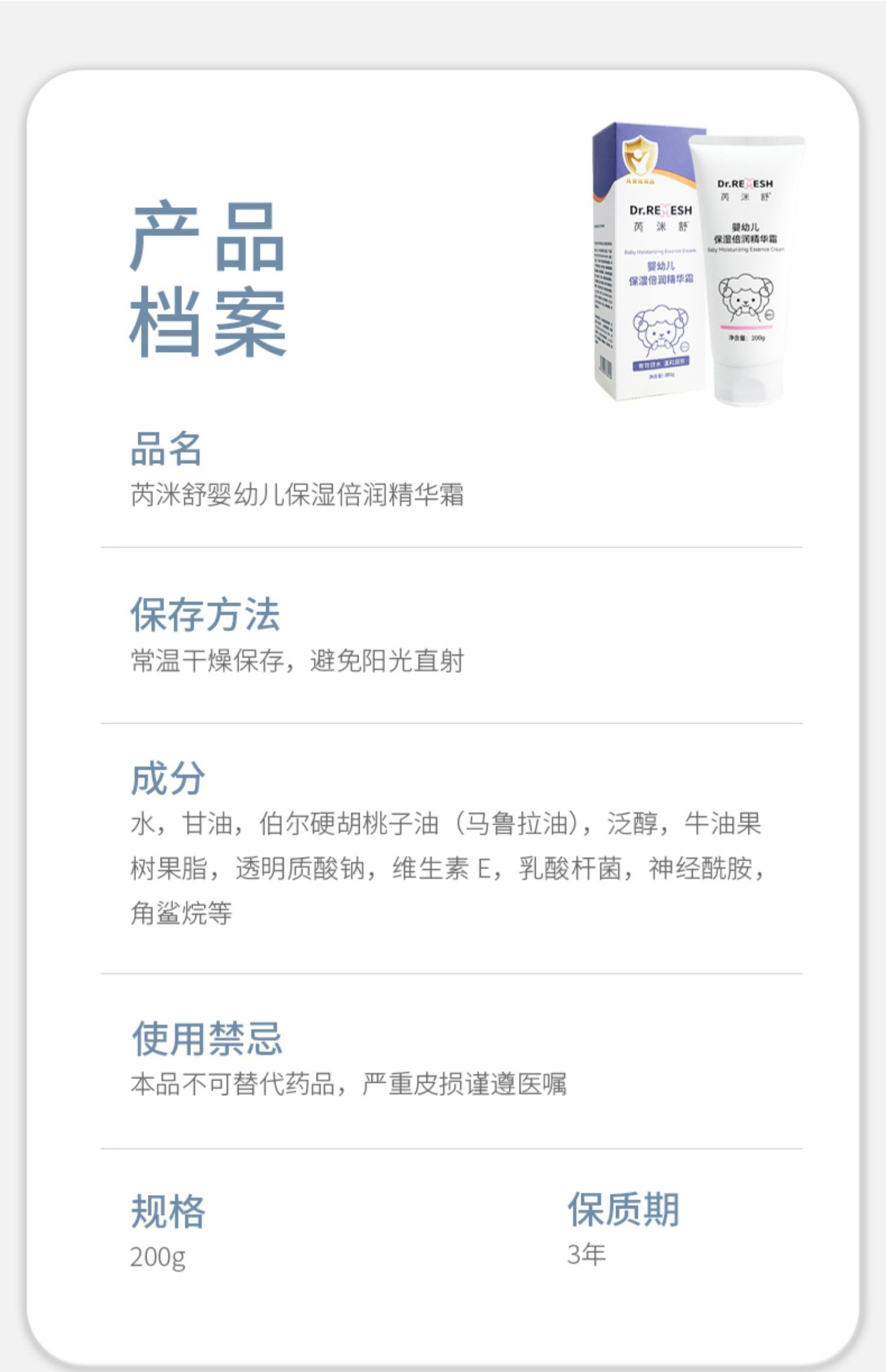 芮洣舒保湿倍润精华霜婴幼新生儿50g