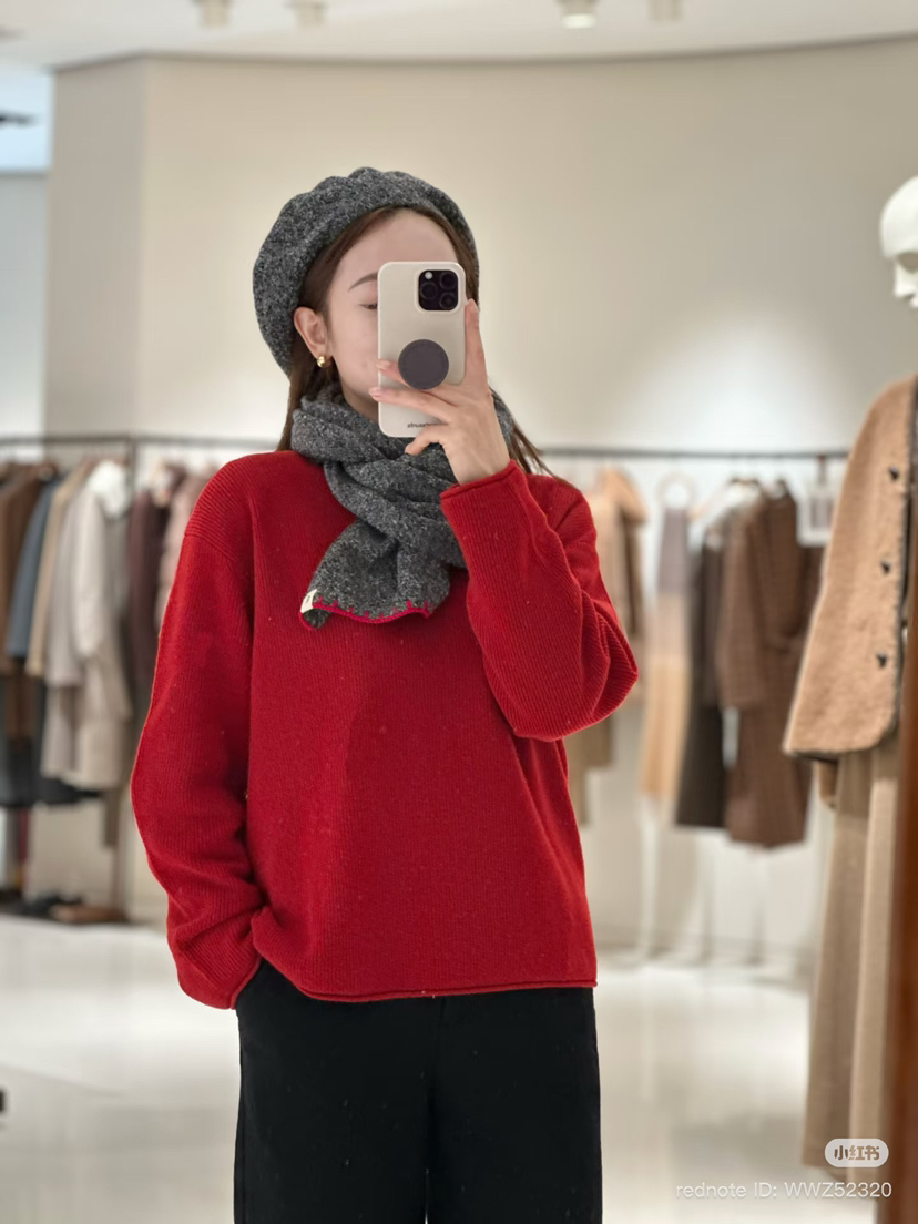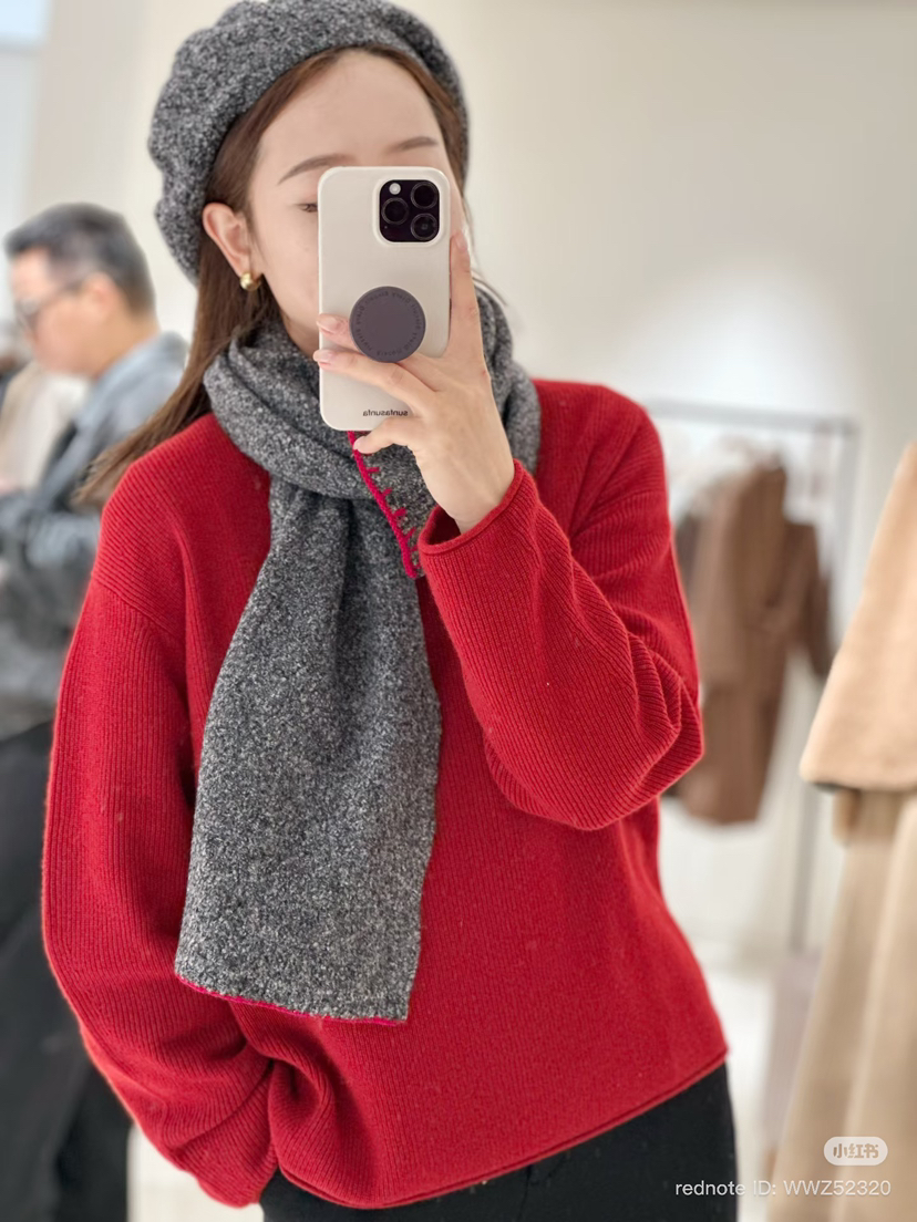 1218-2 跑量特惠 独家圆正 小禾 秋冬牦牛绒圈圈绒 红色滚边 长款围巾