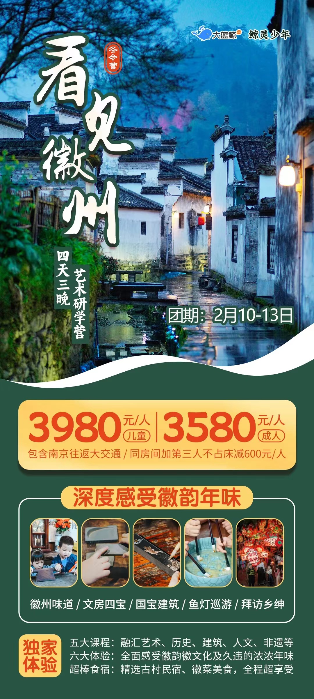 大蓝鲸爱研学|「2026【冬令营·徽州·4天3晚】寒假去哪儿?跟大蓝鲸潜入徽州:解码国宝建筑,体验非遗手艺,品尝时间味道,提前感受年味!